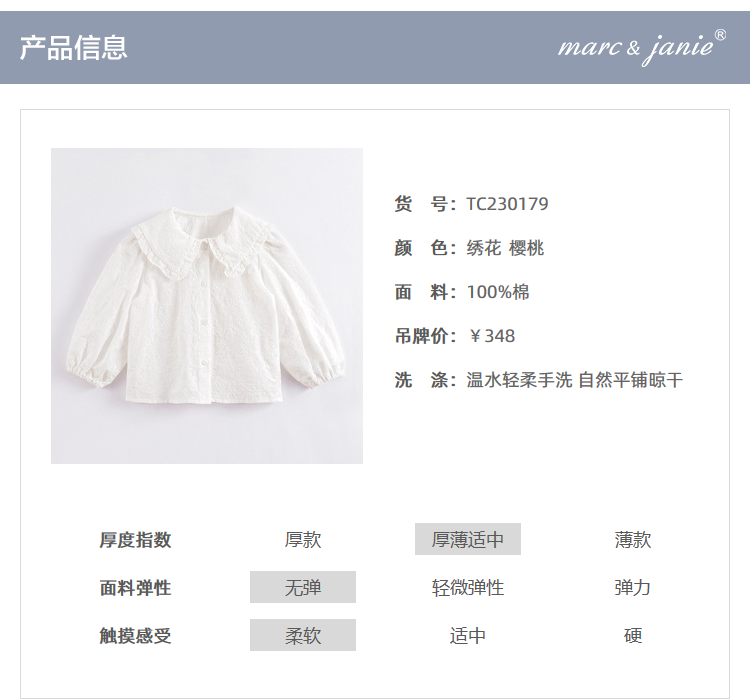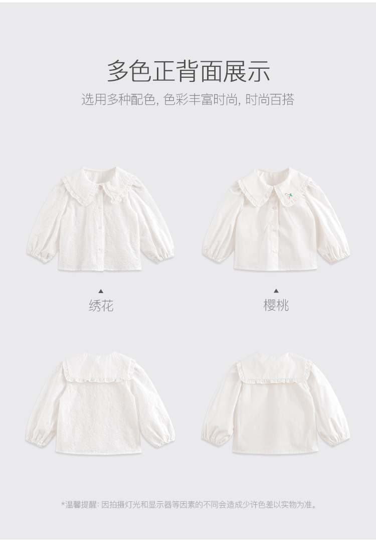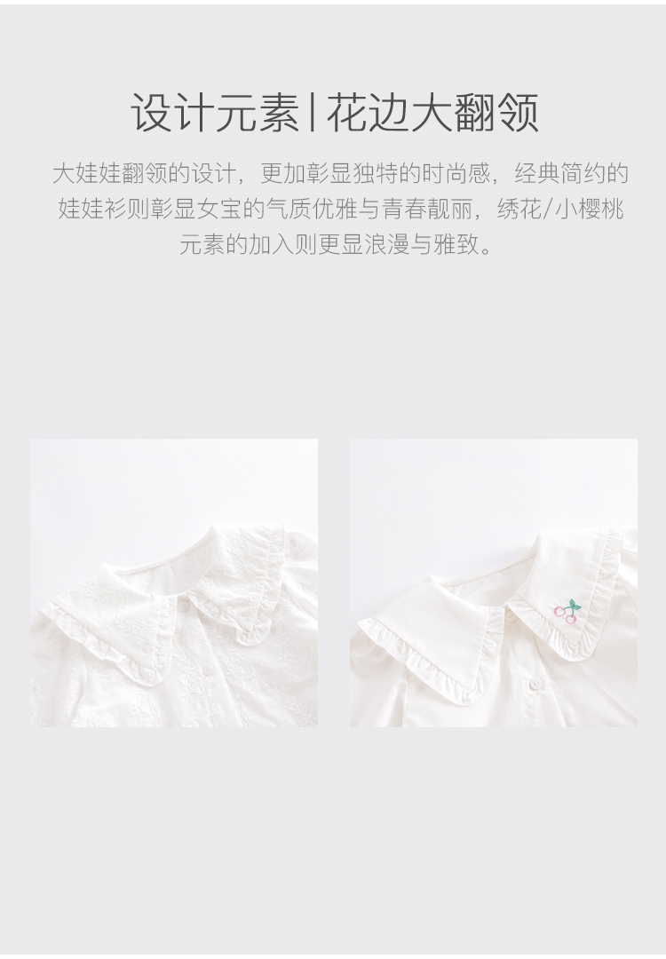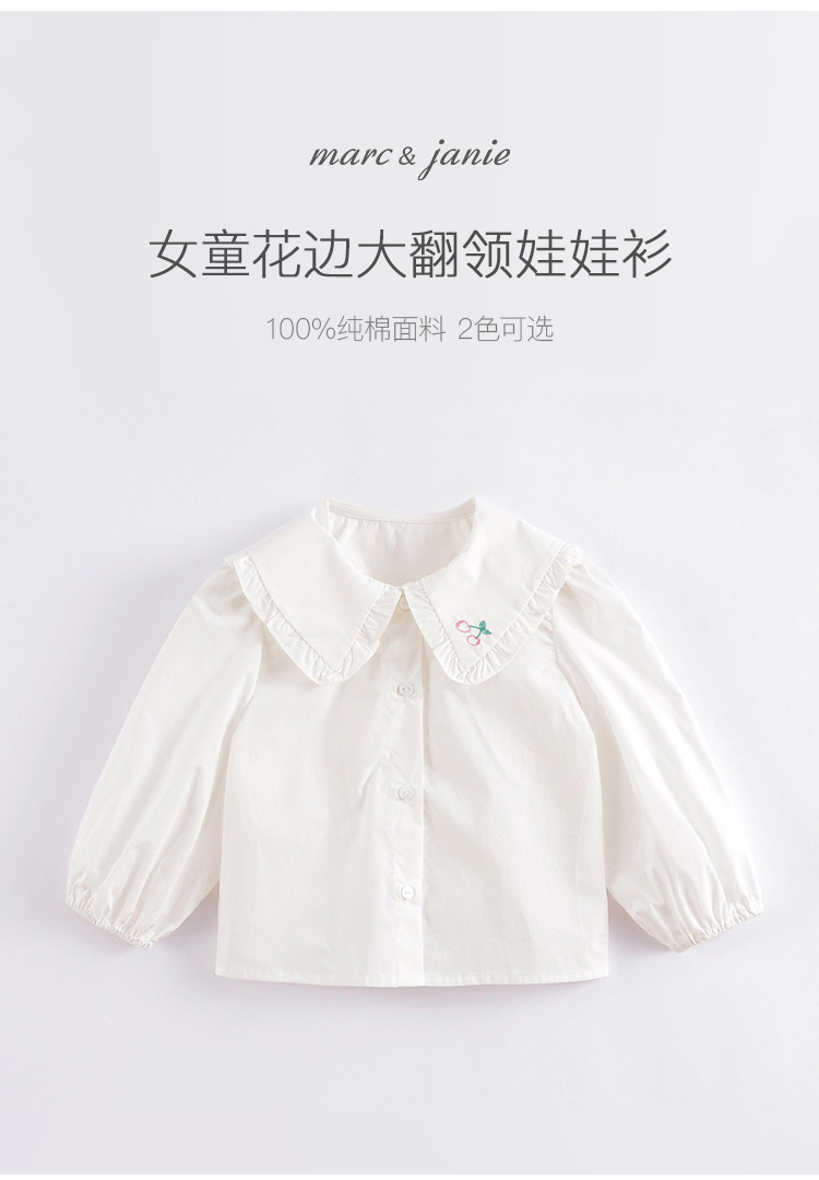 马克珍妮春装新款 女童全棉大翻领休闲娃娃衫230179
