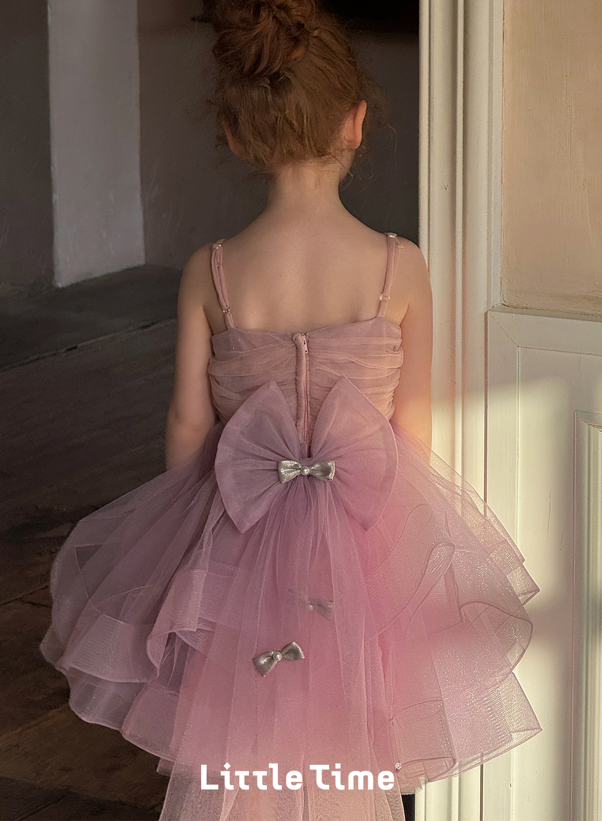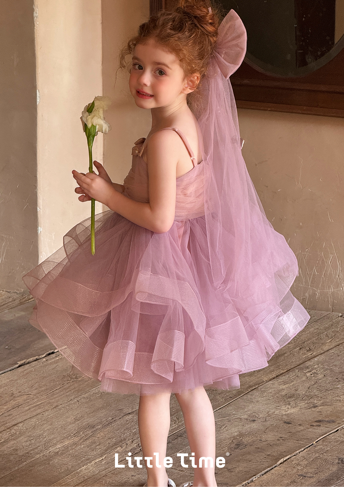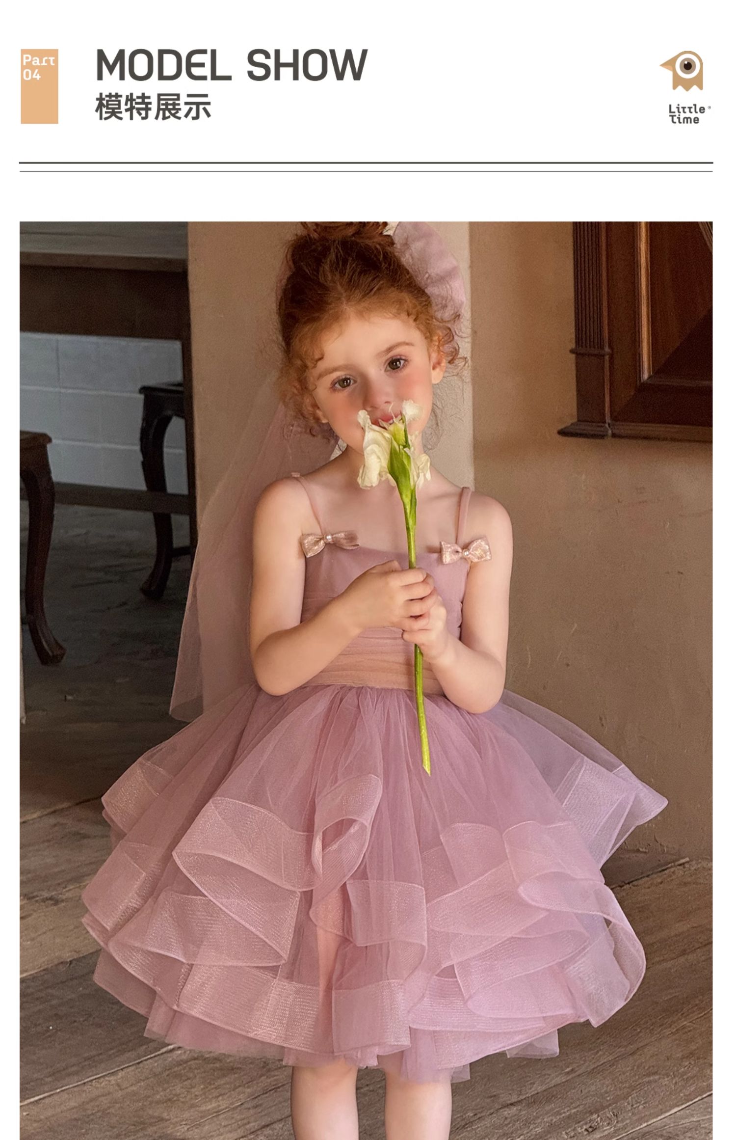 Littletime女童连衣裙2025春夏公主裙礼服头纱甜美网纱亮片大摆裙