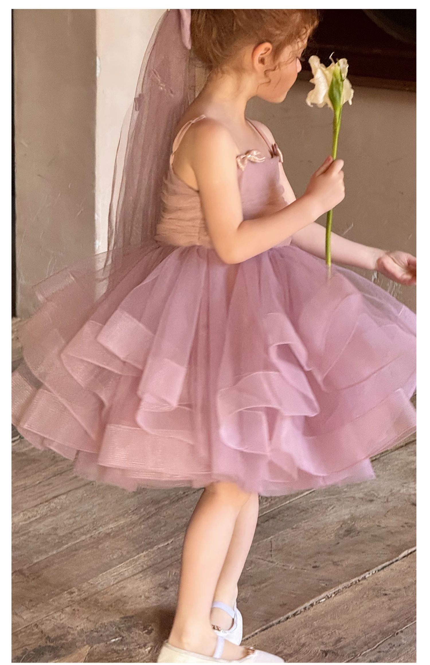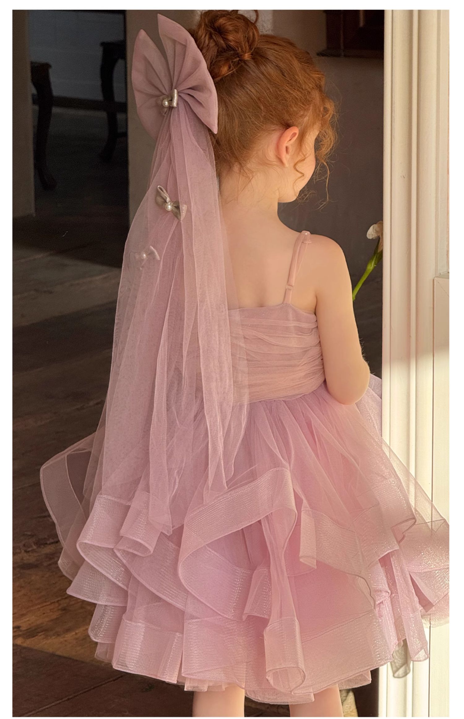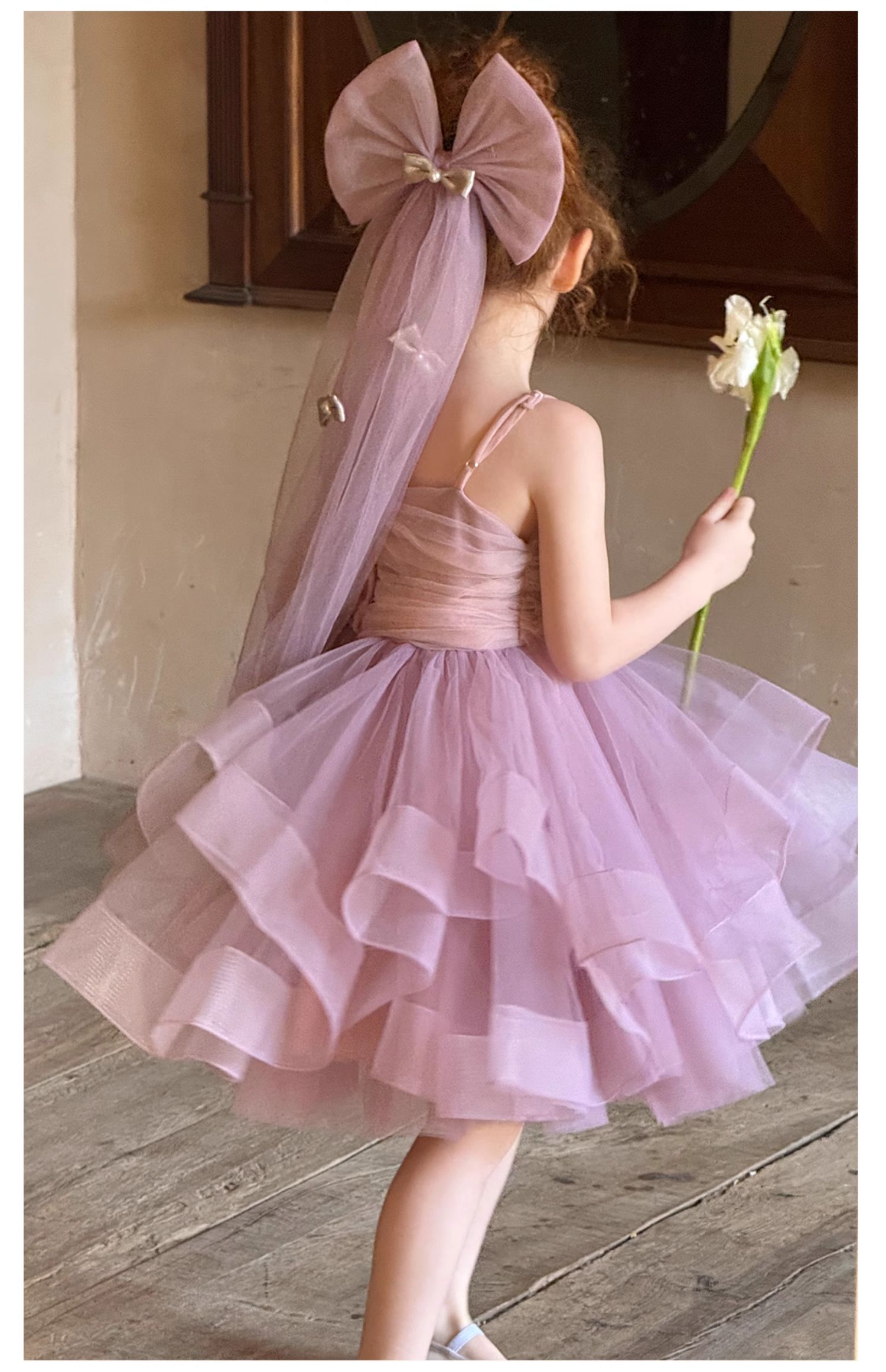 Littletime女童连衣裙2025春夏公主裙礼服头纱甜美网纱亮片大摆裙