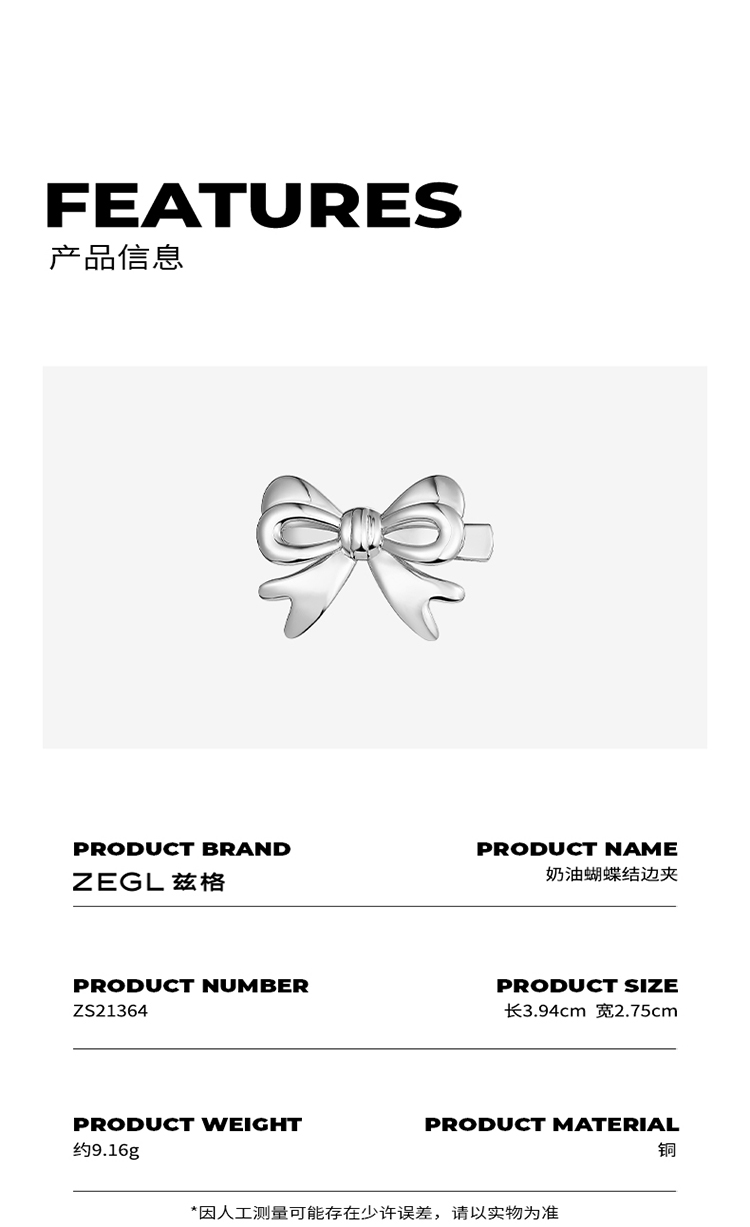 ZEGL设计师蝴蝶结发夹女后脑勺侧边发卡边夹2021年新款头饰发饰品