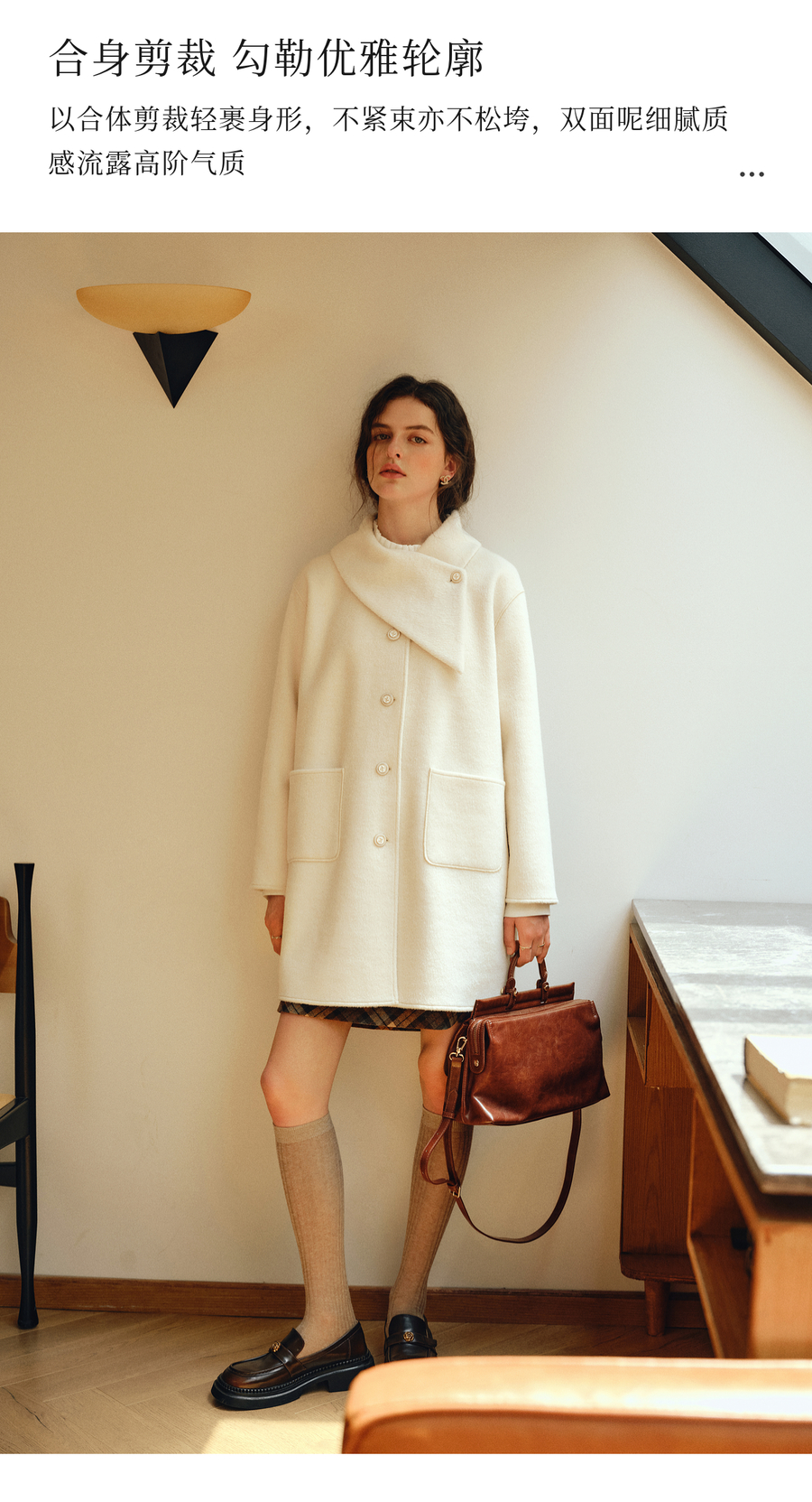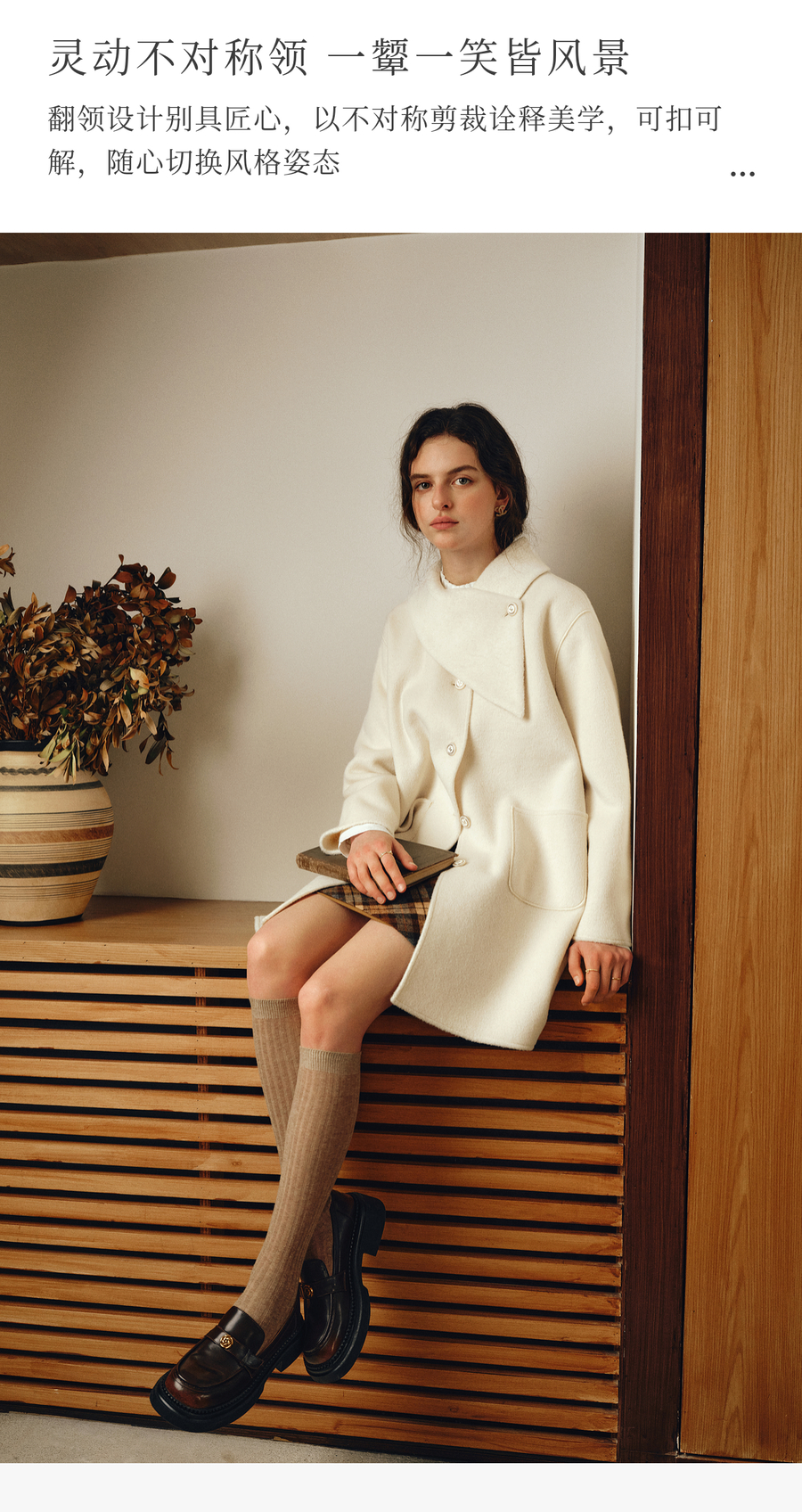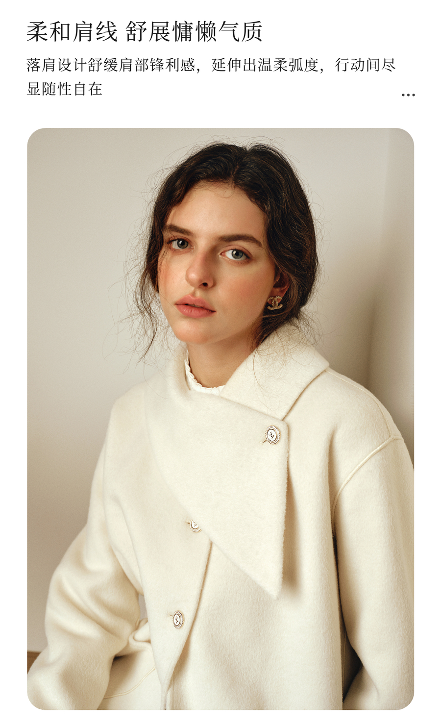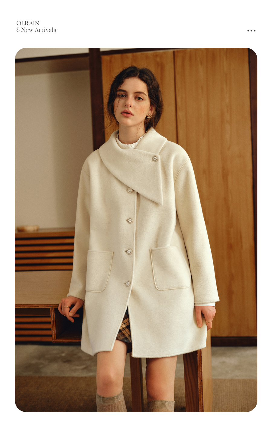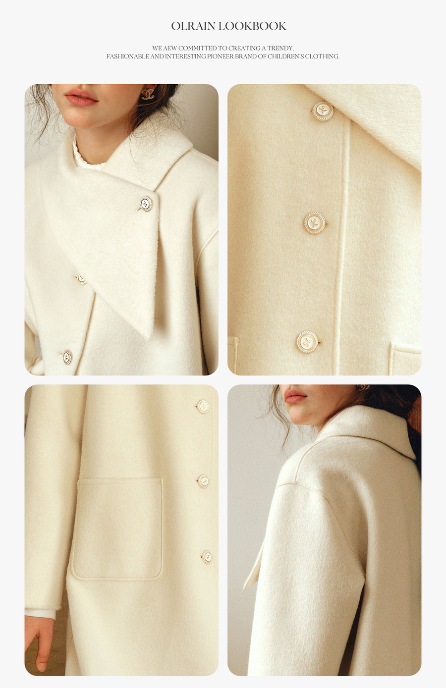 OLrain欧芮儿2025新款女冬季白色设计感领口单排扣大衣双面呢外套