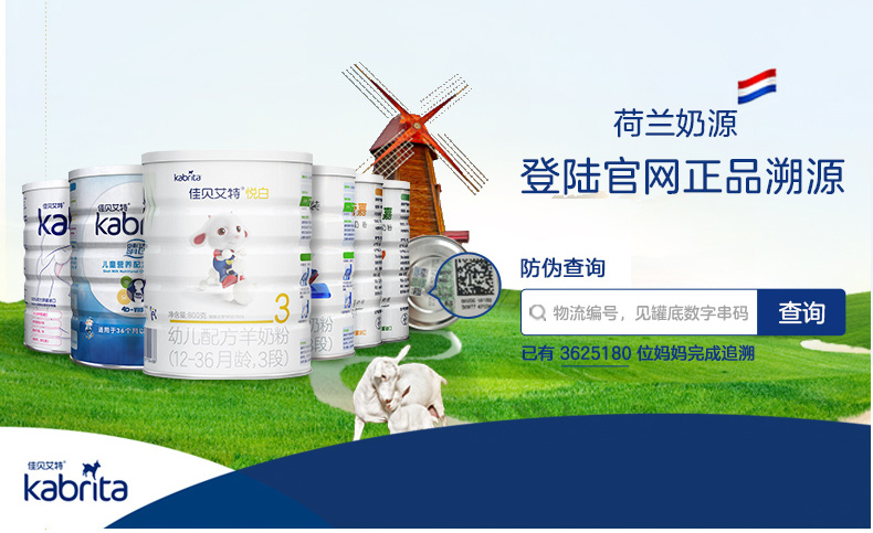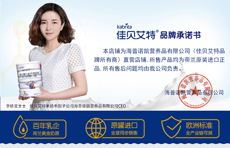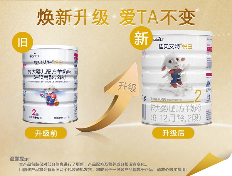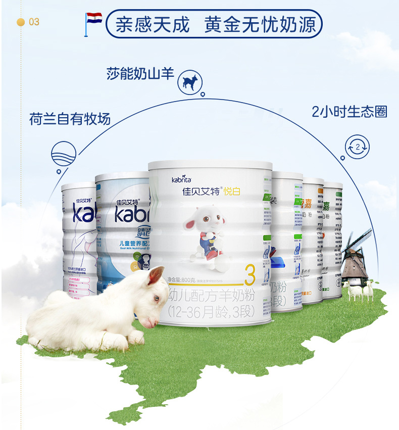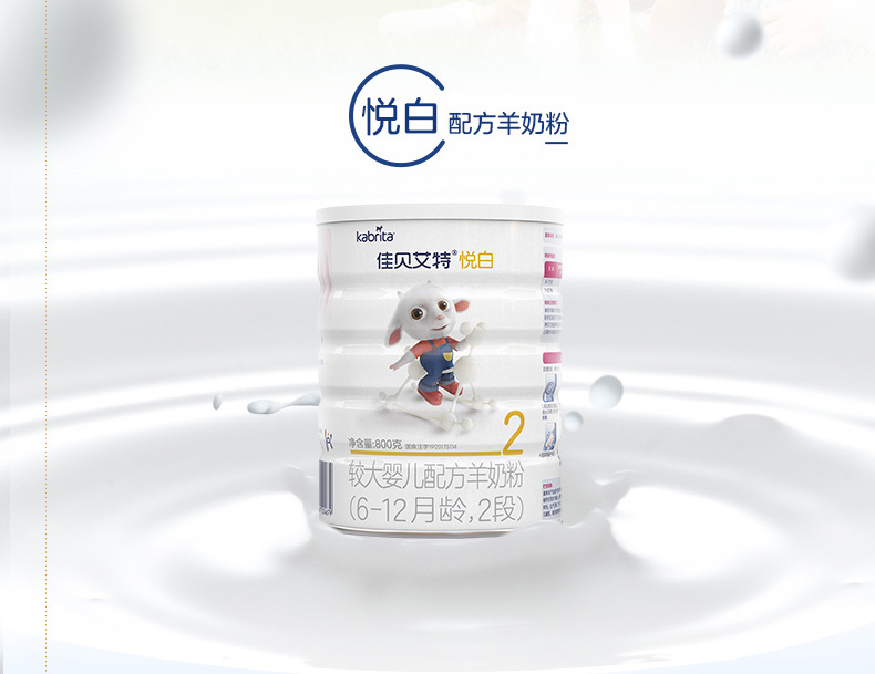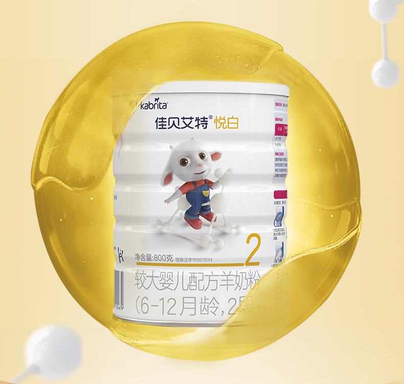 佳贝艾特(Kabrita)悦白较大婴儿配方羊奶粉 2段(6-12个月婴儿适用)800克(荷兰原装进口)