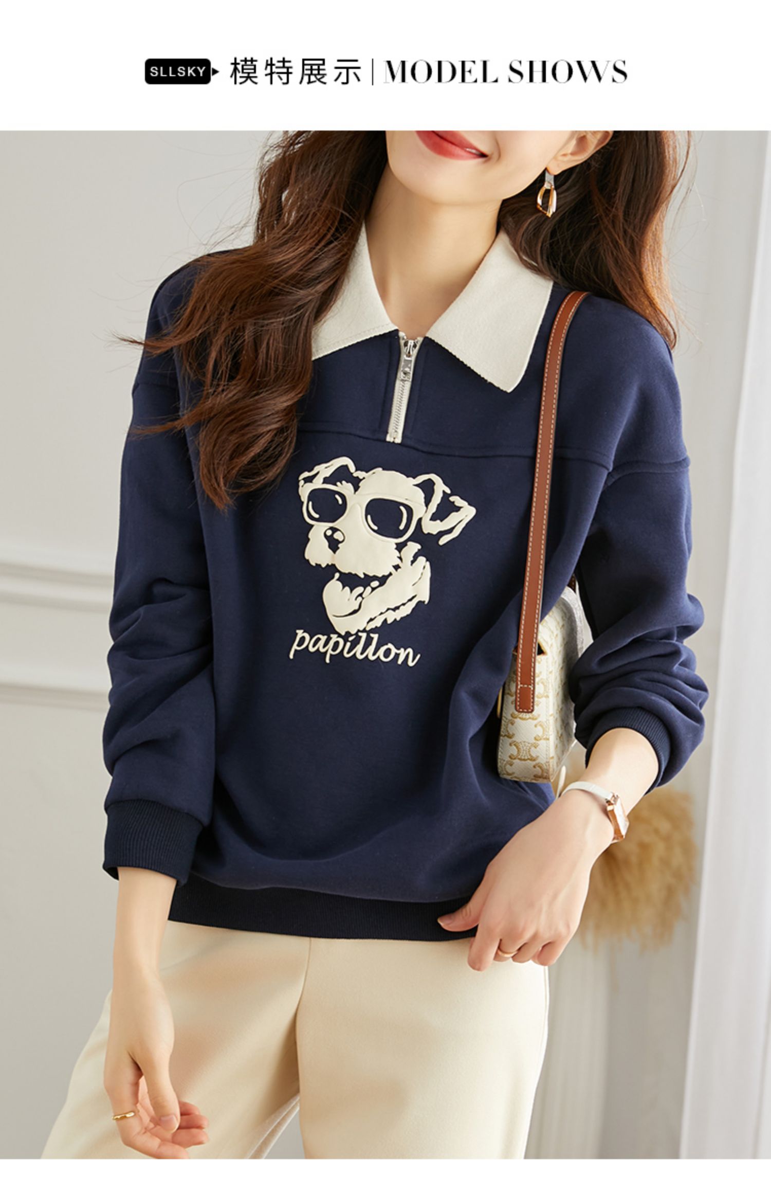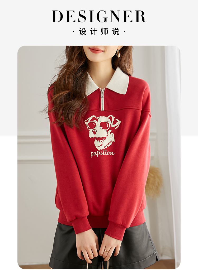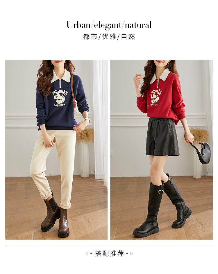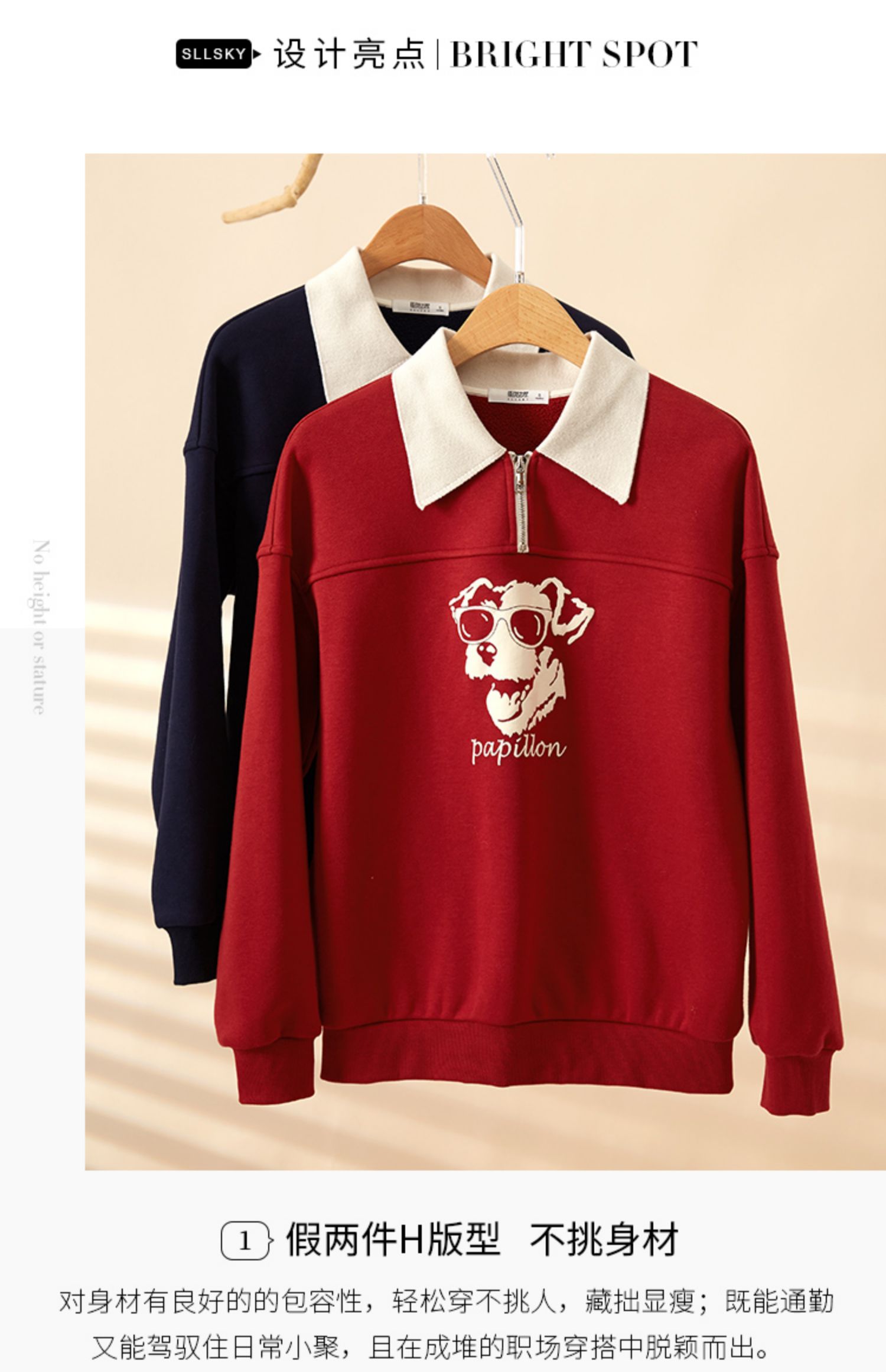 【年货节】熙世界假两件撞色翻领卫衣女加绒宽松设计感套头上衣秋冬新款
