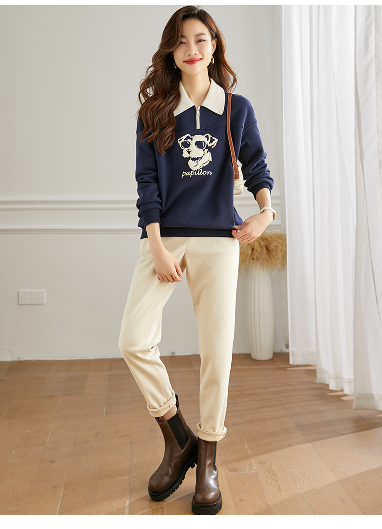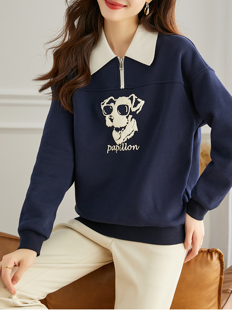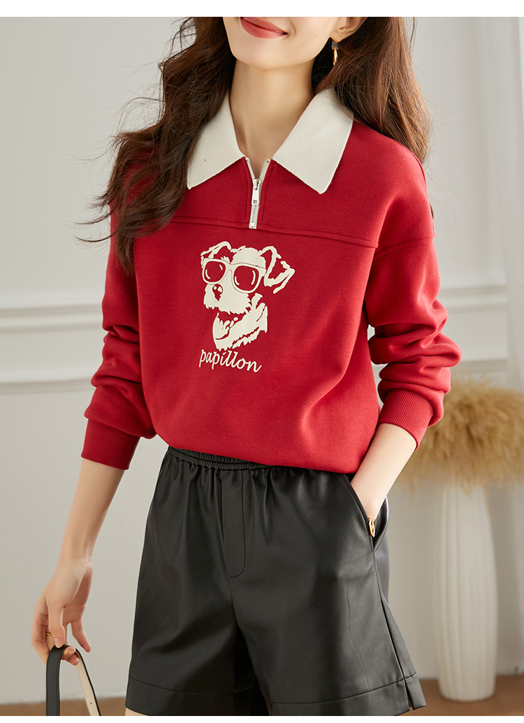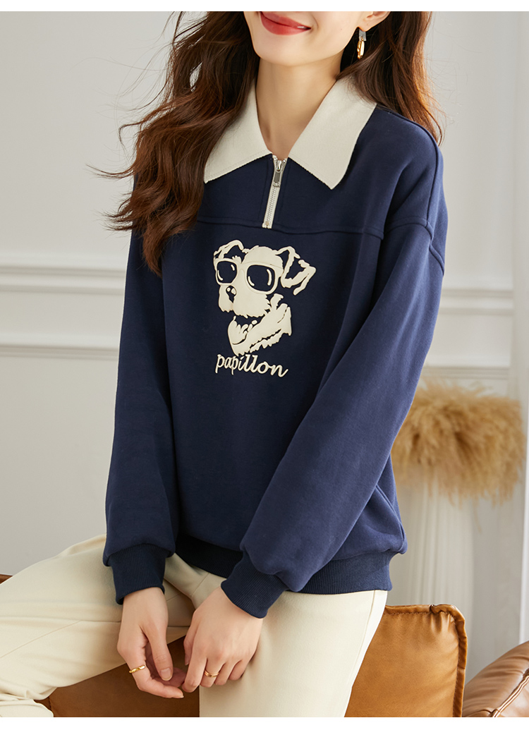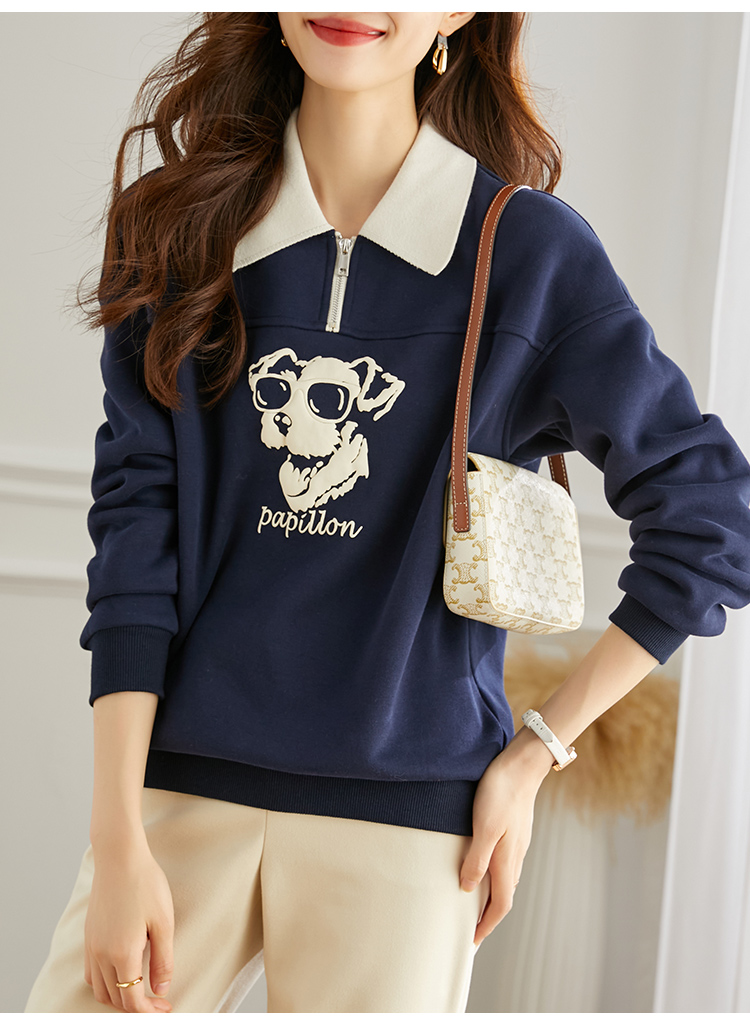 【年货节】熙世界假两件撞色翻领卫衣女加绒宽松设计感套头上衣秋冬新款