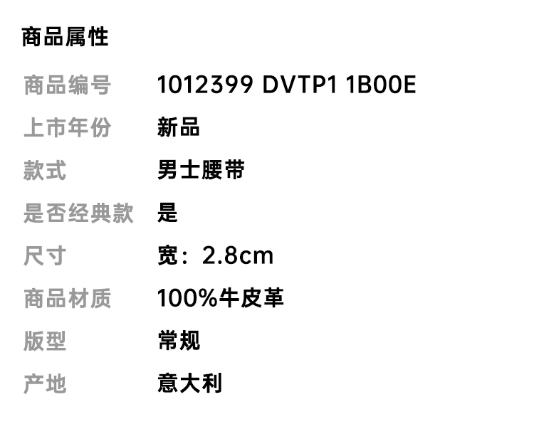 VERSACE 范思哲 男士Greca搭扣皮革腰带 黑色 1012399 DVTP1 1B00E