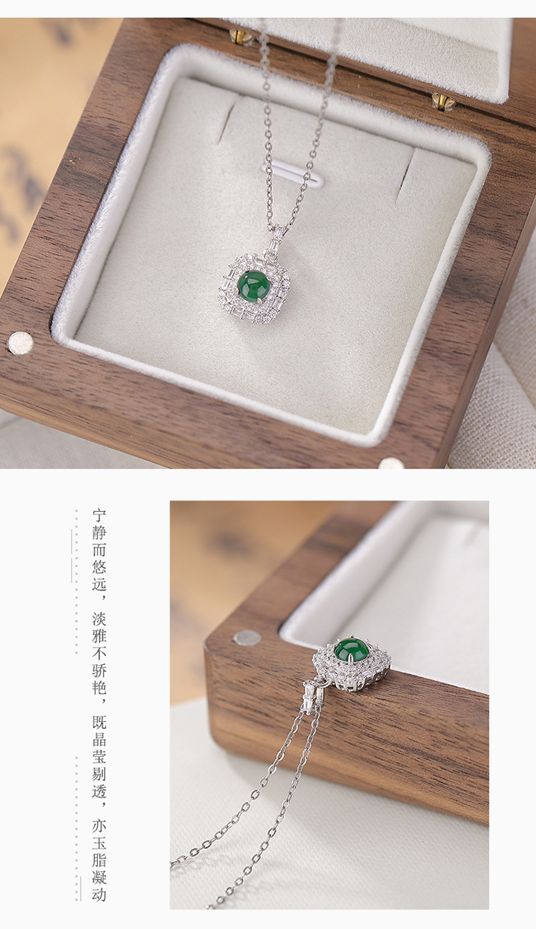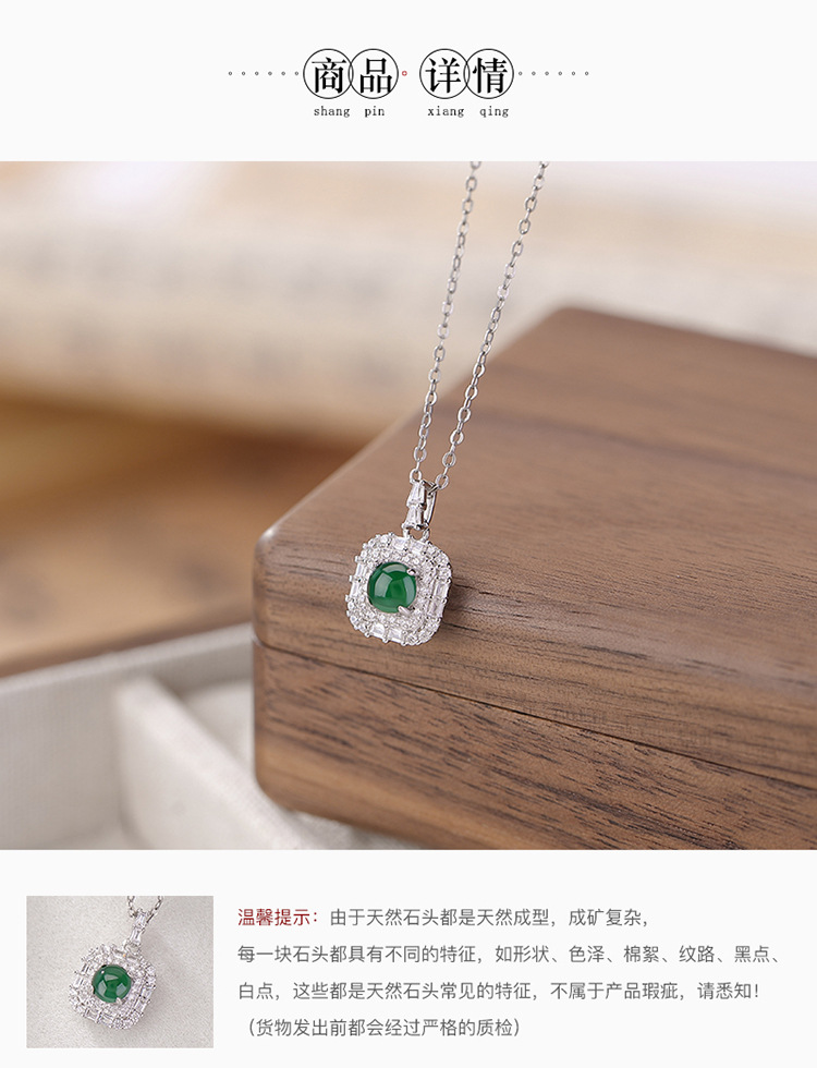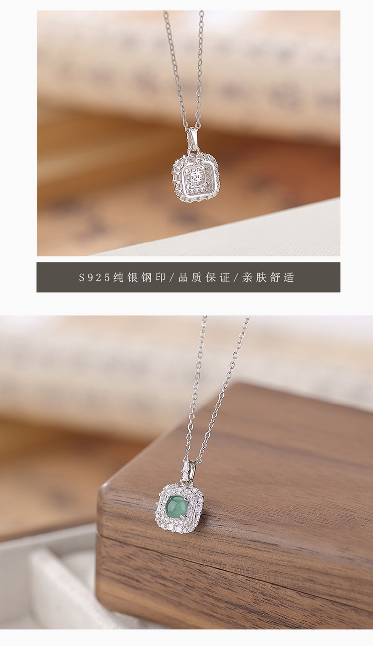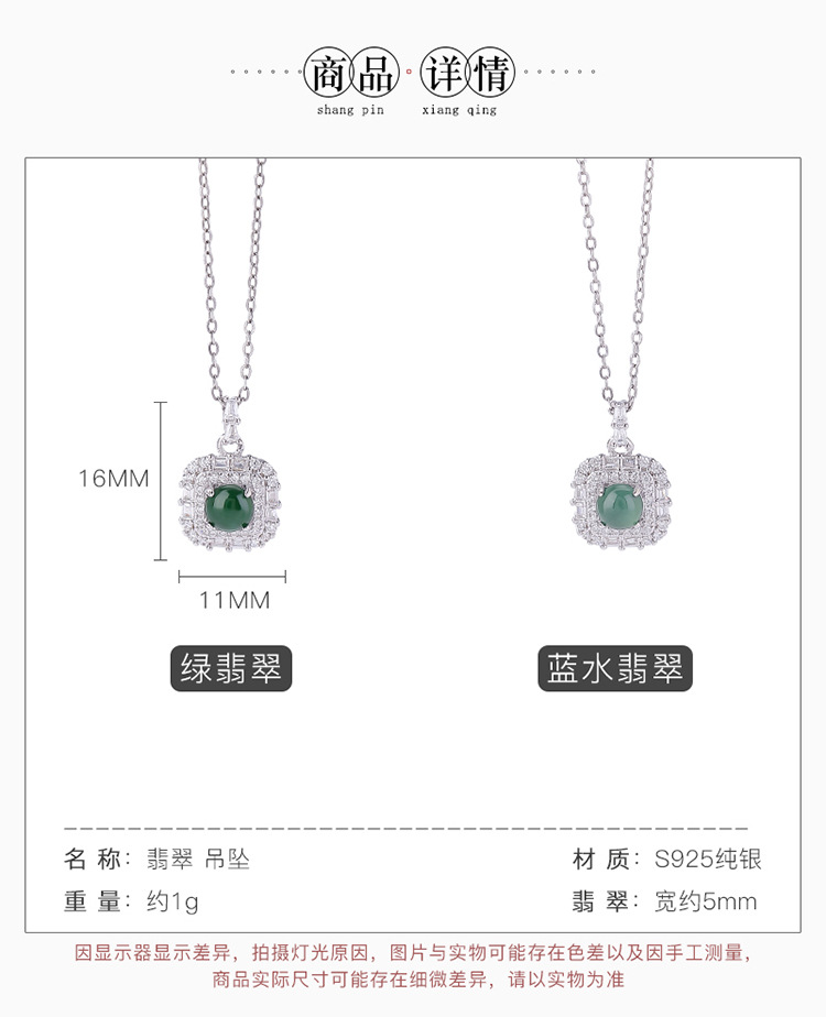 【晓晴】S925纯银蓝水翡翠绿翡翠方形圆珠吊坠【CW-DZ06662】