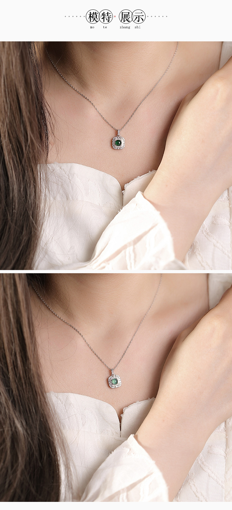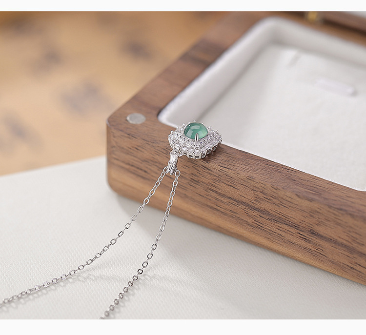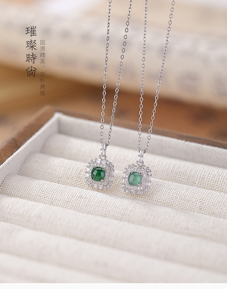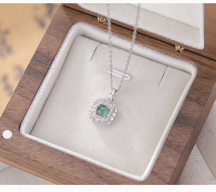 【晓晴】S925纯银蓝水翡翠绿翡翠方形圆珠吊坠【CW-DZ06662】