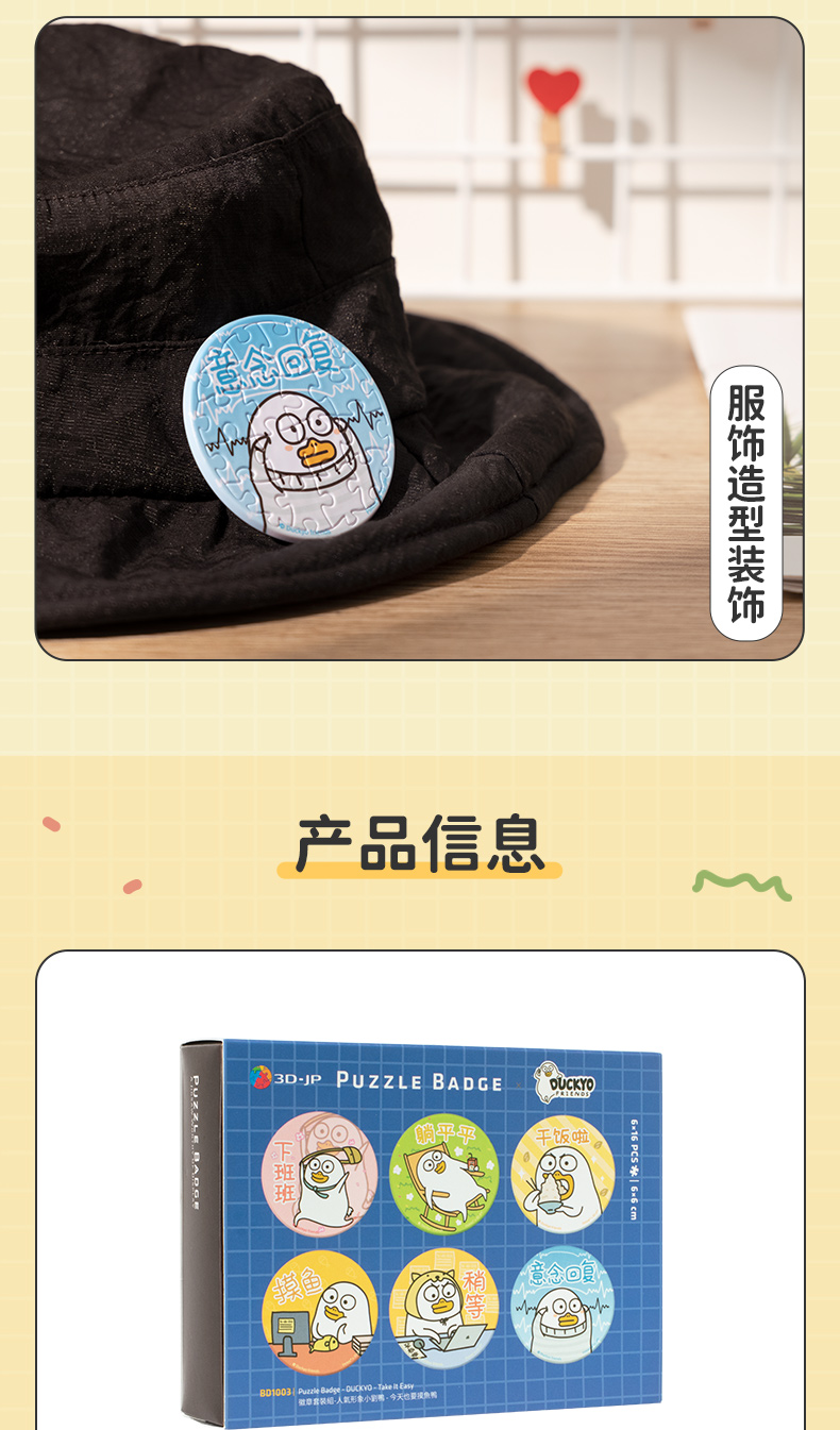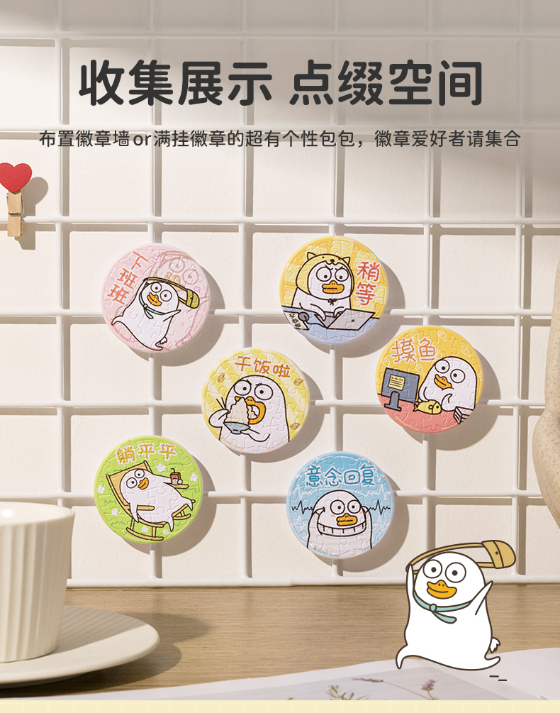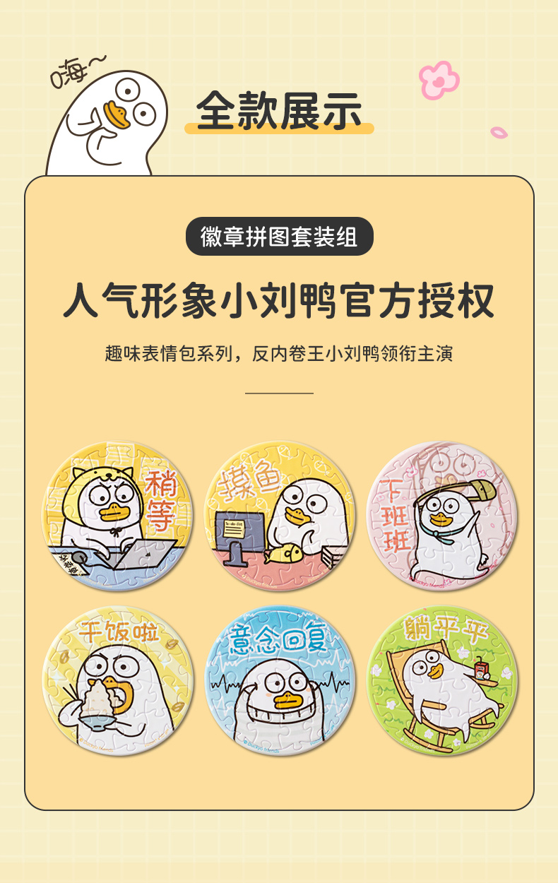 【折扣商品 不退不换】96片徽章拼图 塑料拼图 BD1003 人气形象小刘鸭-今天也要摸鱼鸭
