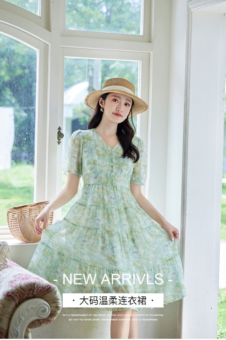 奢姿大码女装2026夏季胖妹妹时尚V领碎花连衣裙气质减龄清新长裙9962860063