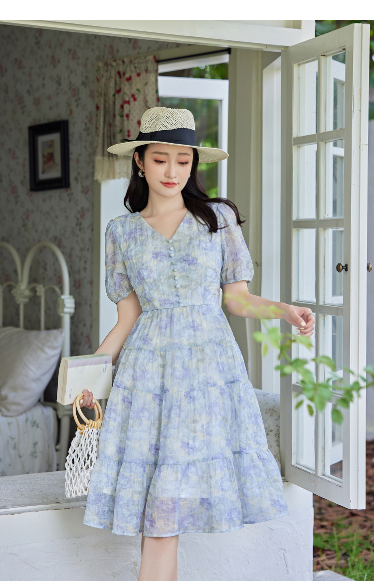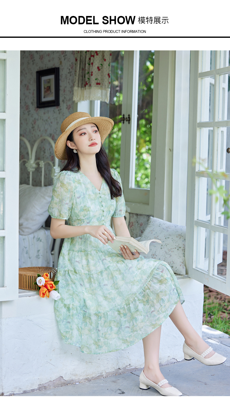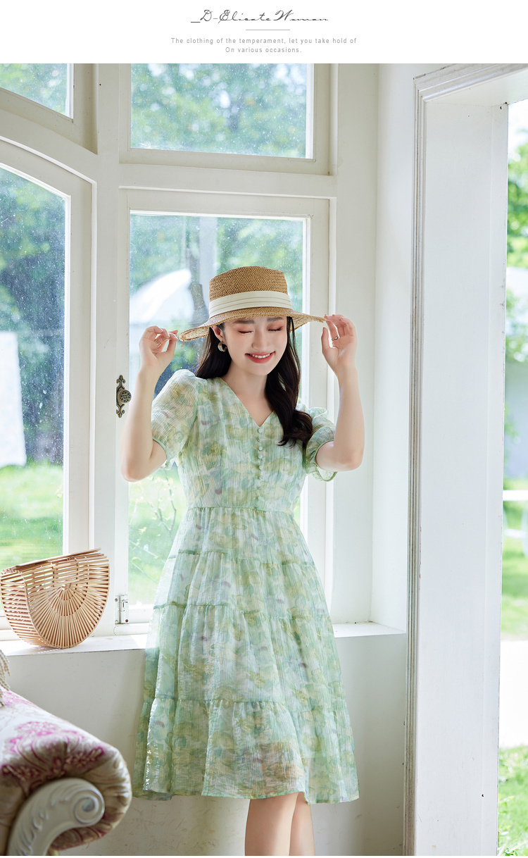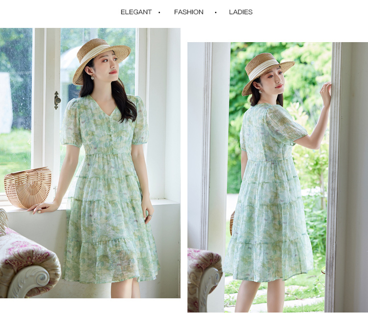 奢姿2026年夏装新款胖妹妹大码女装温柔风碎花茶歇法式高级感裙子9932890974