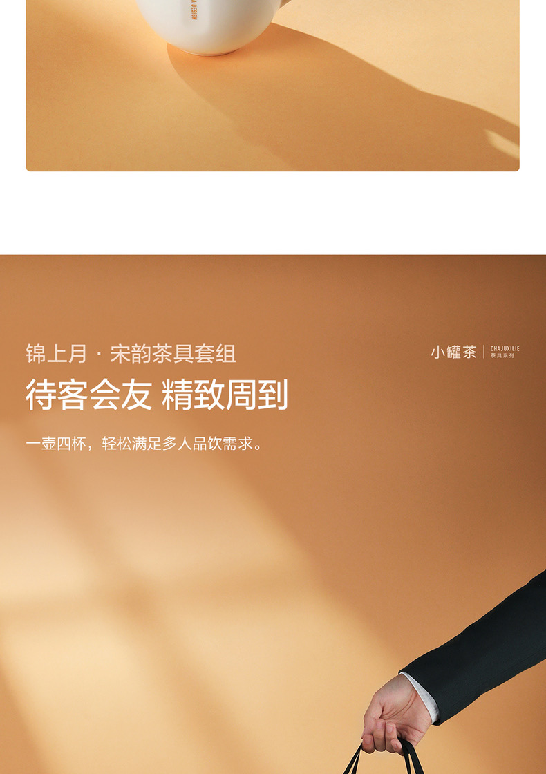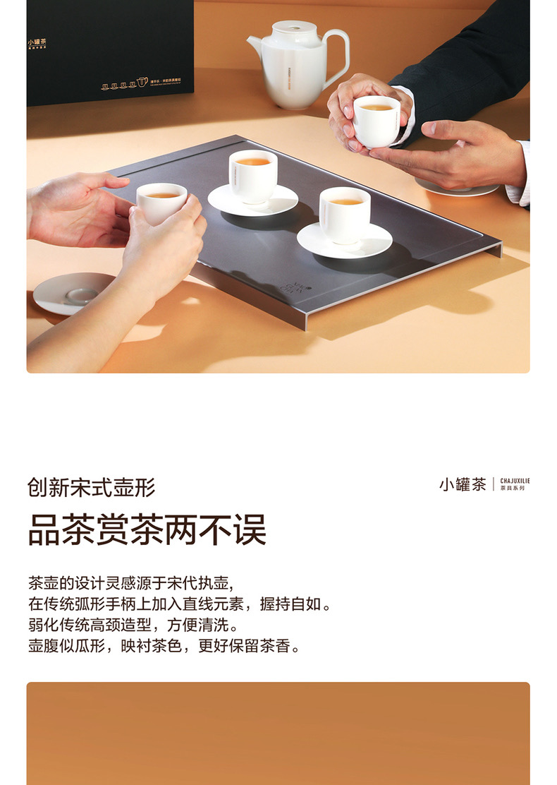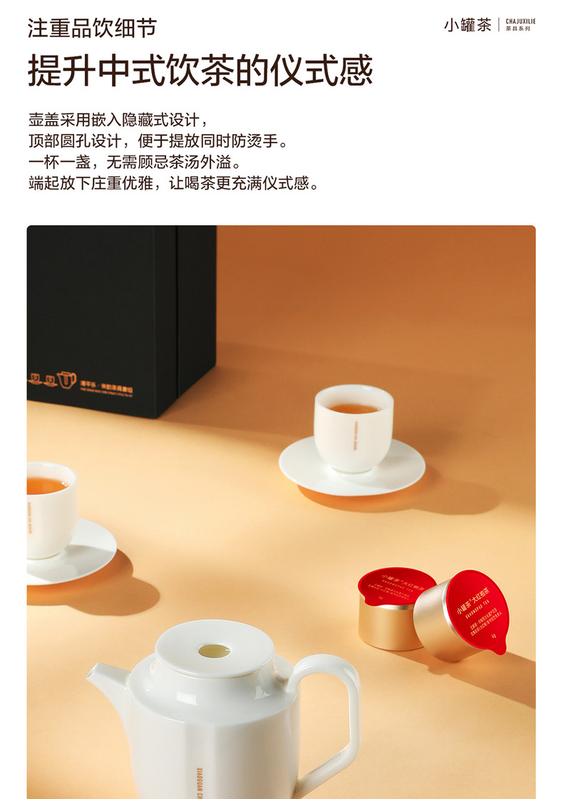 小罐茶 锦上月·宋韵白瓷茶具套组 商务品茶器具礼盒 1壶4杯4碟