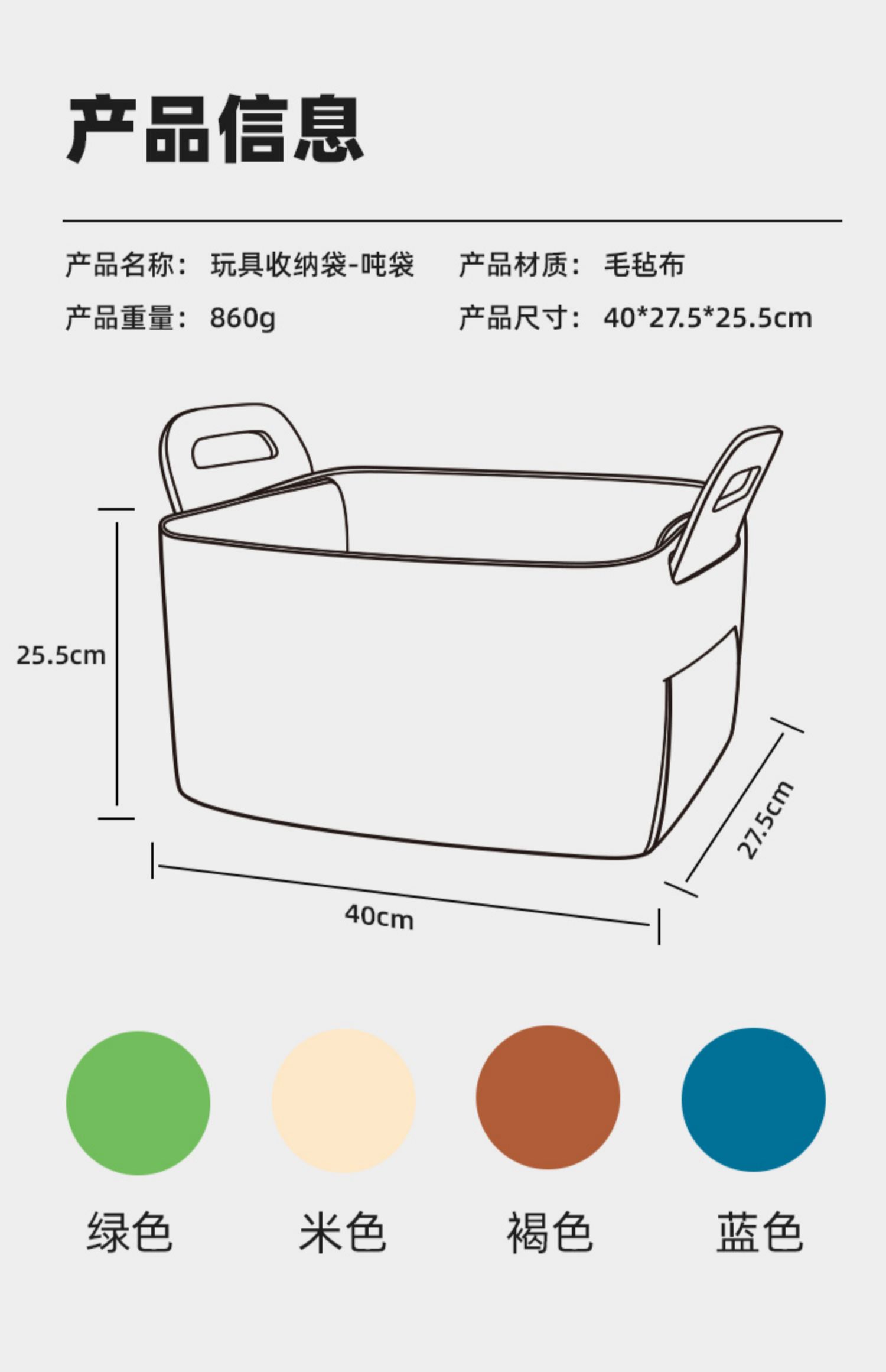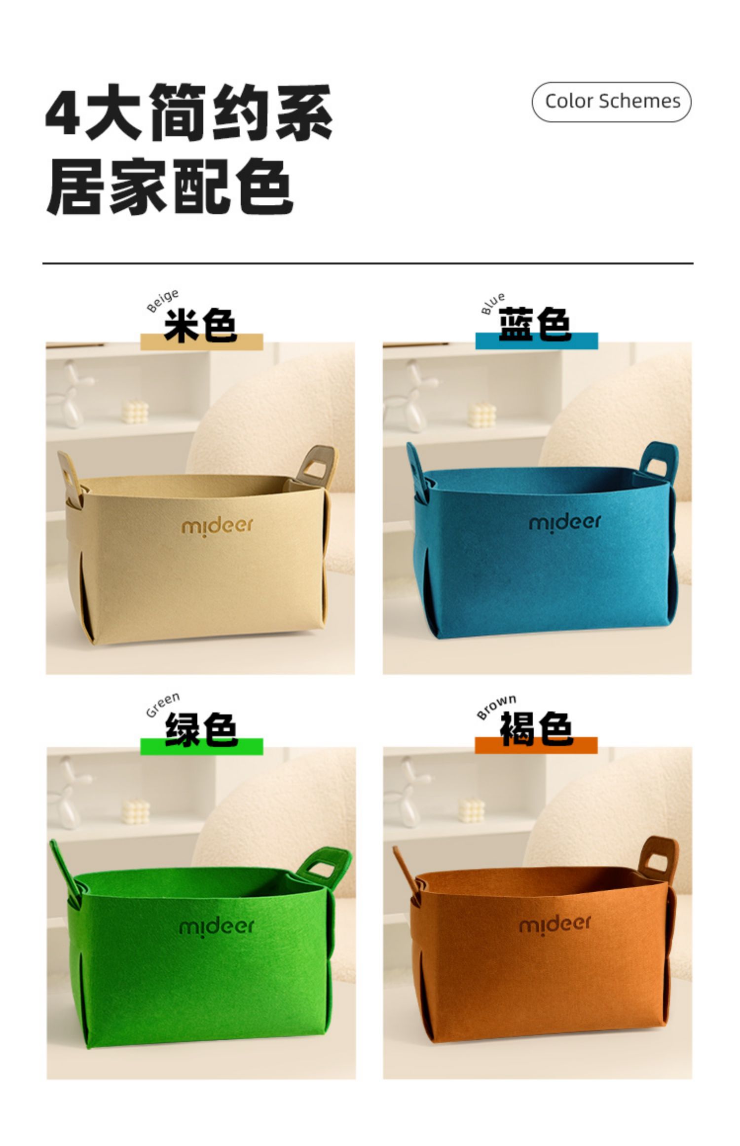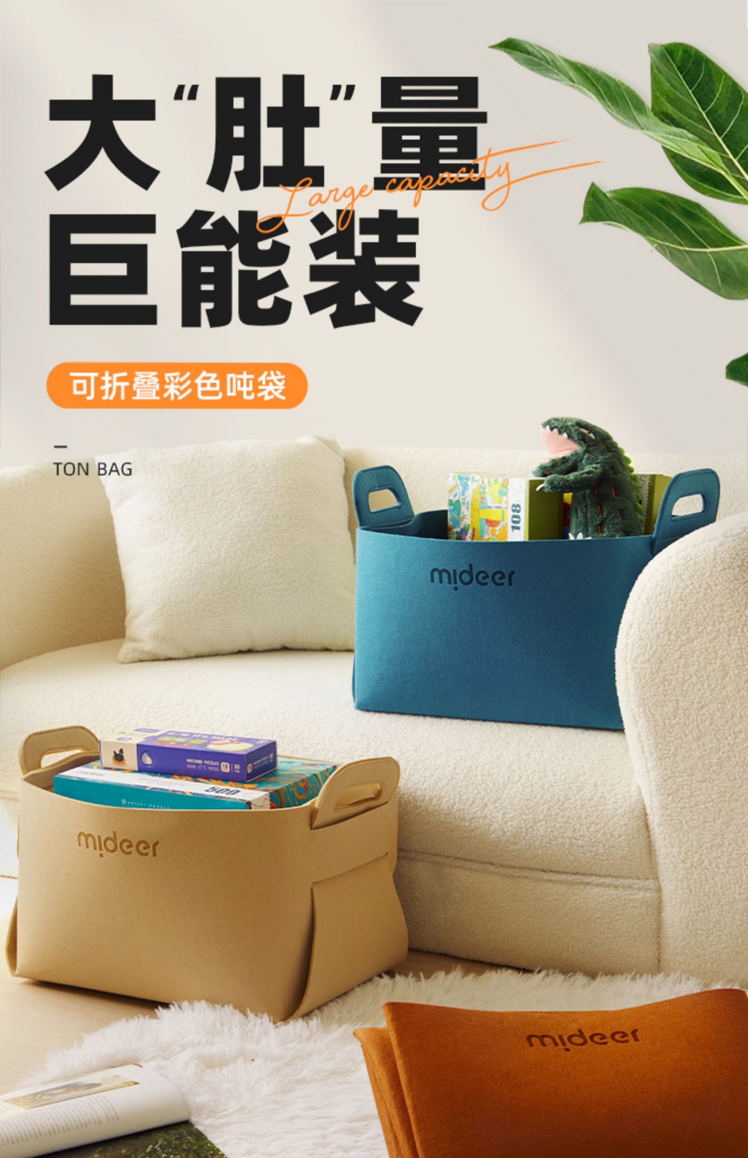 mideer弥鹿收纳篮大容量羊毛毡杂物整理框儿童玩具手提袋折叠家用