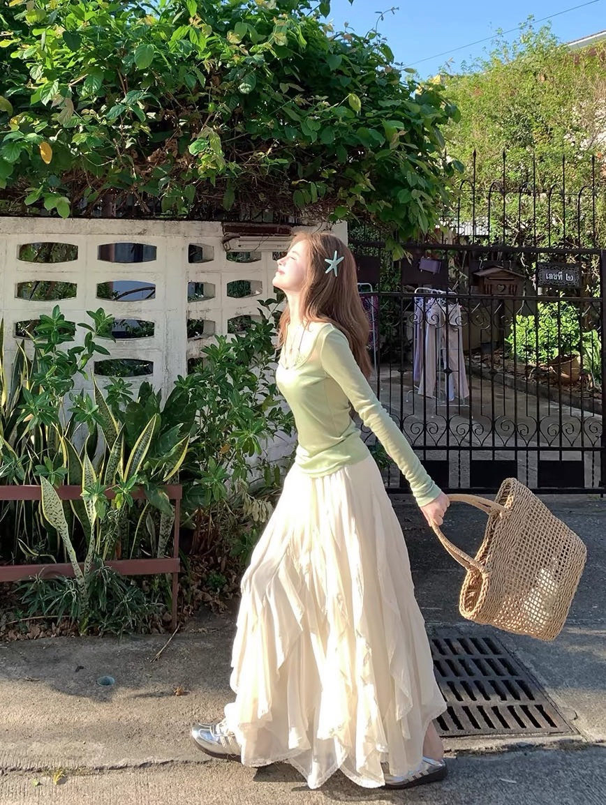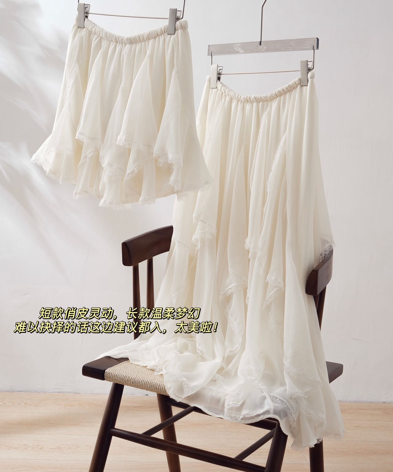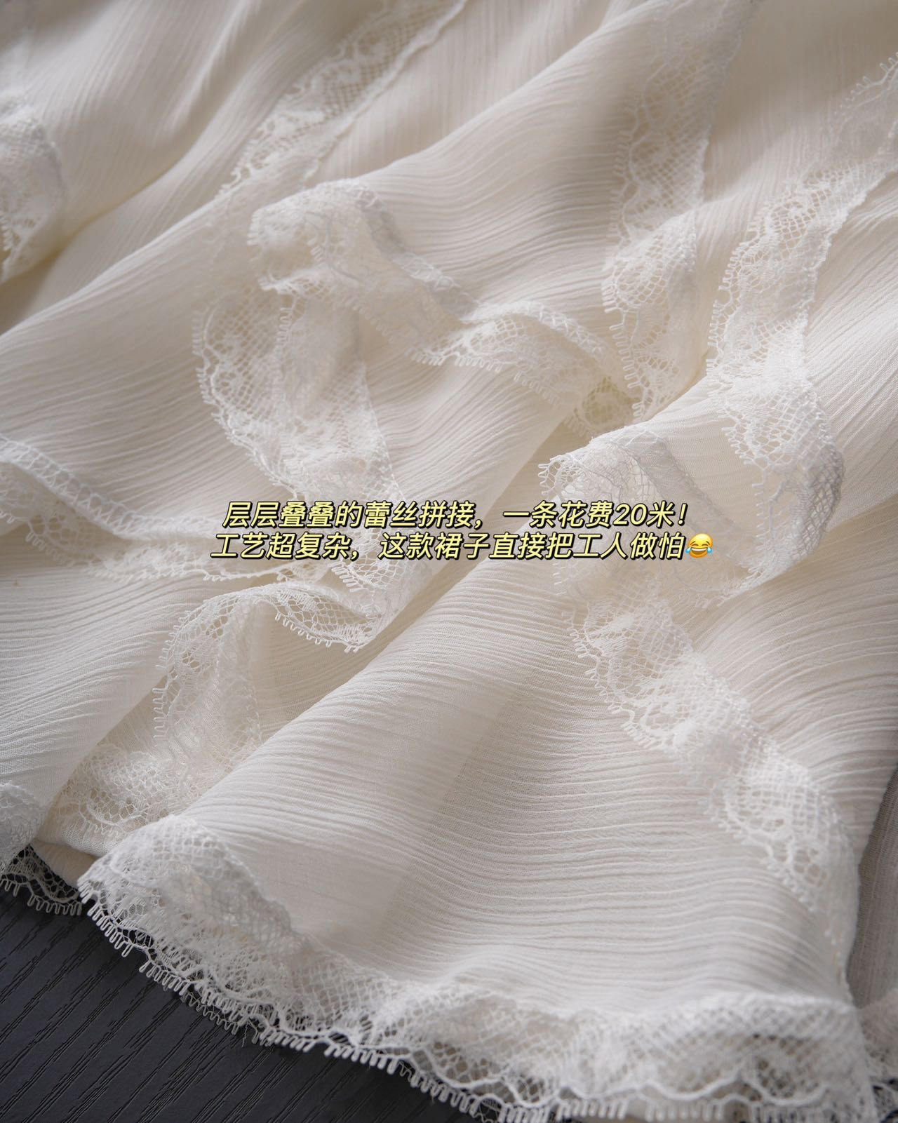 【重工不规则蕾丝蛋糕裙】清透雪纺皱面料 轻盈飘逸 氛围感满满~