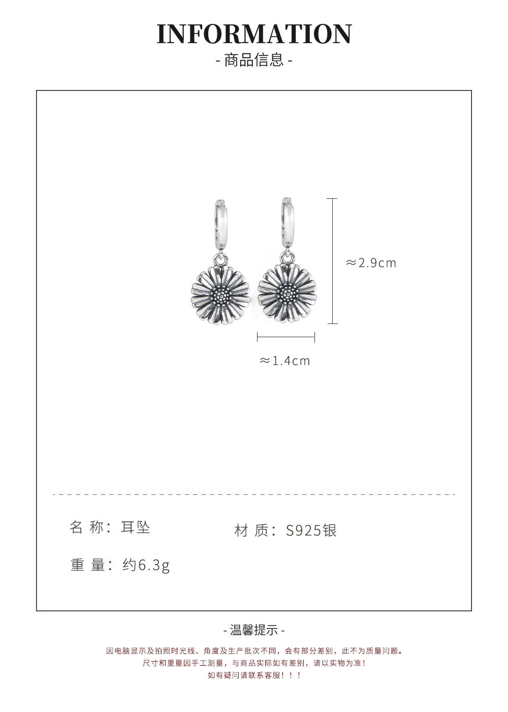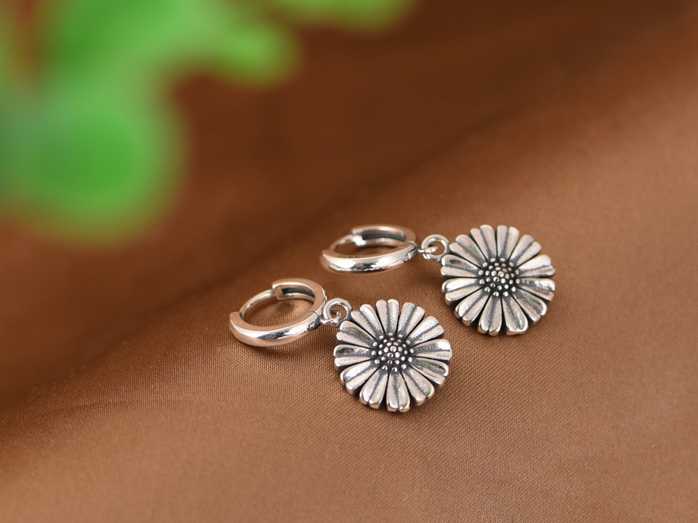 【一片幽情】S925银复古太阳花向日葵耳钉【SCH-SY32710】