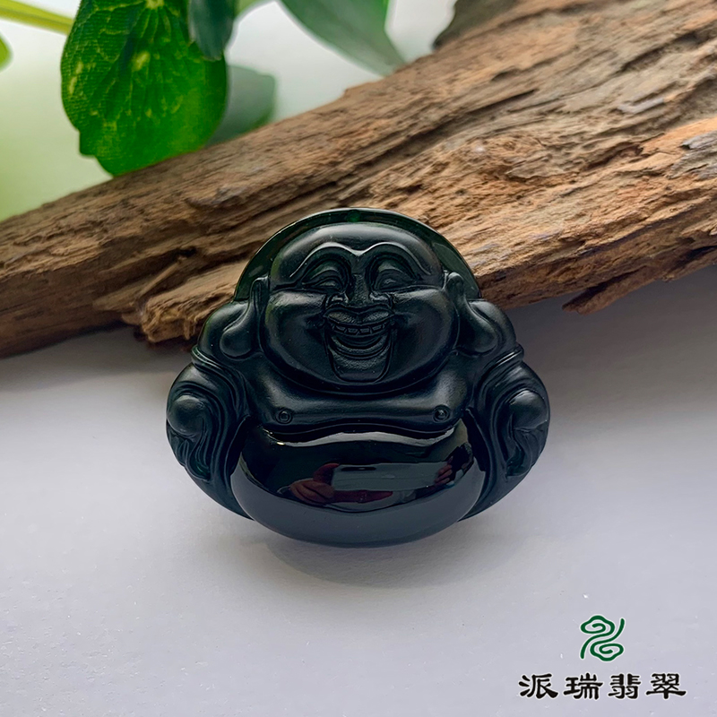 派瑞翡翠 翡翠佛 糯种 墨翠