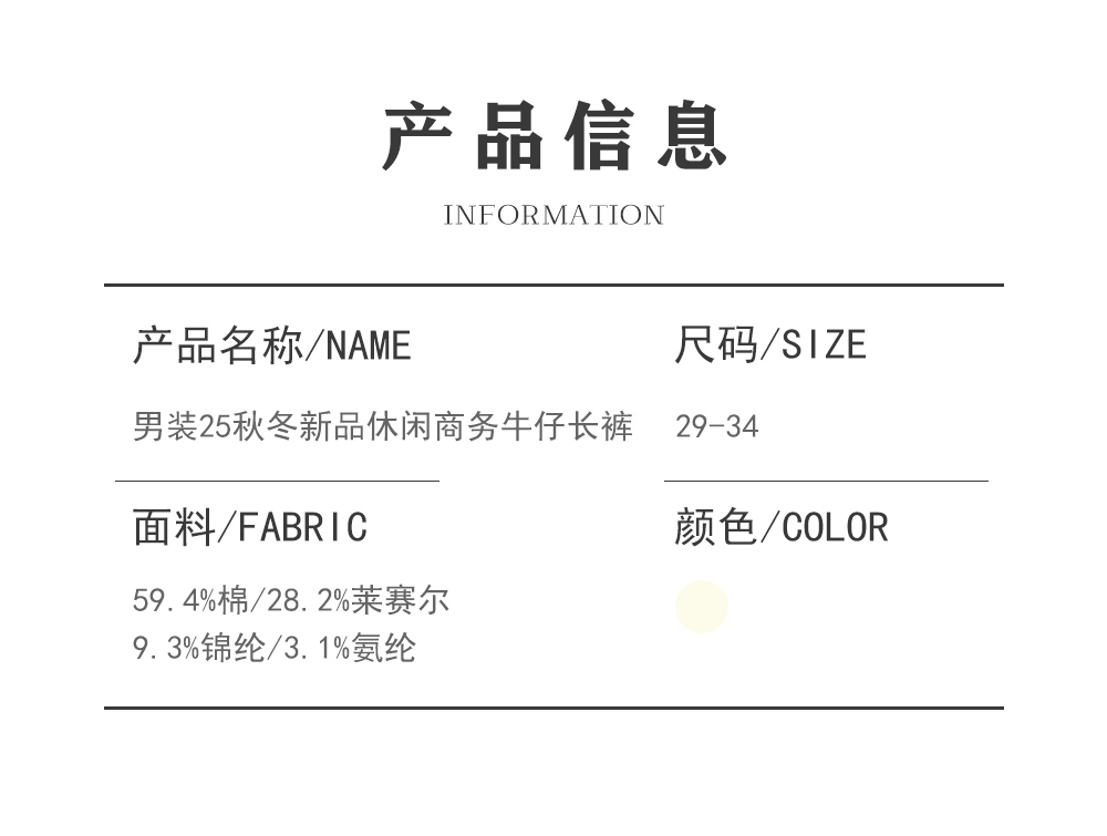 男装25秋冬新品休闲商务牛仔长裤2293-5N6759