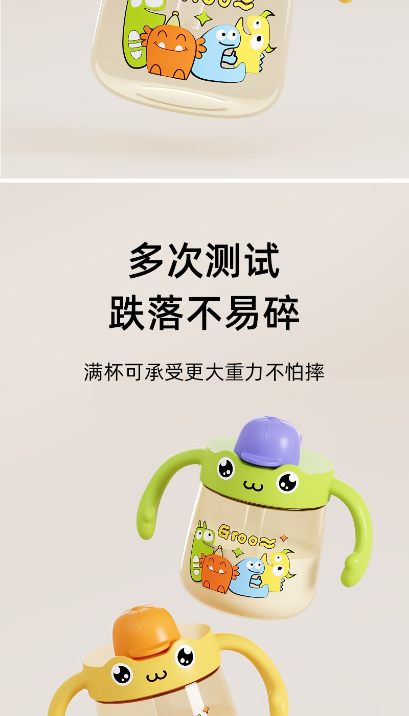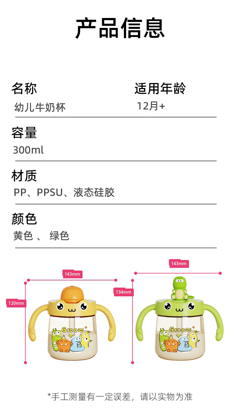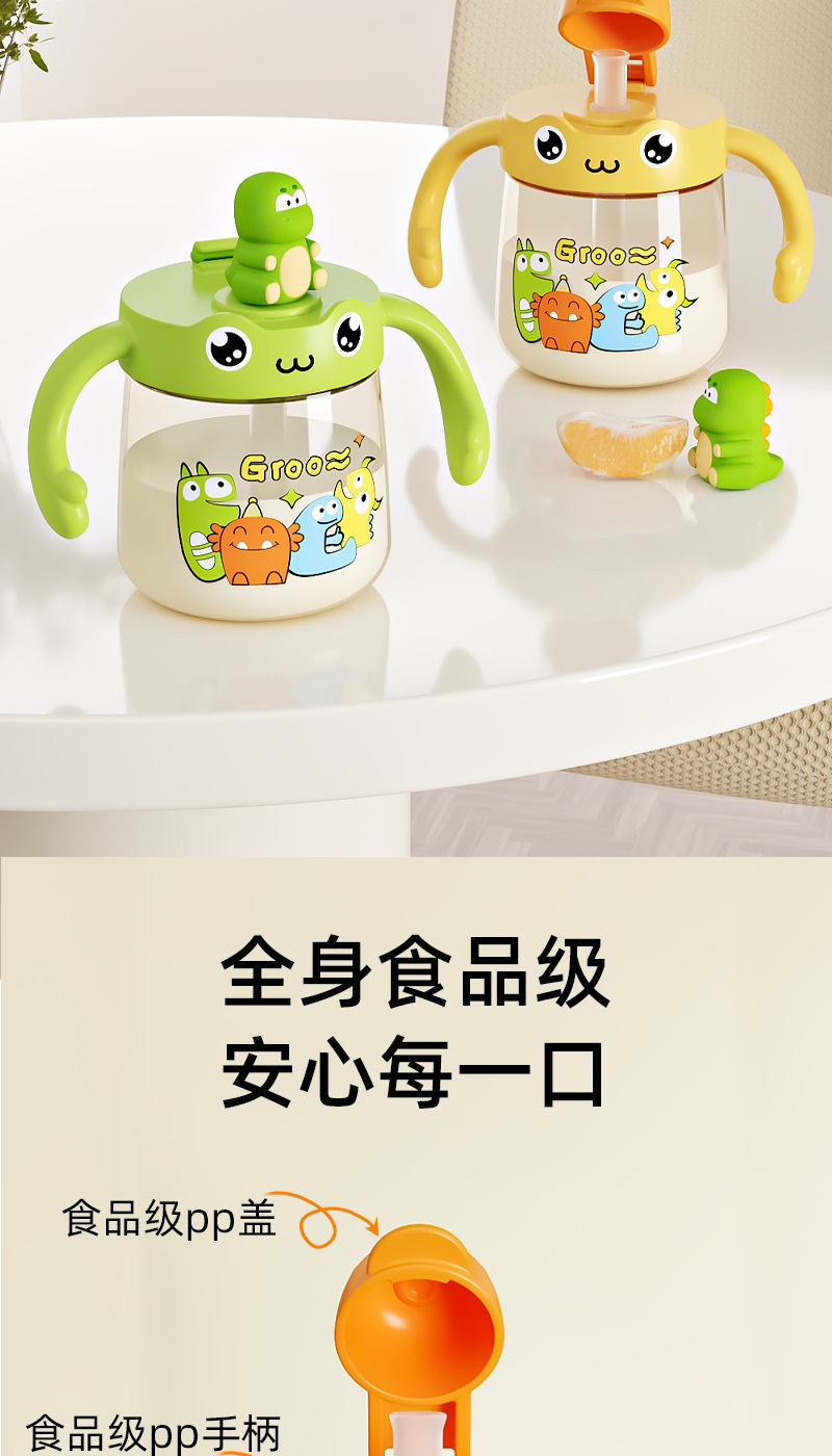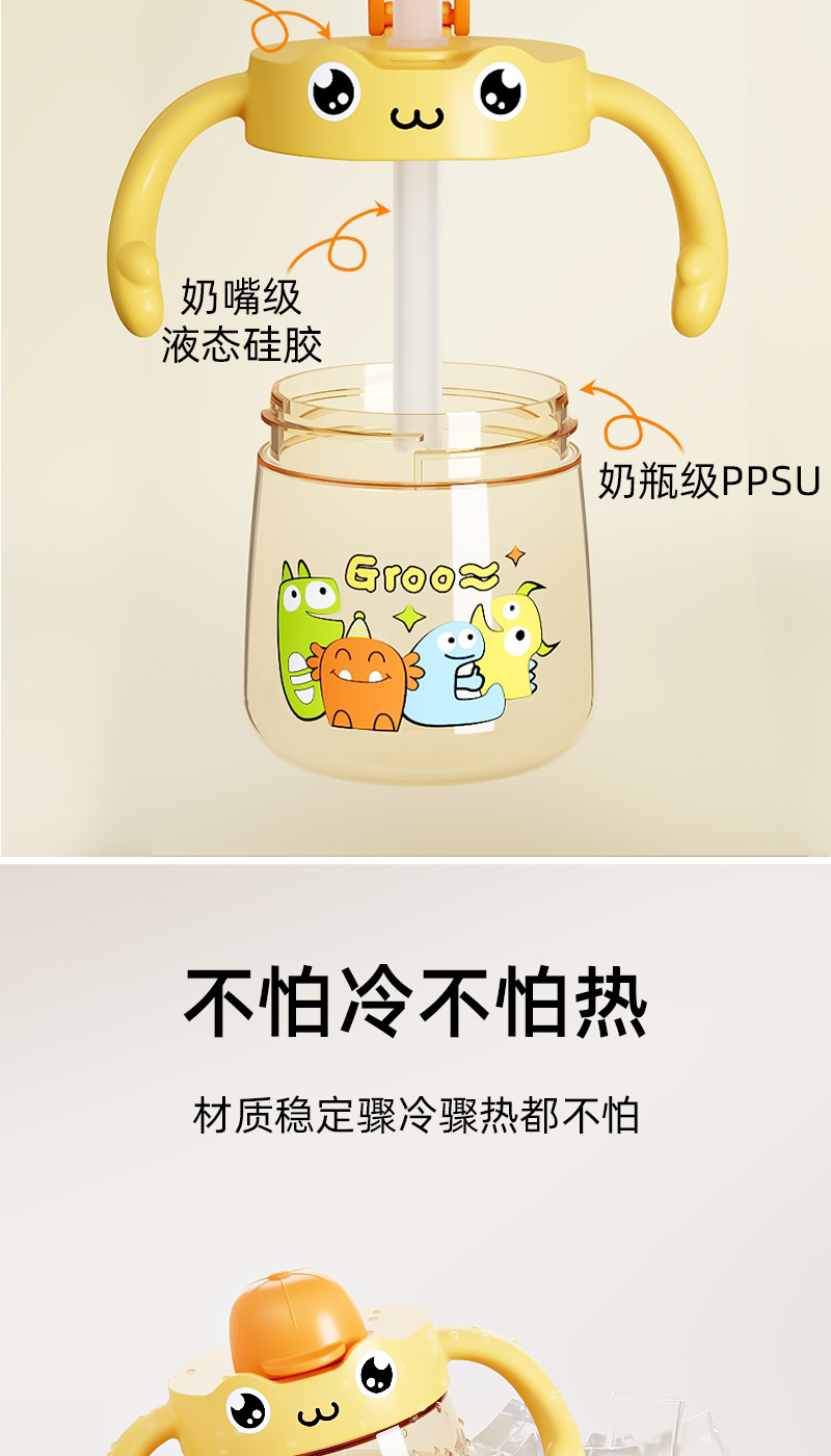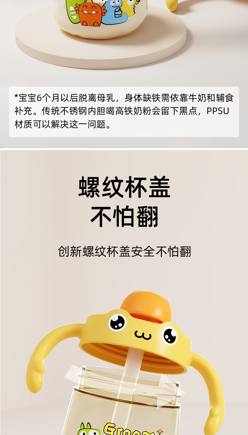 恐龙牛奶杯PPSU学饮杯带柄儿童水杯吸管杯夏季刻度喝水杯