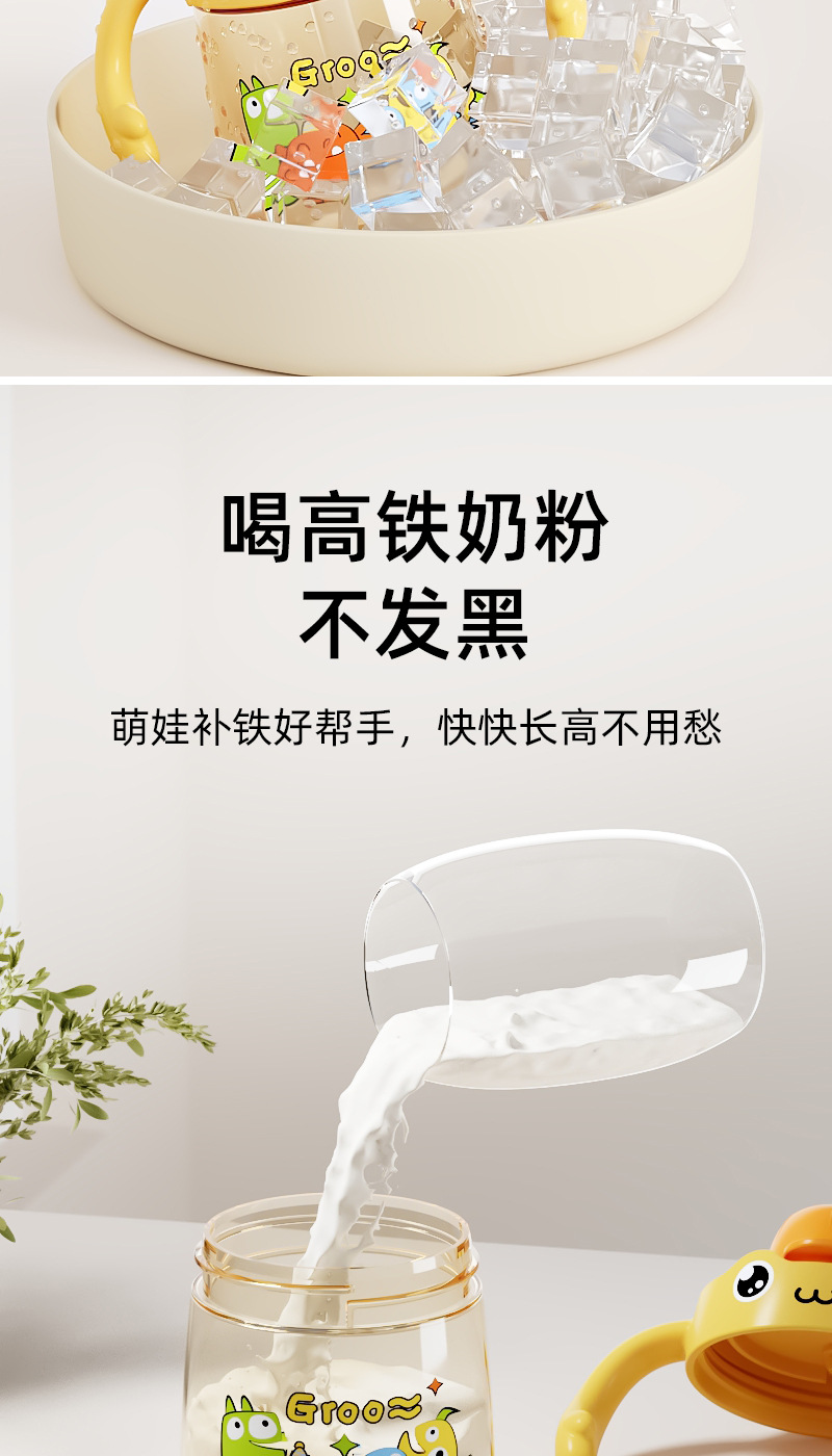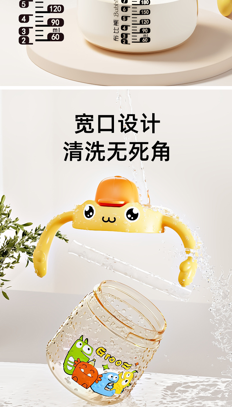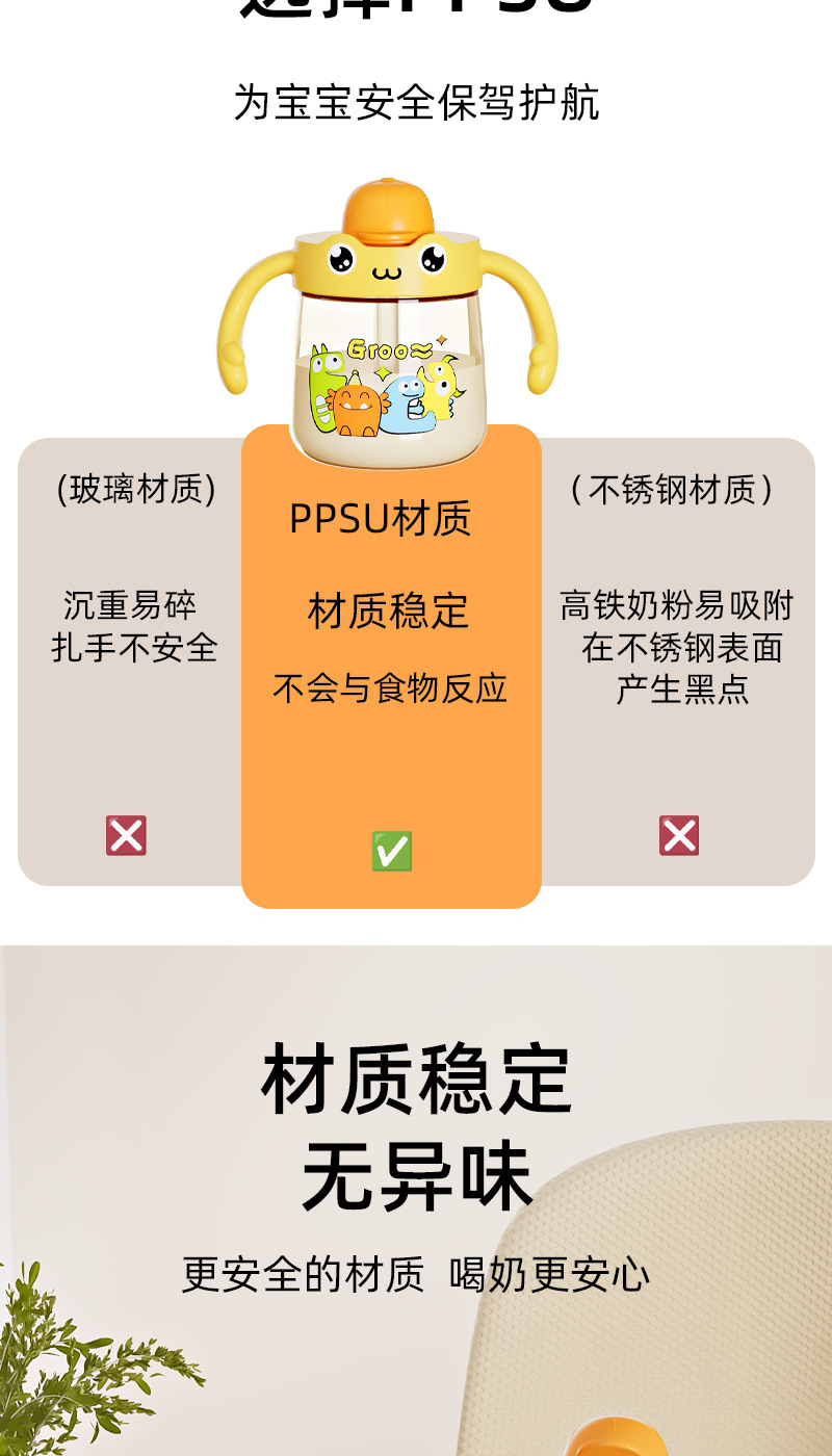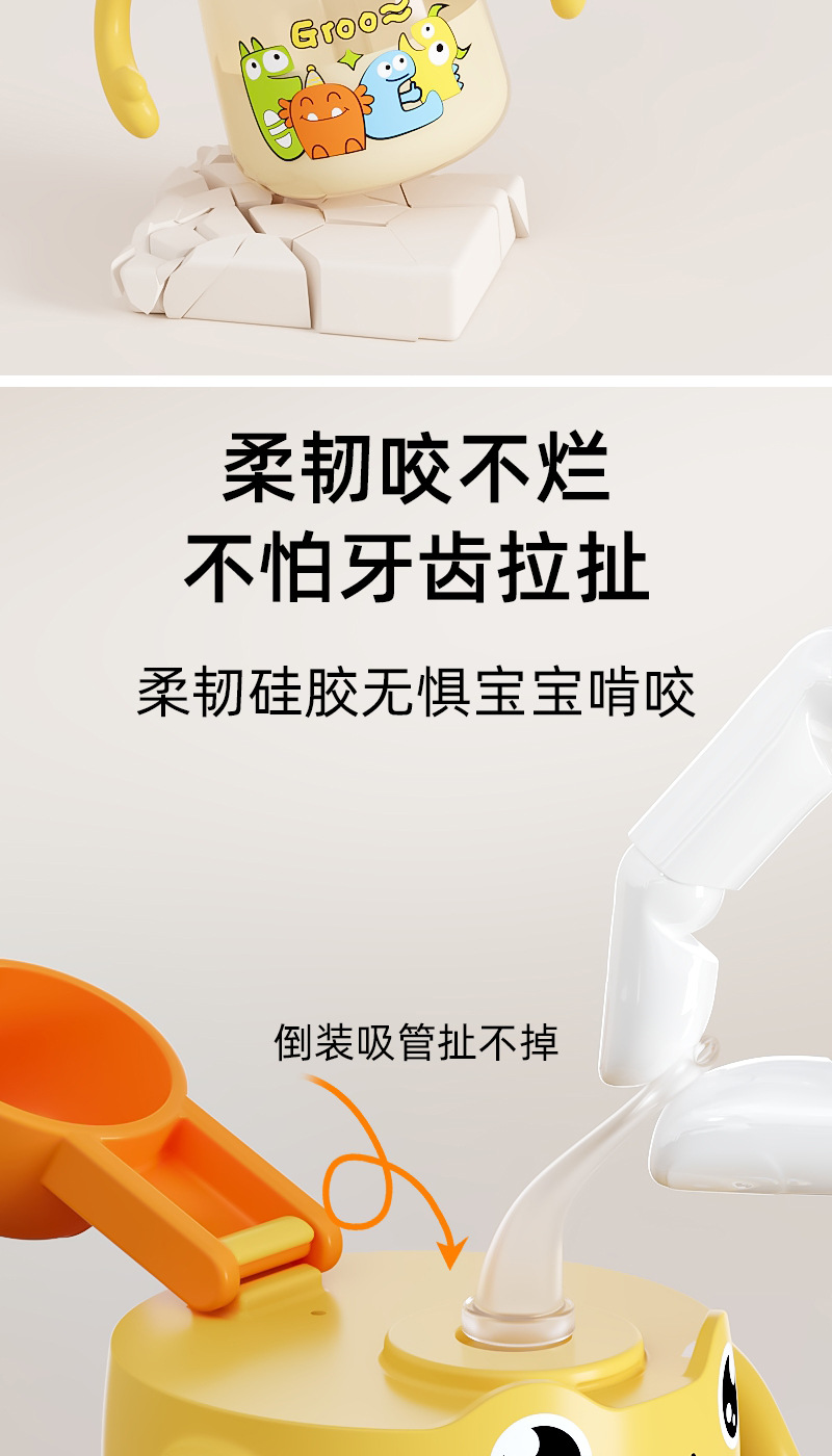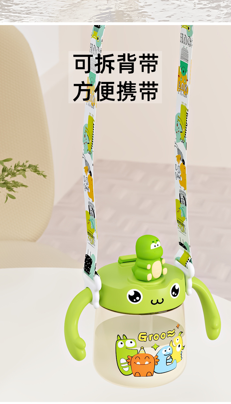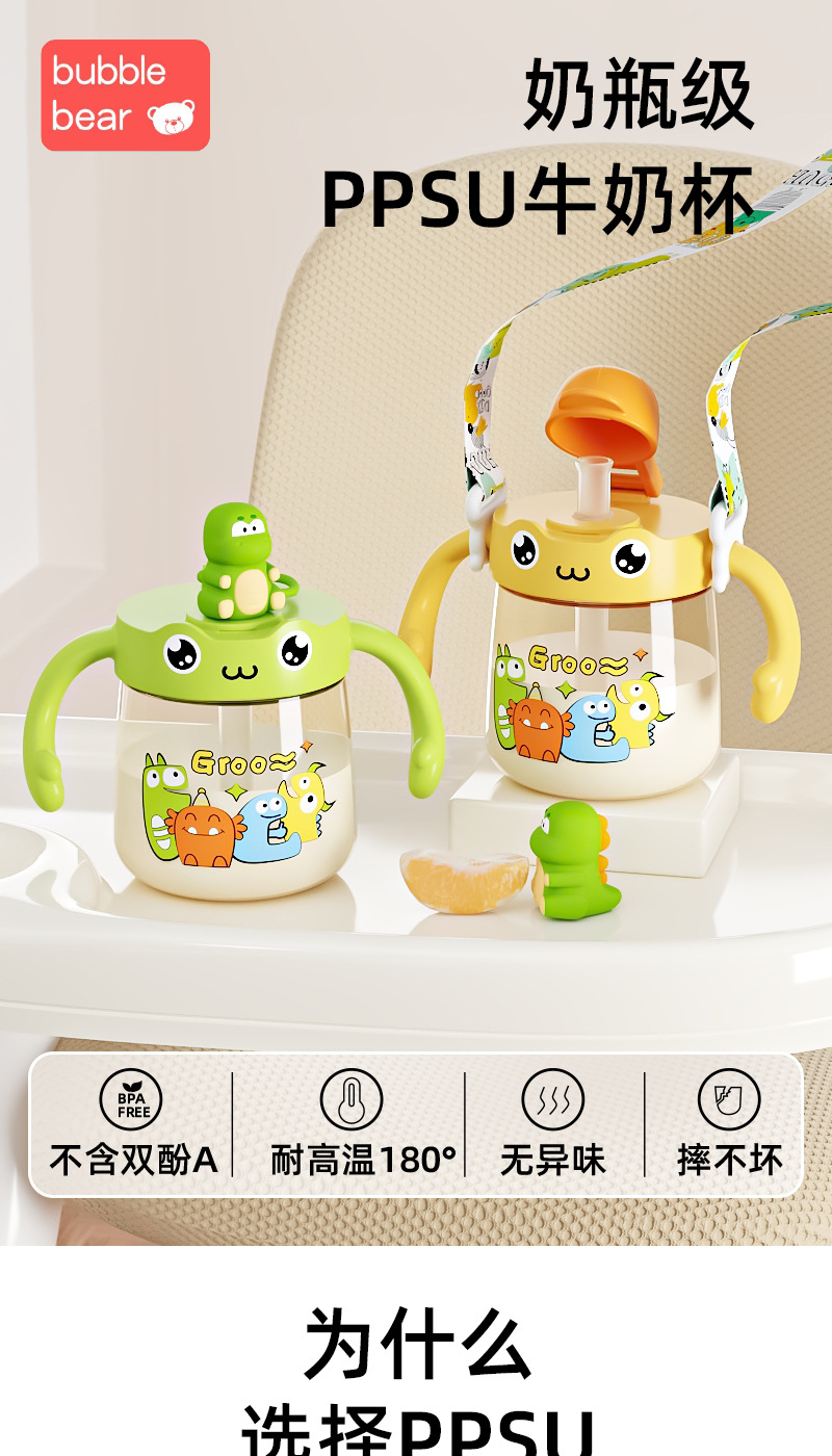 恐龙牛奶杯PPSU学饮杯带柄儿童水杯吸管杯夏季刻度喝水杯