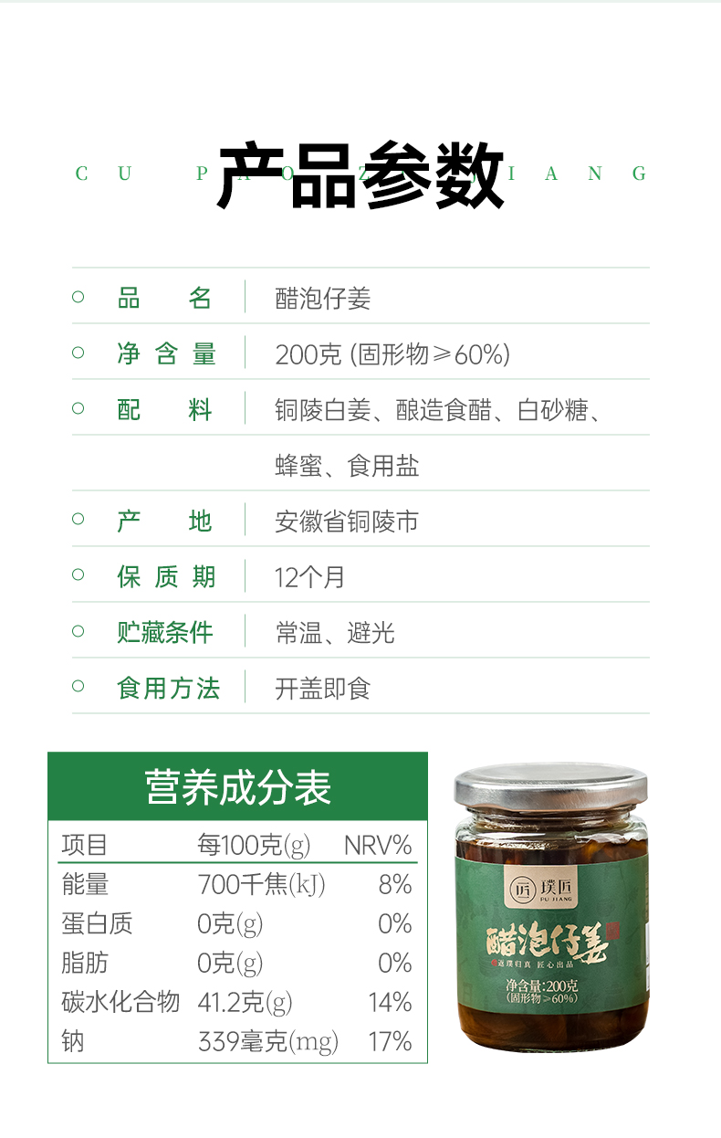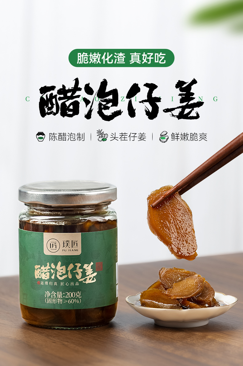 璞匠铜陵醋泡姜官方旗舰店即食仔姜生姜片白姜嫩姜腌制泡菜下饭菜