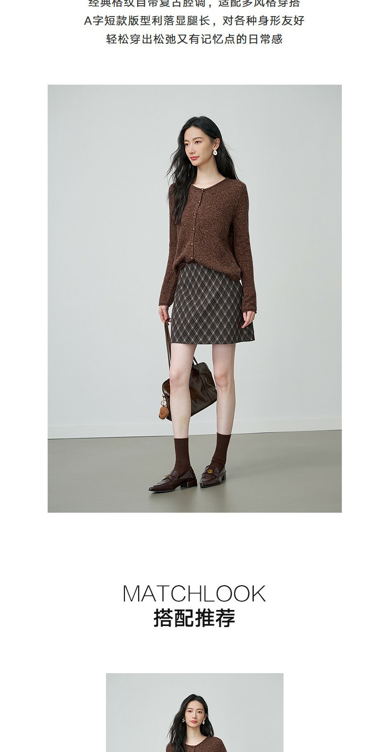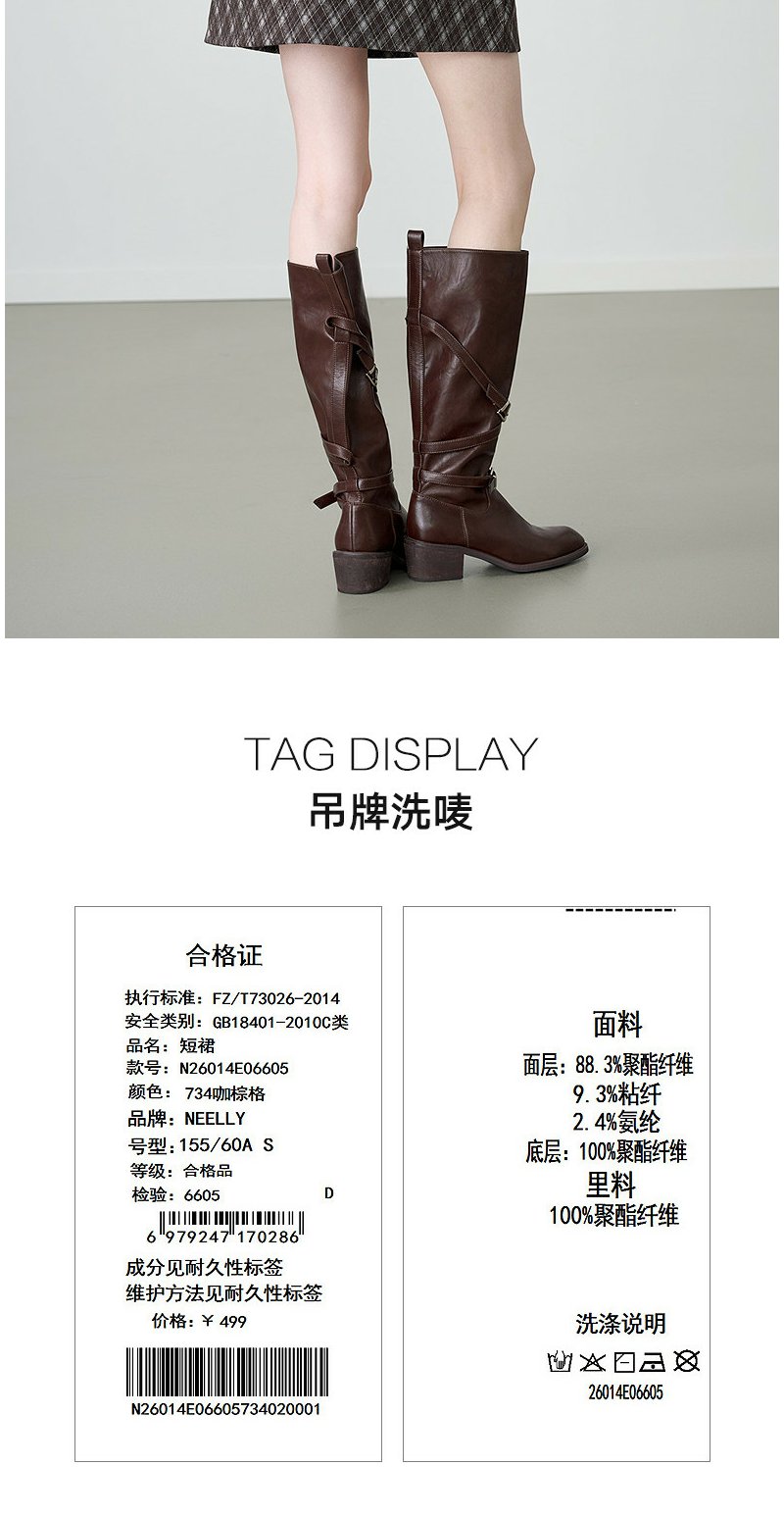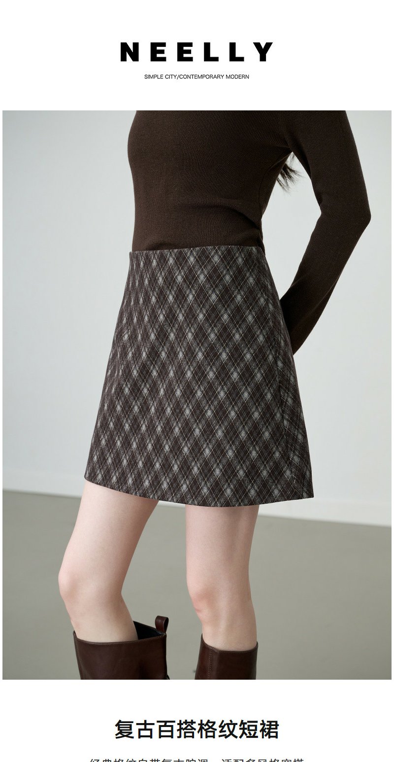 NEELLY纳俪商场同款春季新款复古百搭格纹短裙女慵懒显瘦A字裙N26014E06605