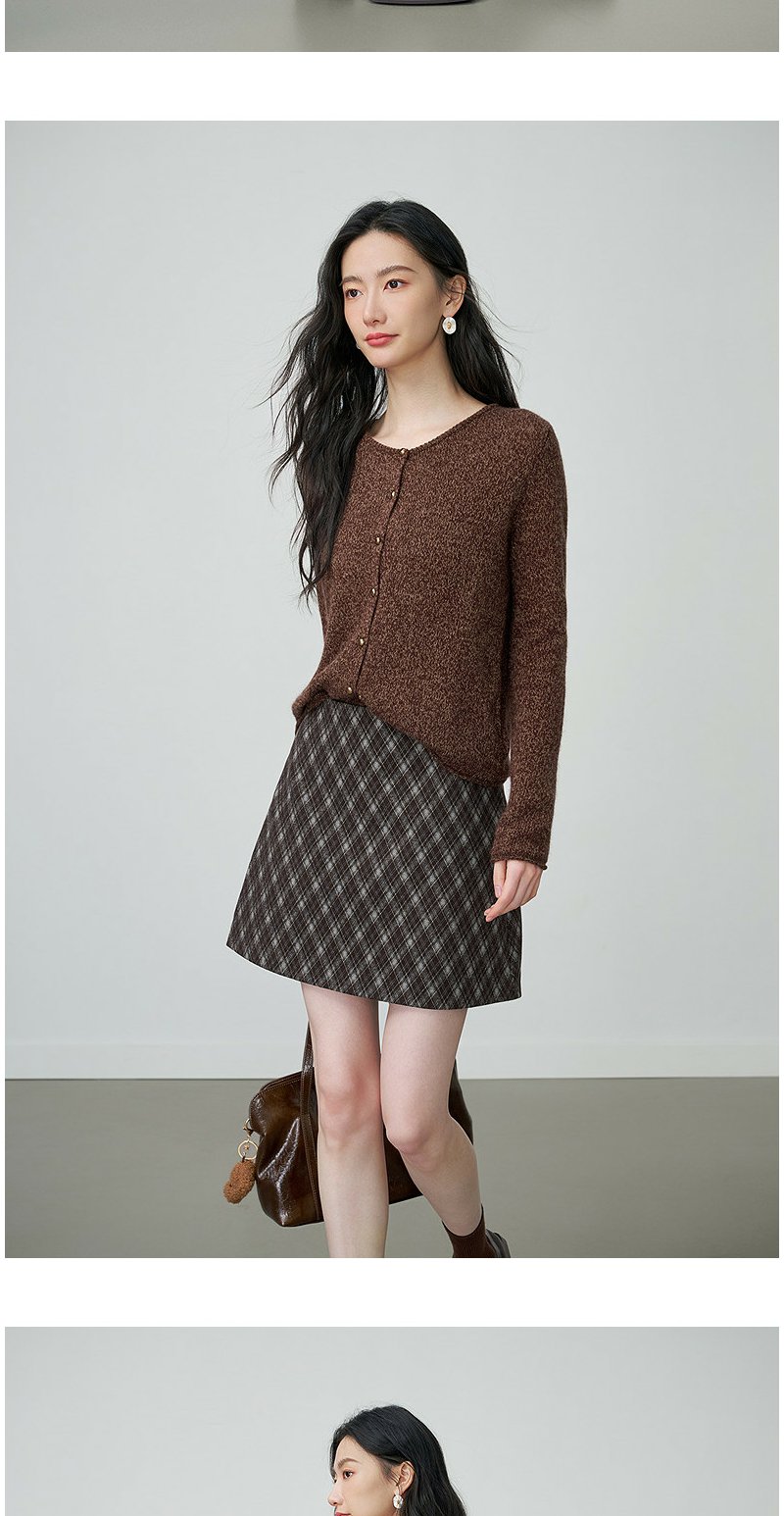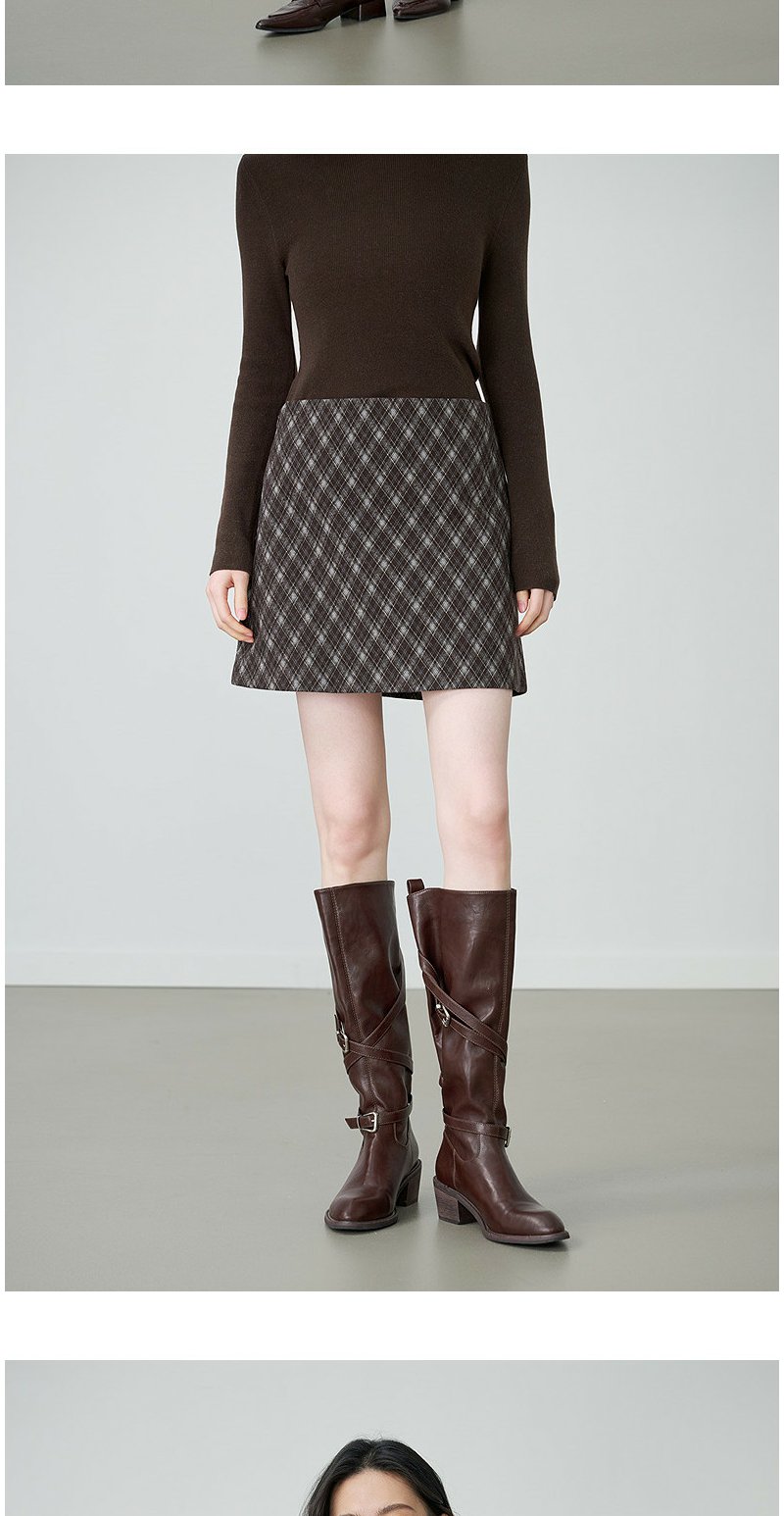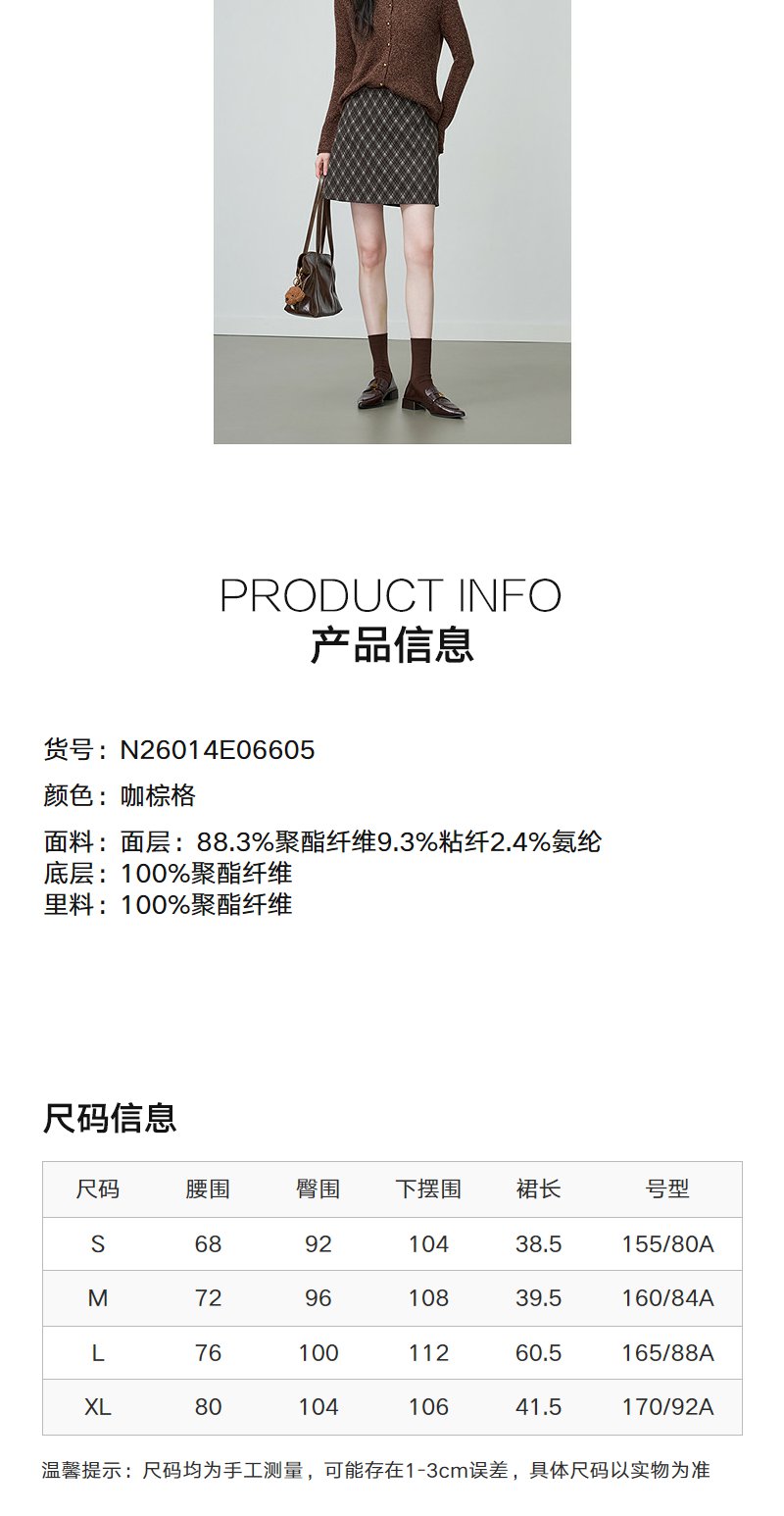 NEELLY纳俪商场同款春季新款复古百搭格纹短裙女慵懒显瘦A字裙N26014E06605