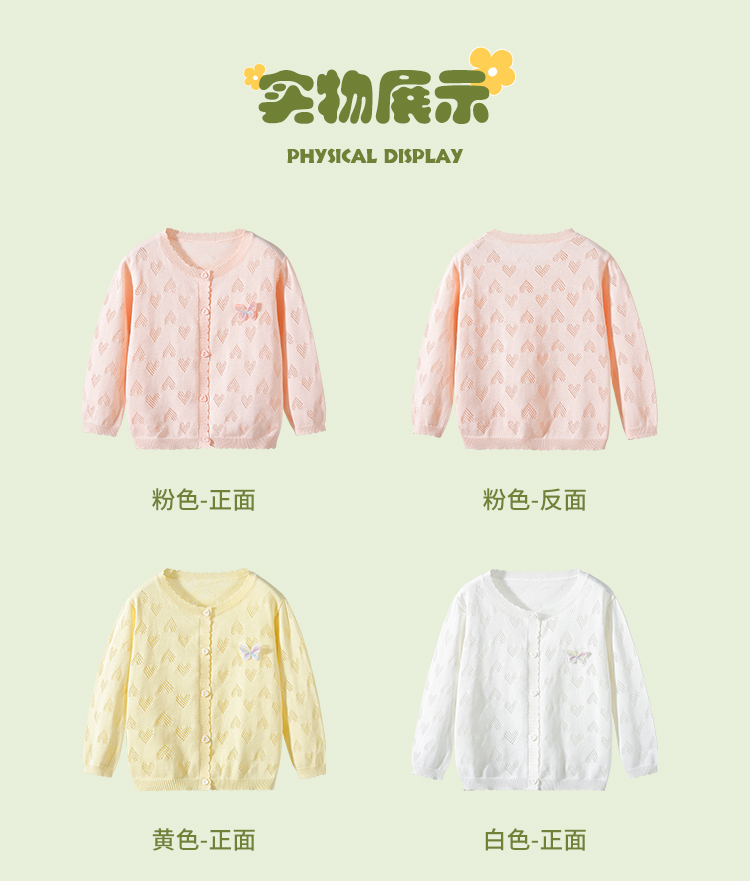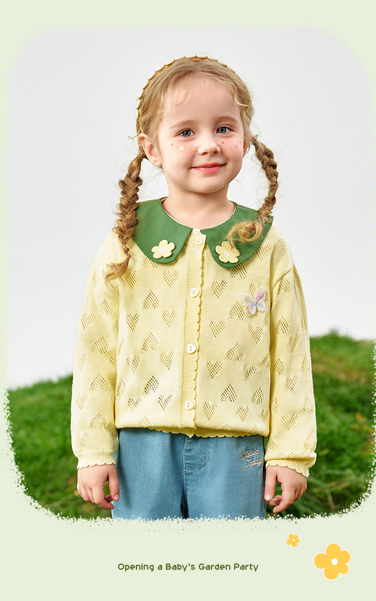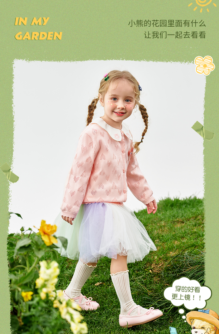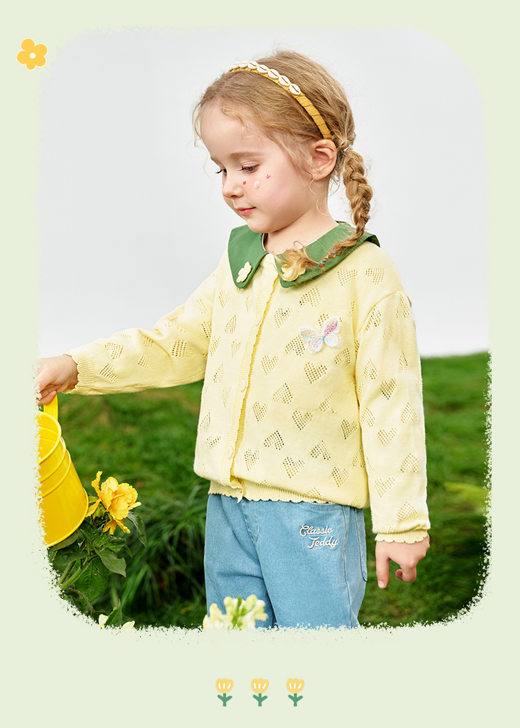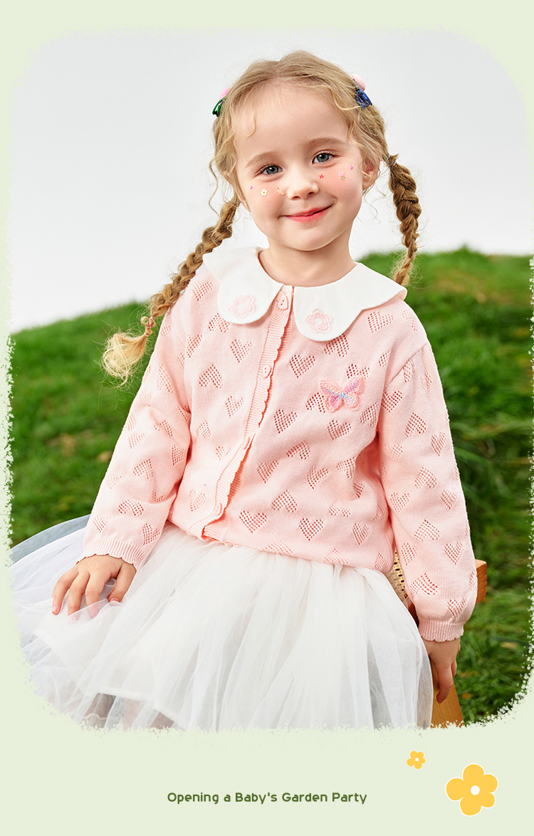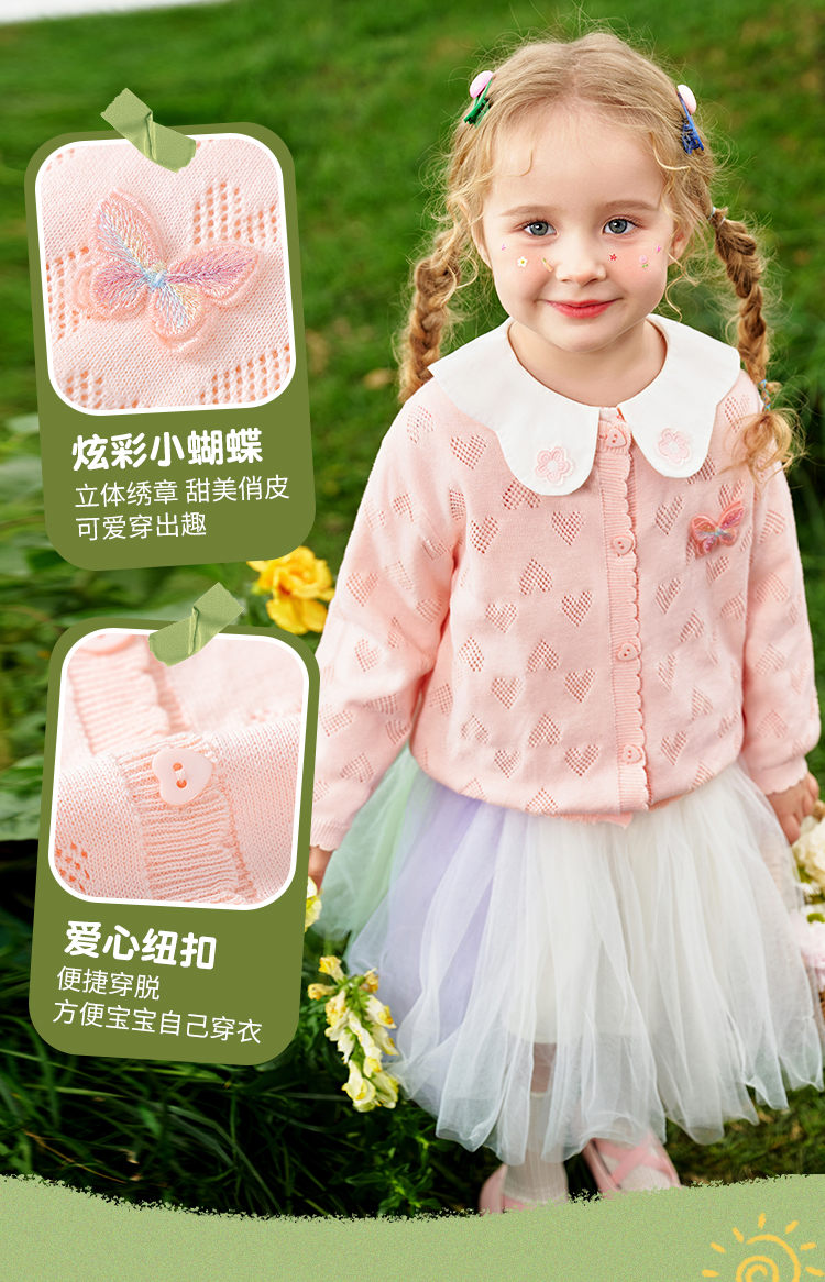 【纯棉】【90-140】【精典泰迪】女童春秋针织开衫外套爱心蝴蝶结开衫
