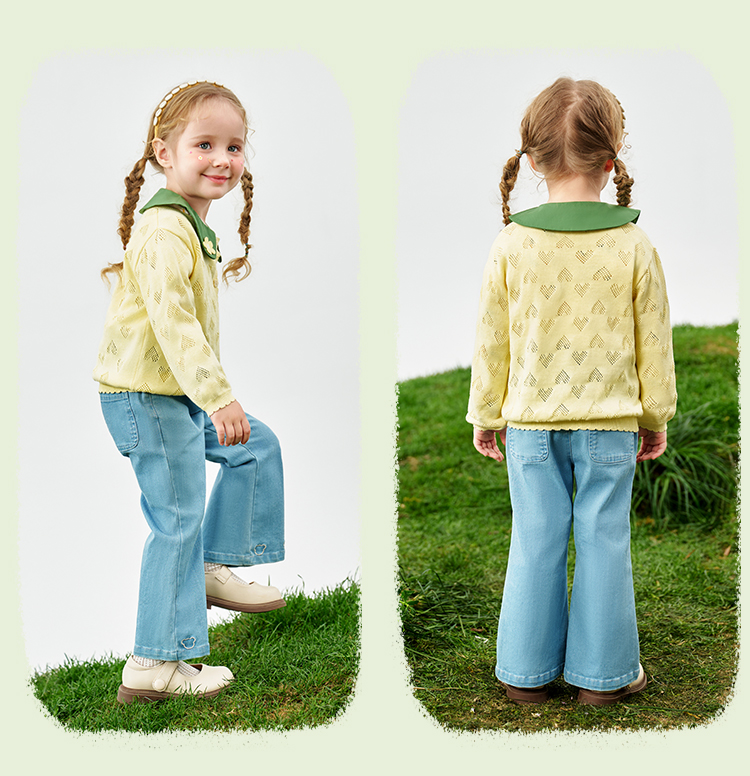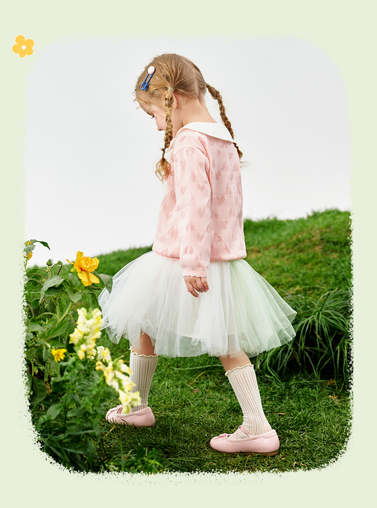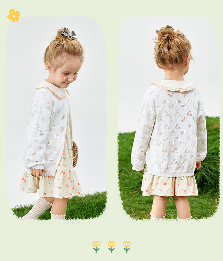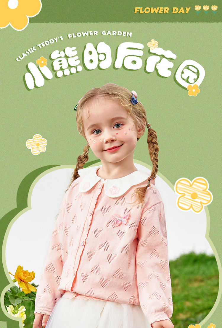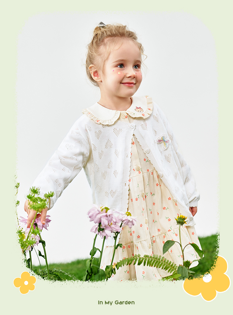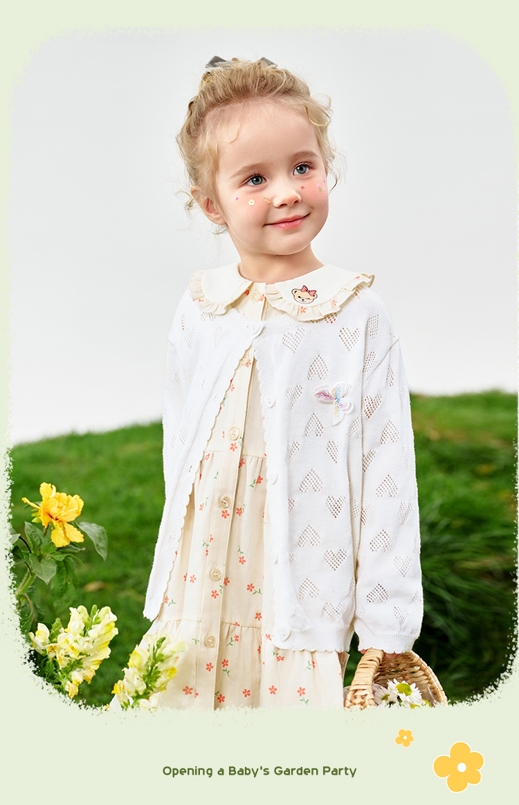 【纯棉】【90-140】【精典泰迪】女童春秋针织开衫外套爱心蝴蝶结开衫