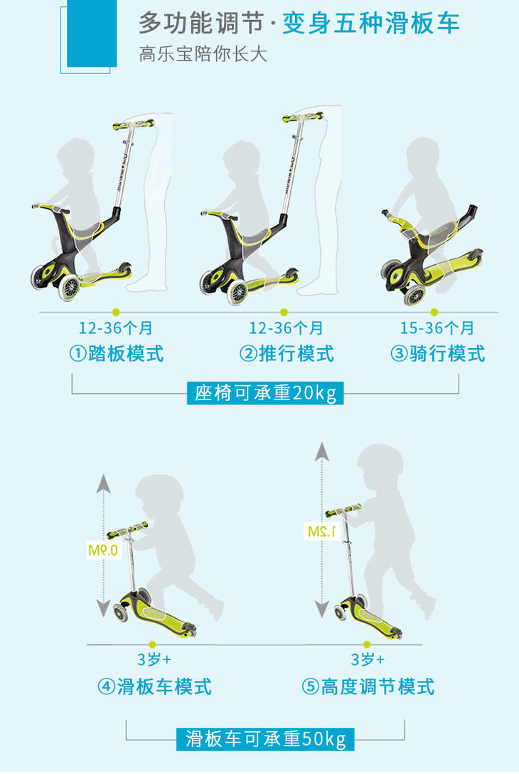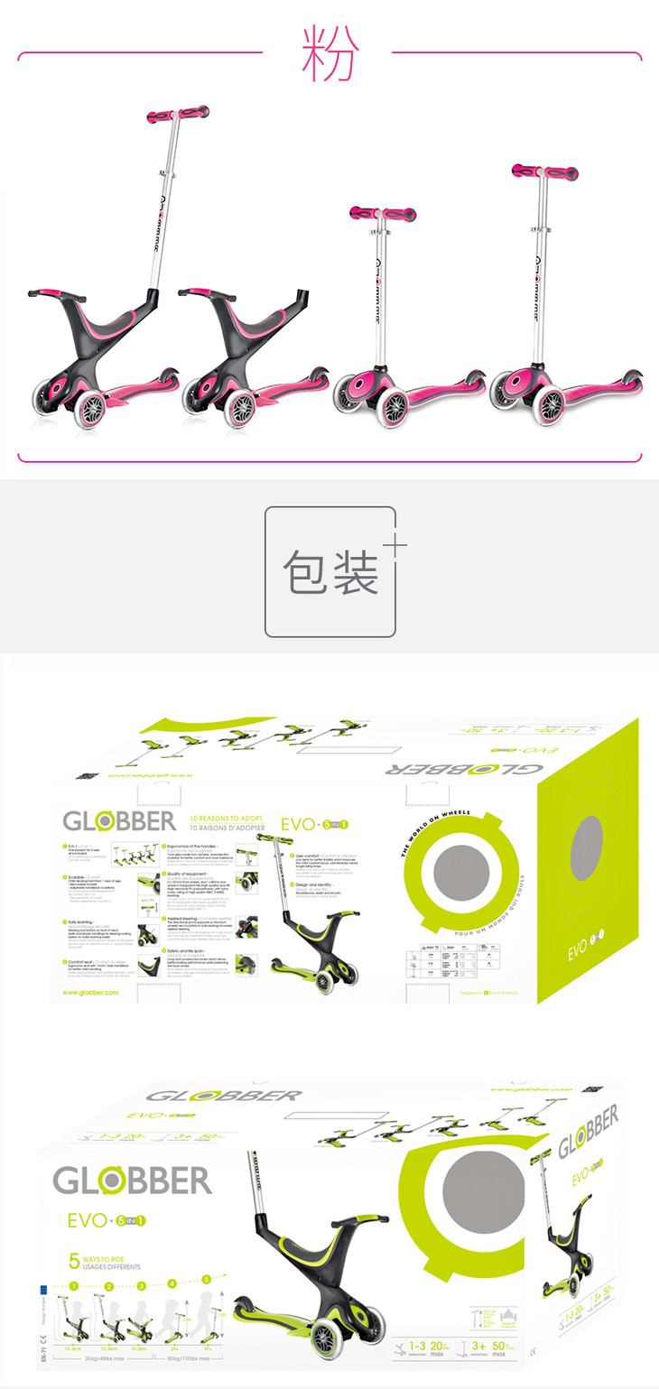 【高乐宝】法国高乐宝GLOBBER五合一座椅运动款儿童滑板车457