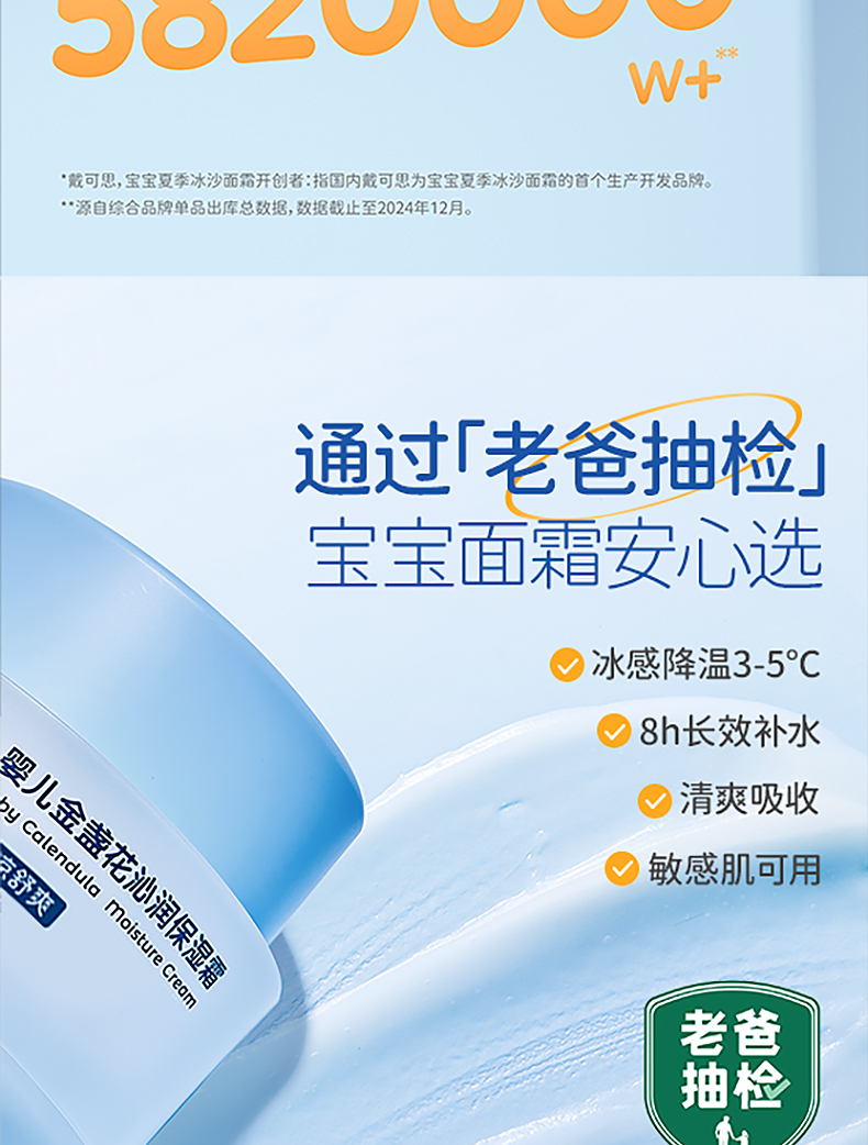 戴可思婴儿降温冰沙面霜夏季金盏花补水舒缓保湿霜♥