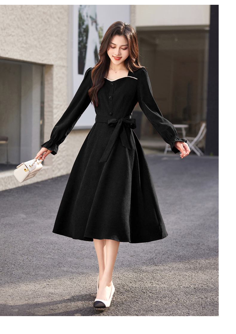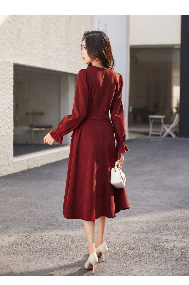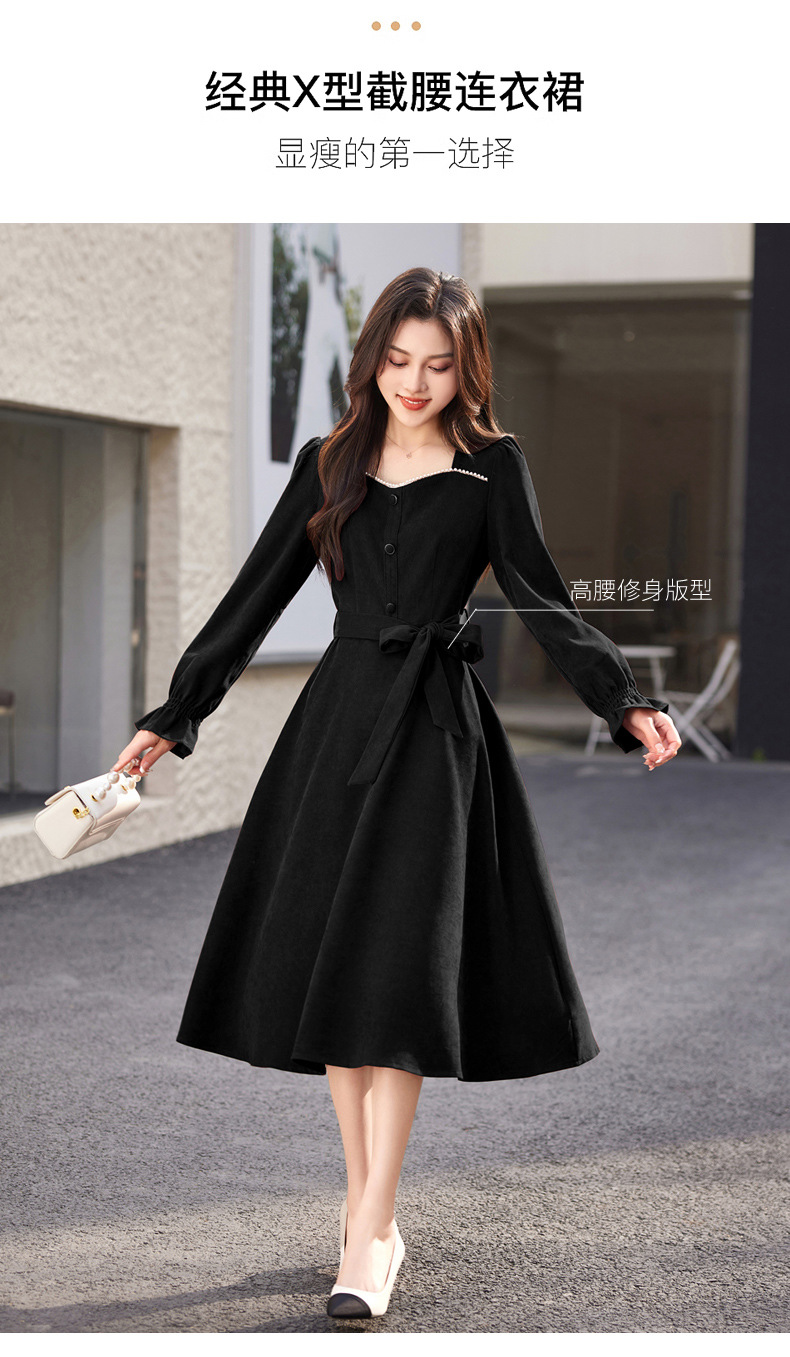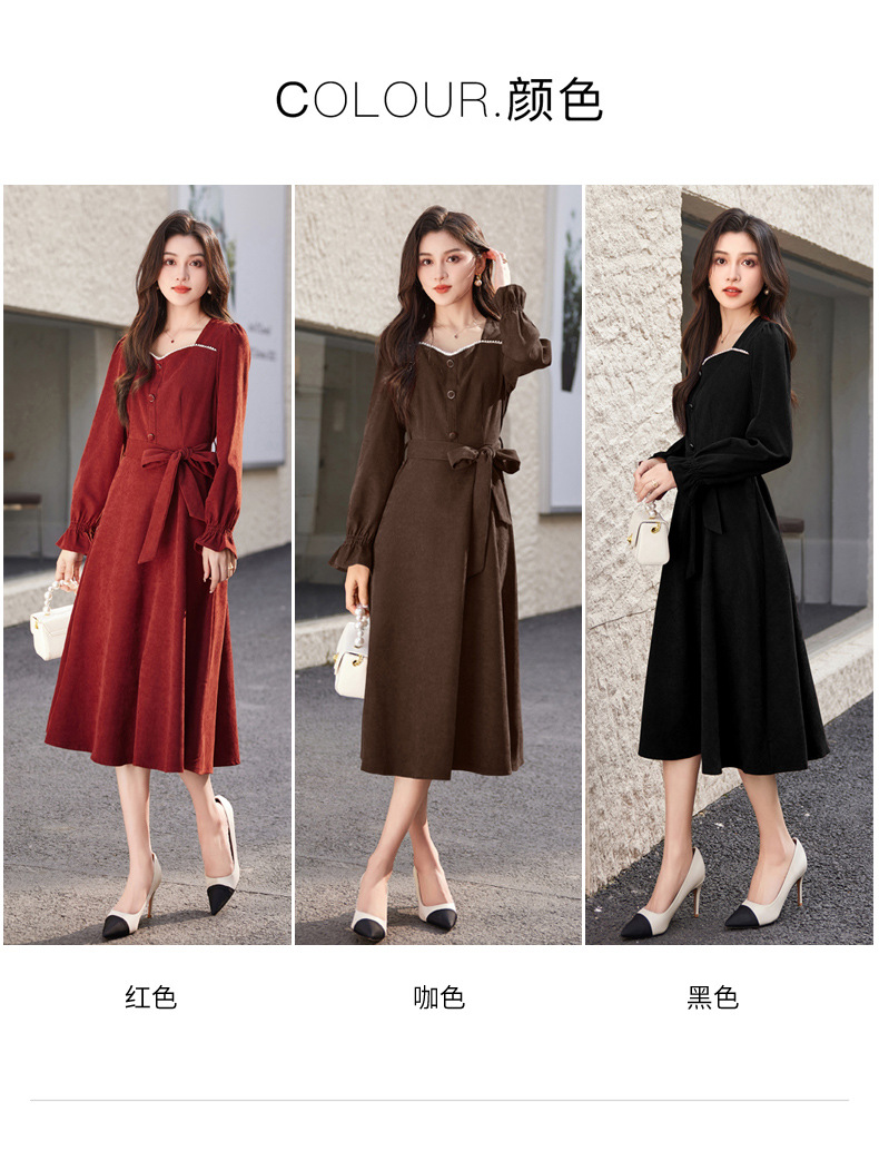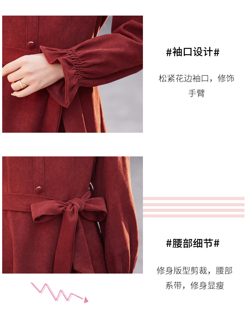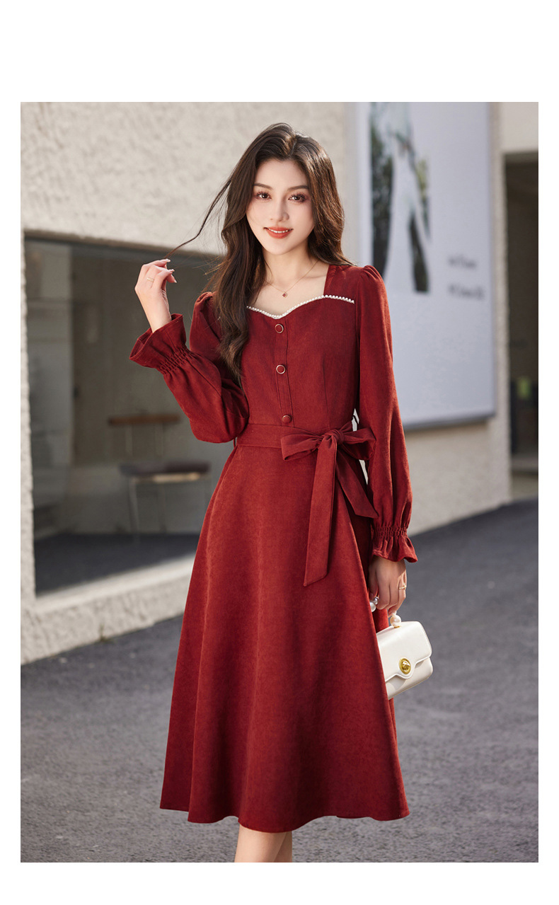 2024年秋季新款红色长裙气质显瘦珍珠拼接连衣裙MHYM38822