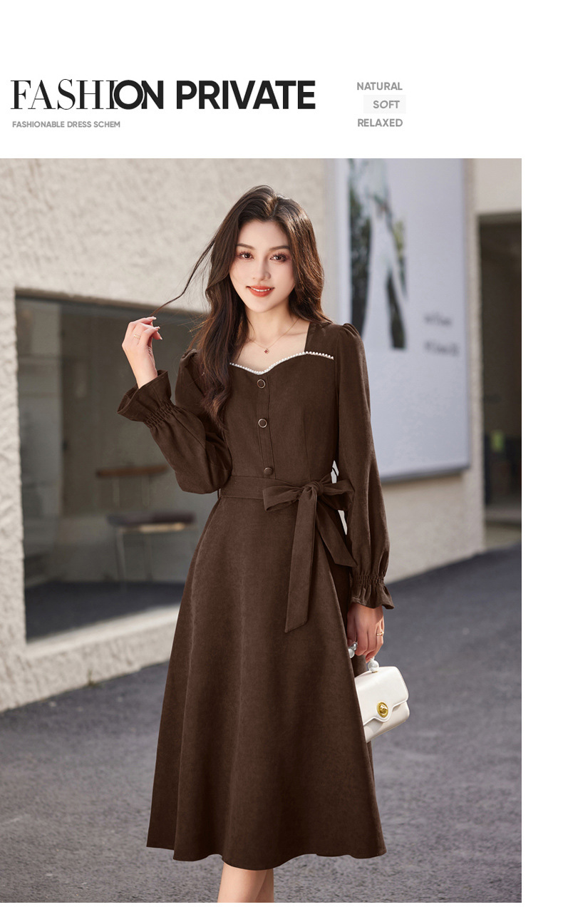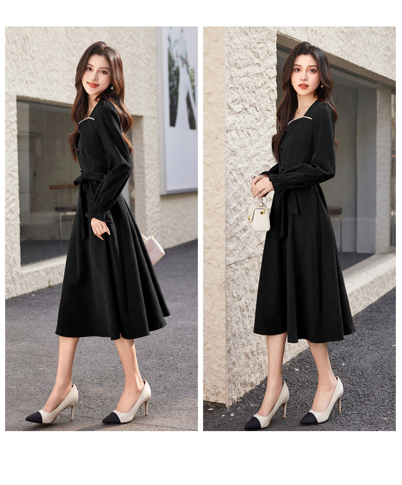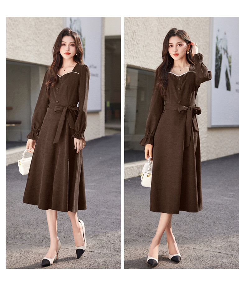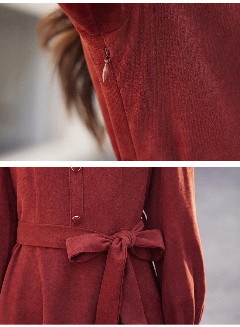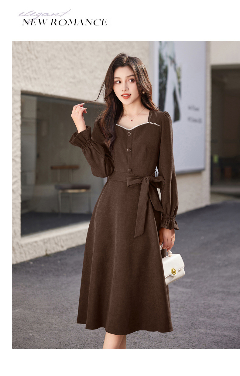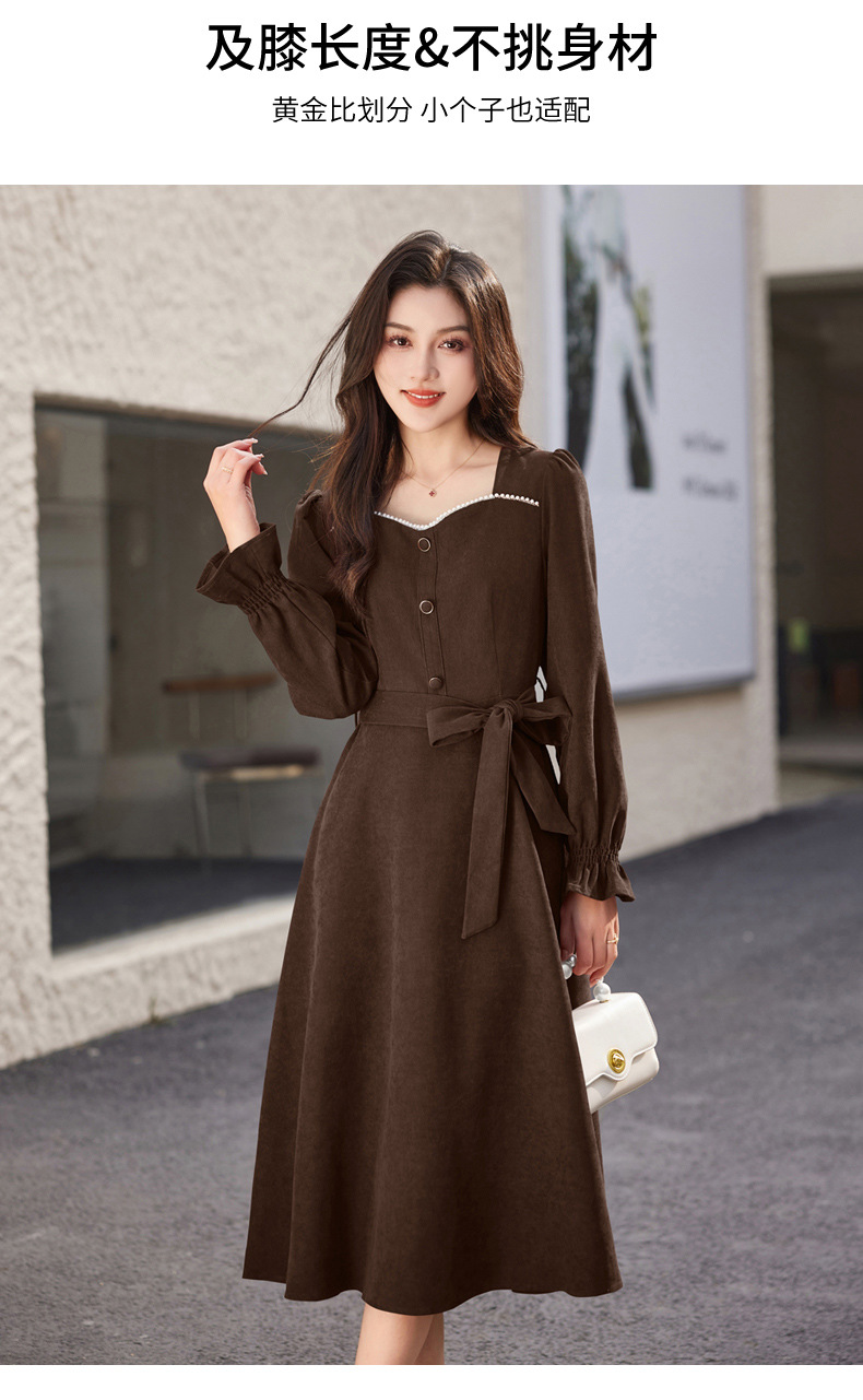 2024年秋季新款红色长裙气质显瘦珍珠拼接连衣裙MHYM38822