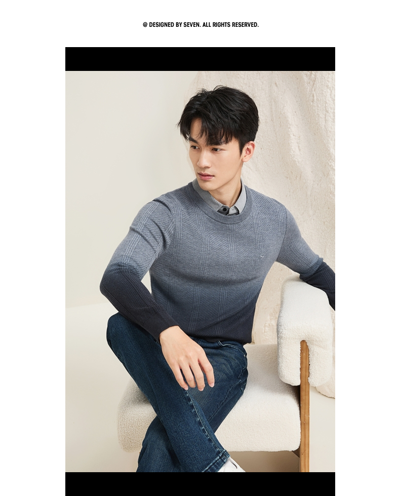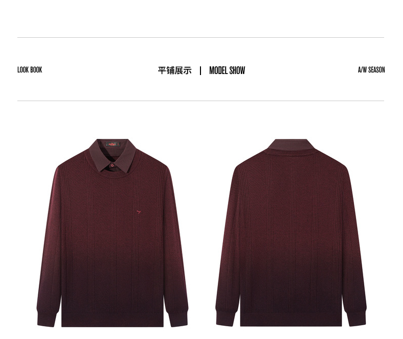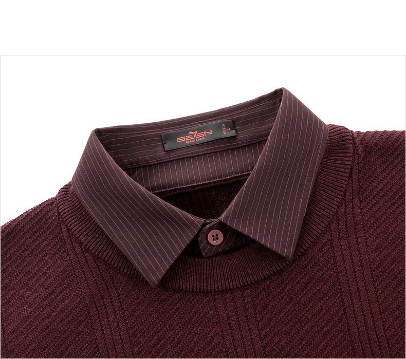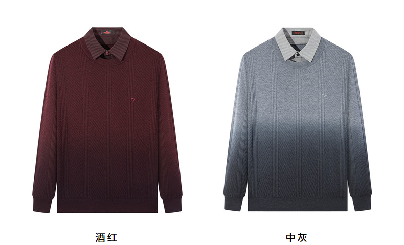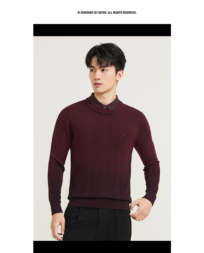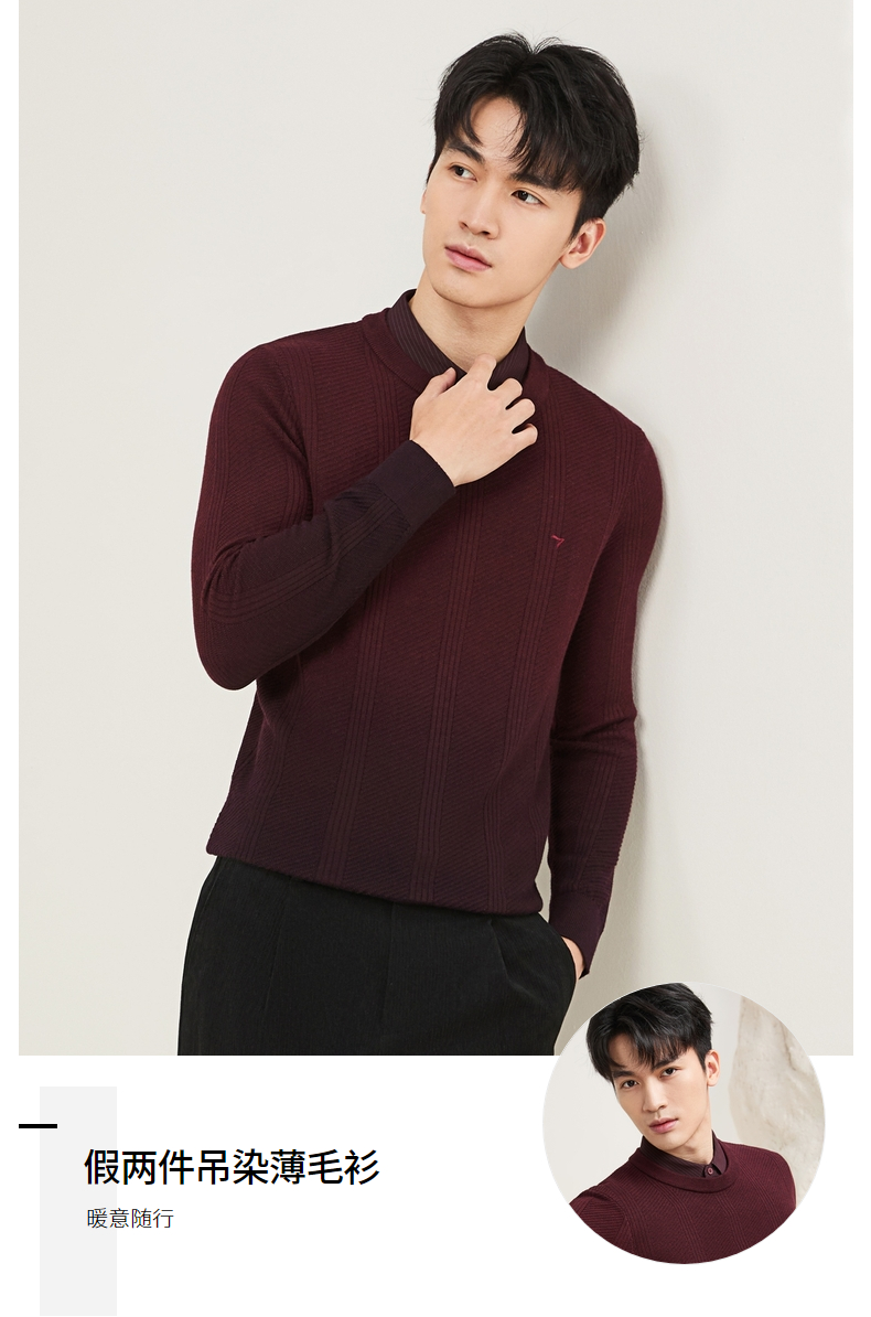 【国风吊染/假两件】柒牌男装秋季新品抗静电可机洗弹力翻领毛衫129Y70530