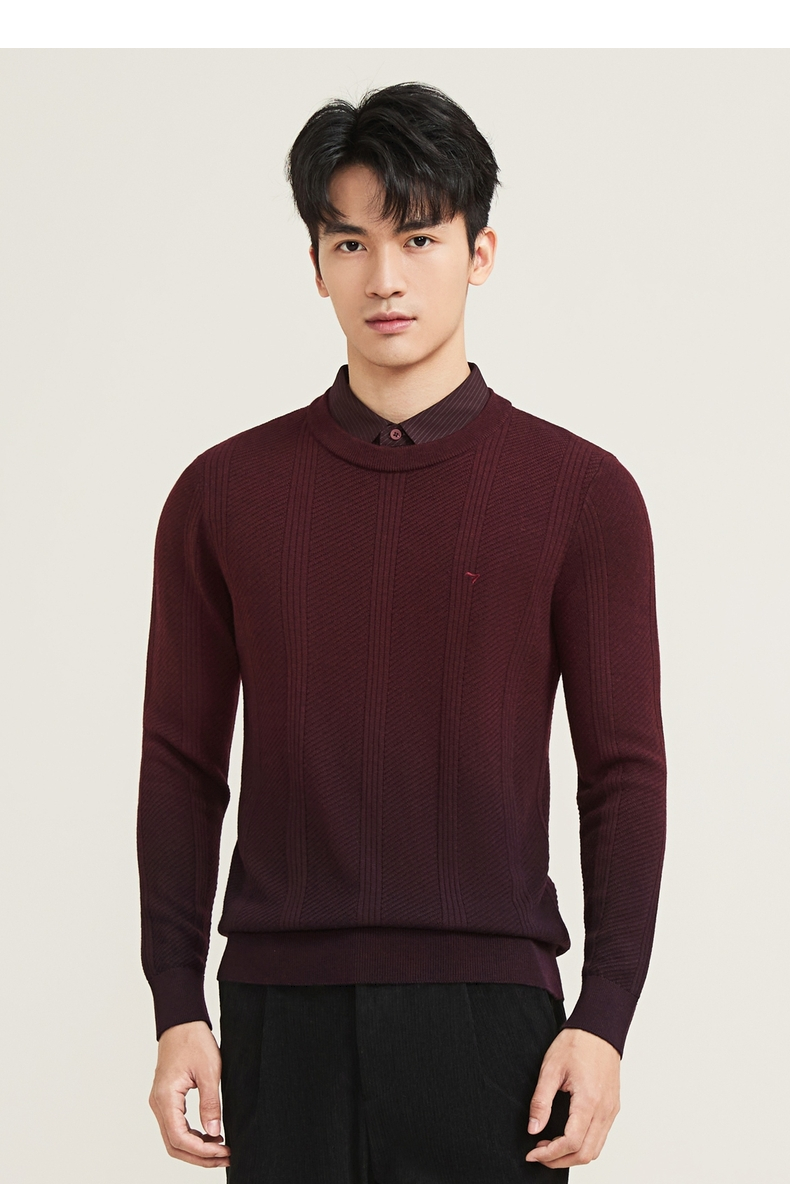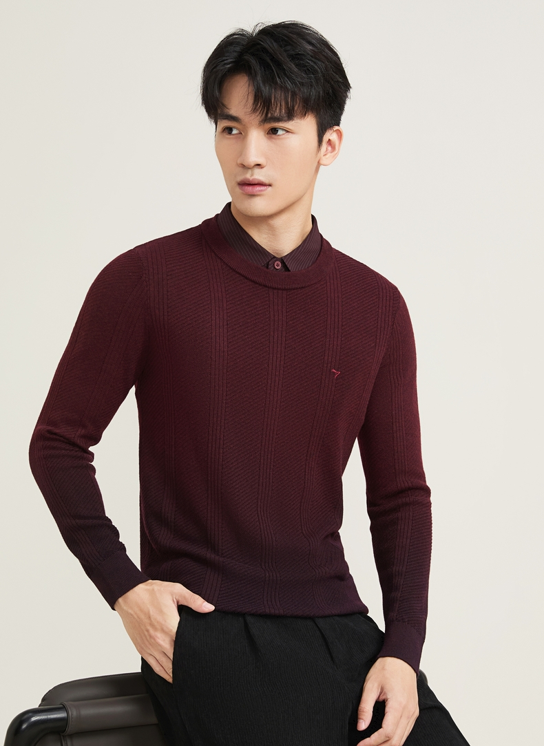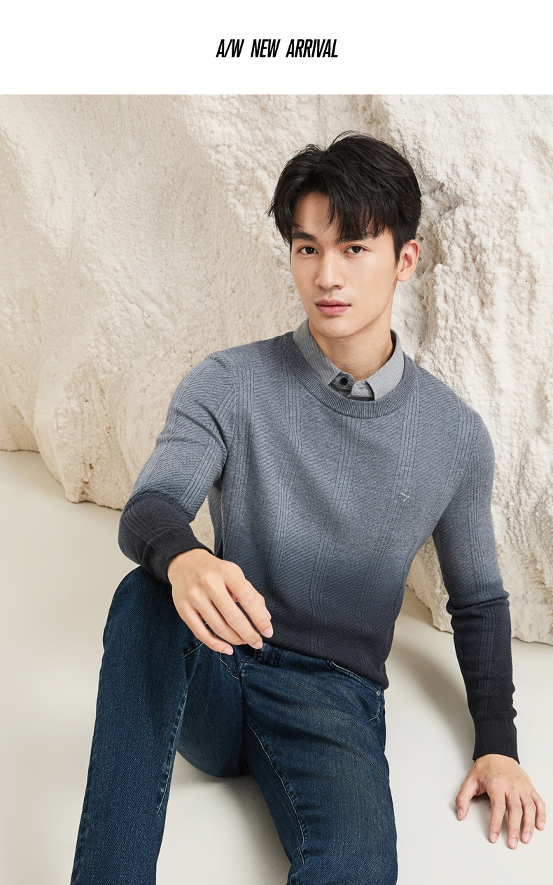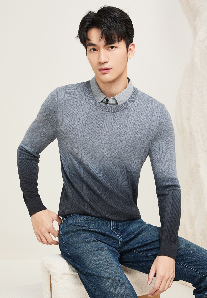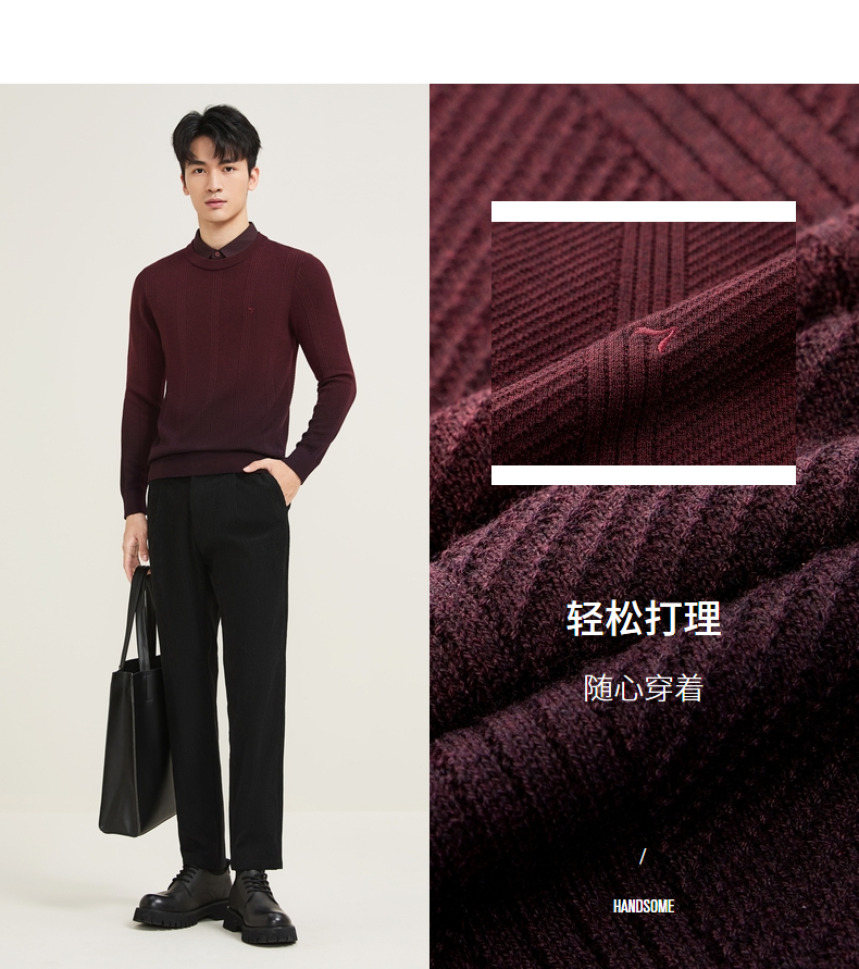 【国风吊染/假两件】柒牌男装秋季新品抗静电可机洗弹力翻领毛衫129Y70530