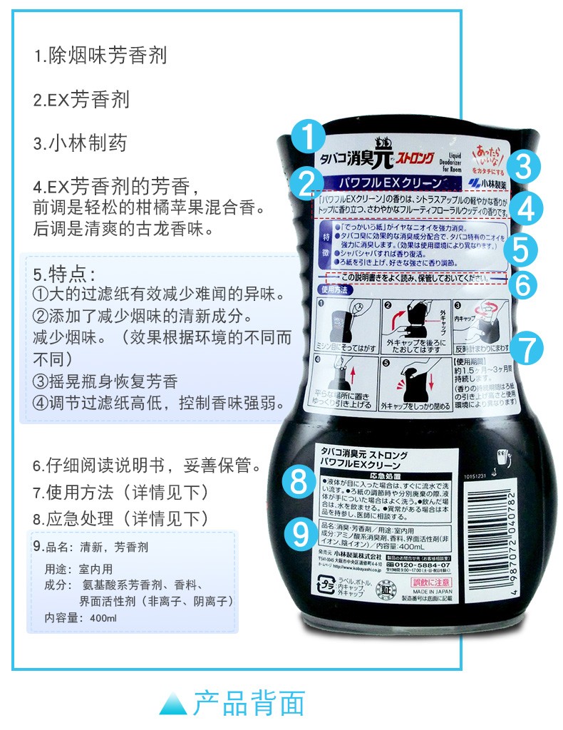 日本小林制药消臭元400ml/117567 柑橘除烟味三重分解烟味