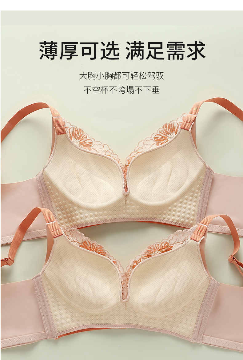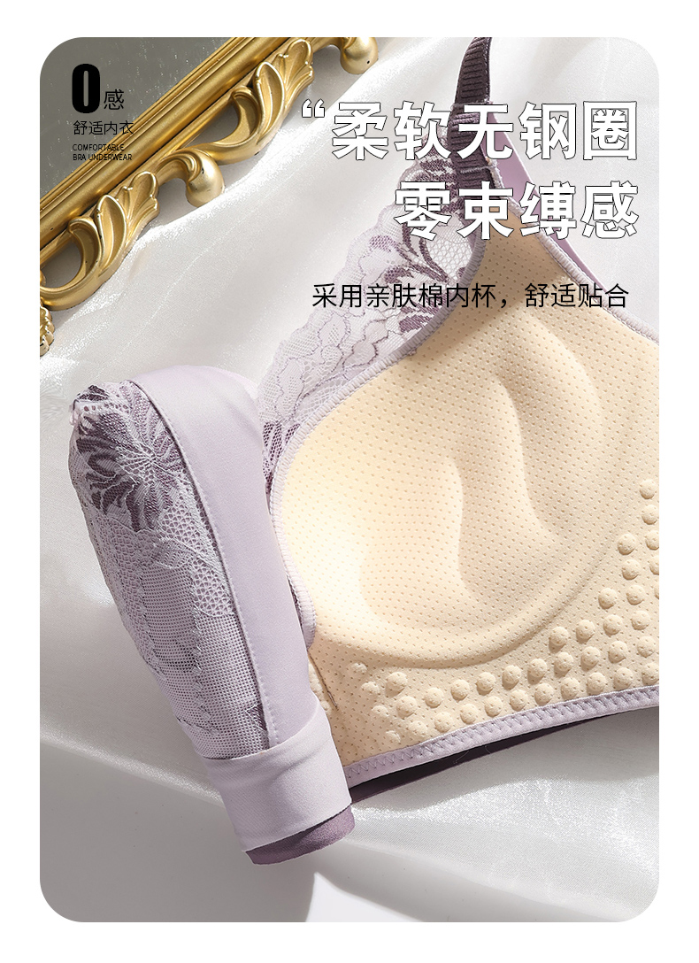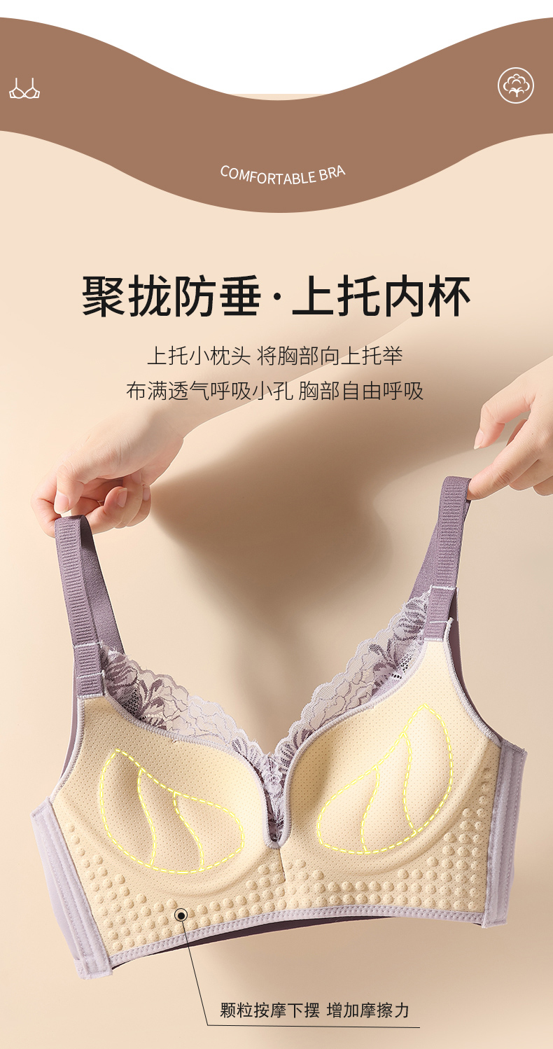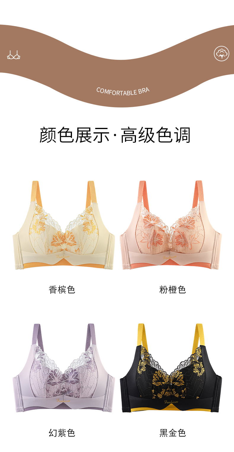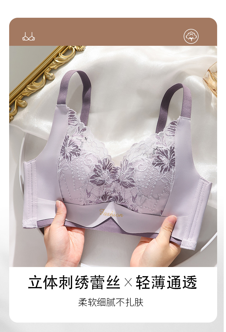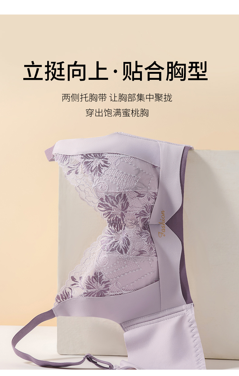 提拉聚拢撞色蕾丝调整型文胸无钢圈舒适上托收副乳内衣 859