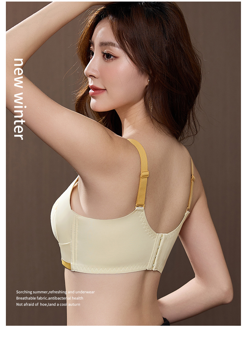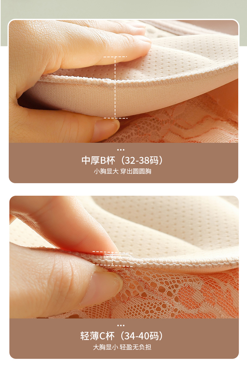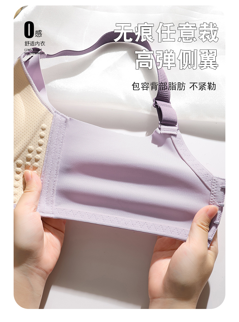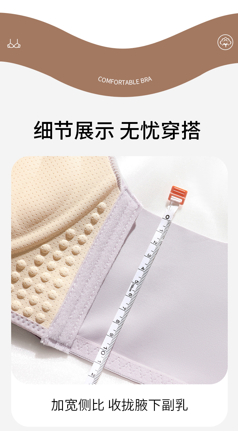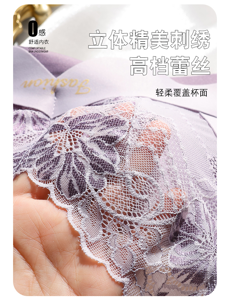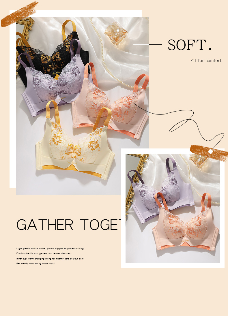 提拉聚拢撞色蕾丝调整型文胸无钢圈舒适上托收副乳内衣 859