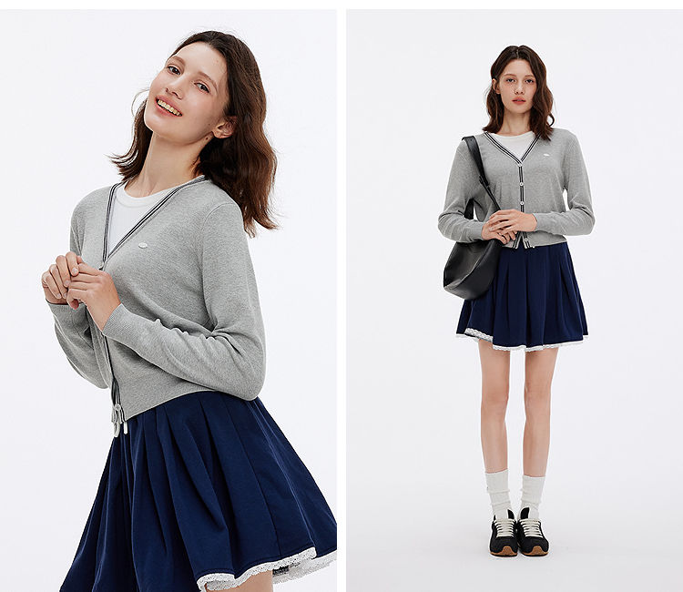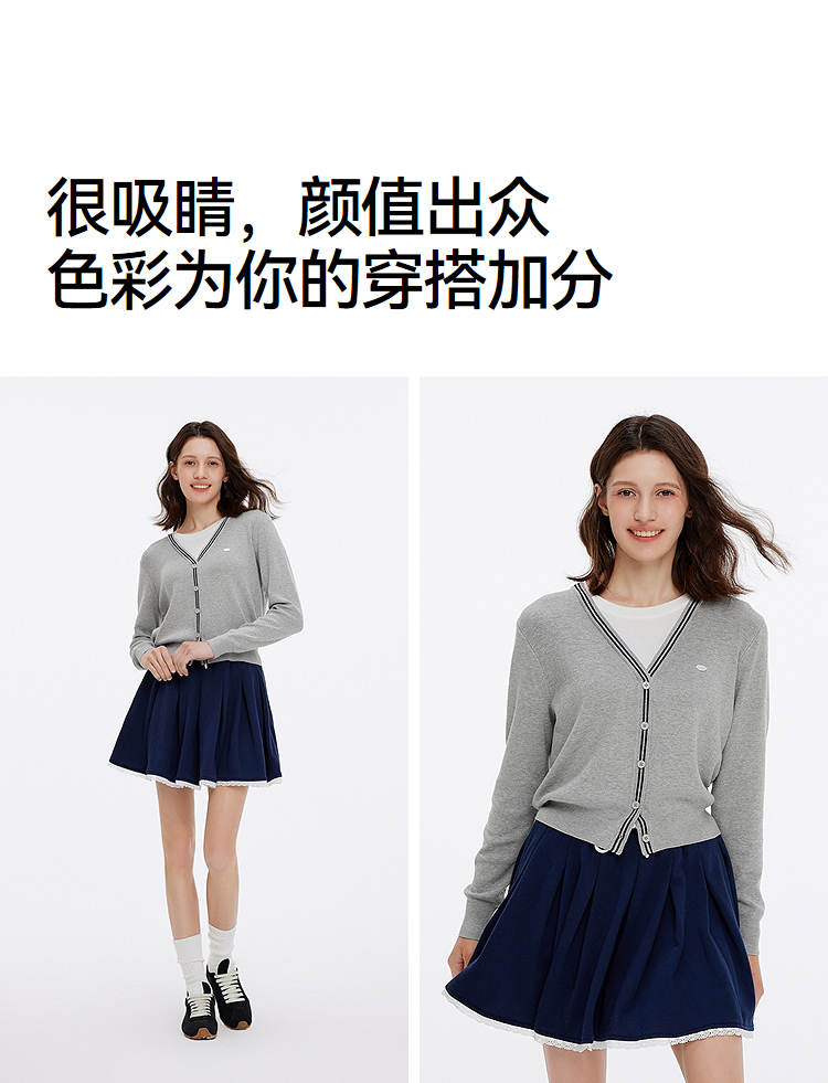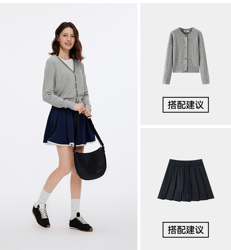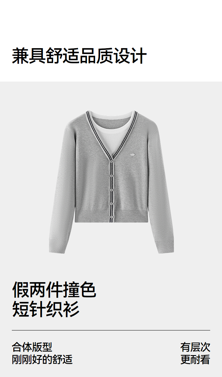 商场同款|森马针织衫女秋短款假两件撞色2025新款时尚温柔套头衫