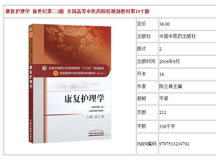 康复护理学 新世纪第二2版 全国高等中医药院校规划教材 第10十版 陈立典主编 十三五本科教材 中国中医药出版社 供护理学专业用