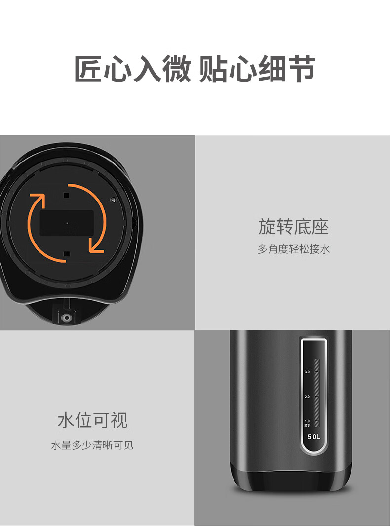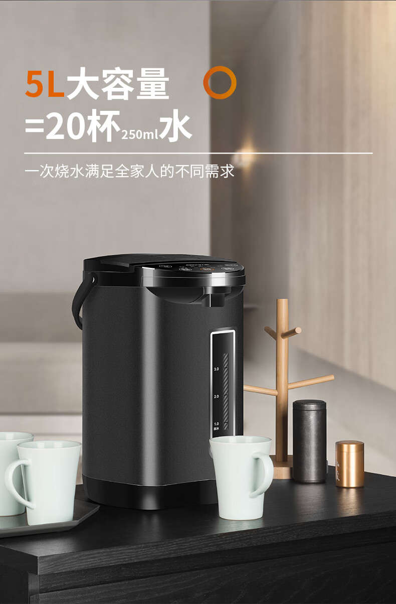 九阳(Joyoung)5L电开水瓶保温家用304不锈钢烧水壶全自动智能恒温5L电热水壶K50-P11 深灰色