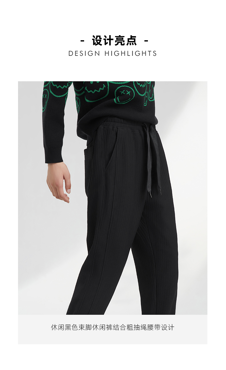 贝纳川松紧腰抽绳男士运动裤ECK332008402