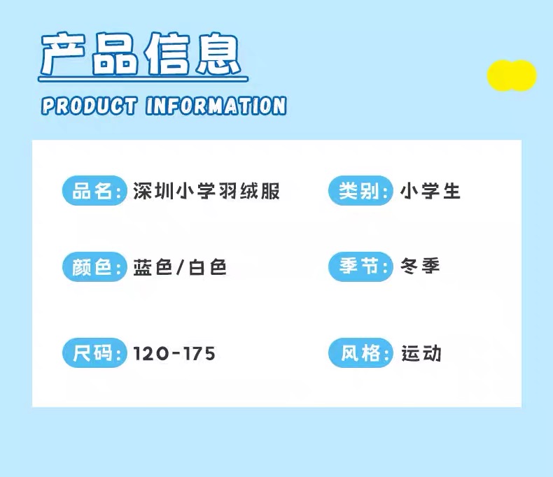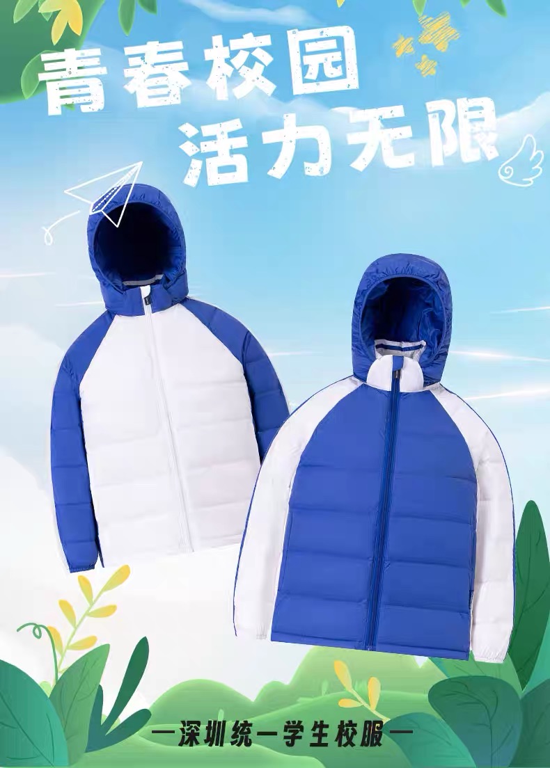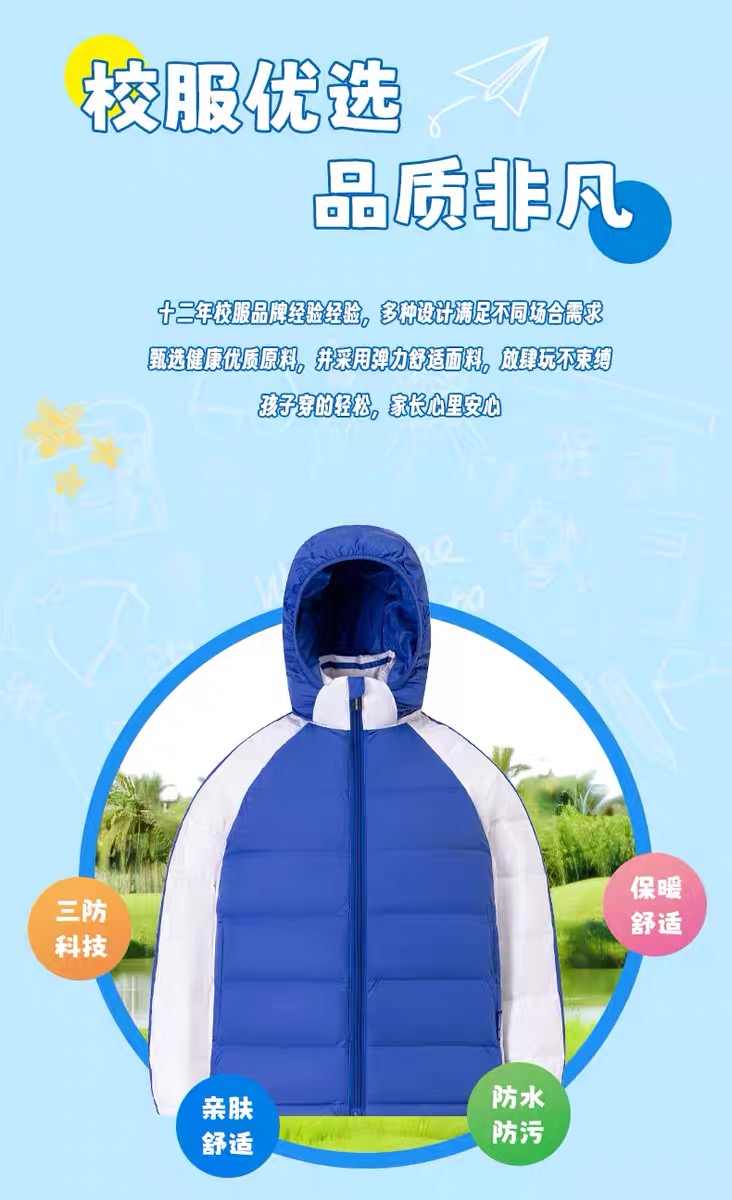 创童深圳校服小学生冬装羽绒服外套男女长袖90白鸭绒御寒保暖服