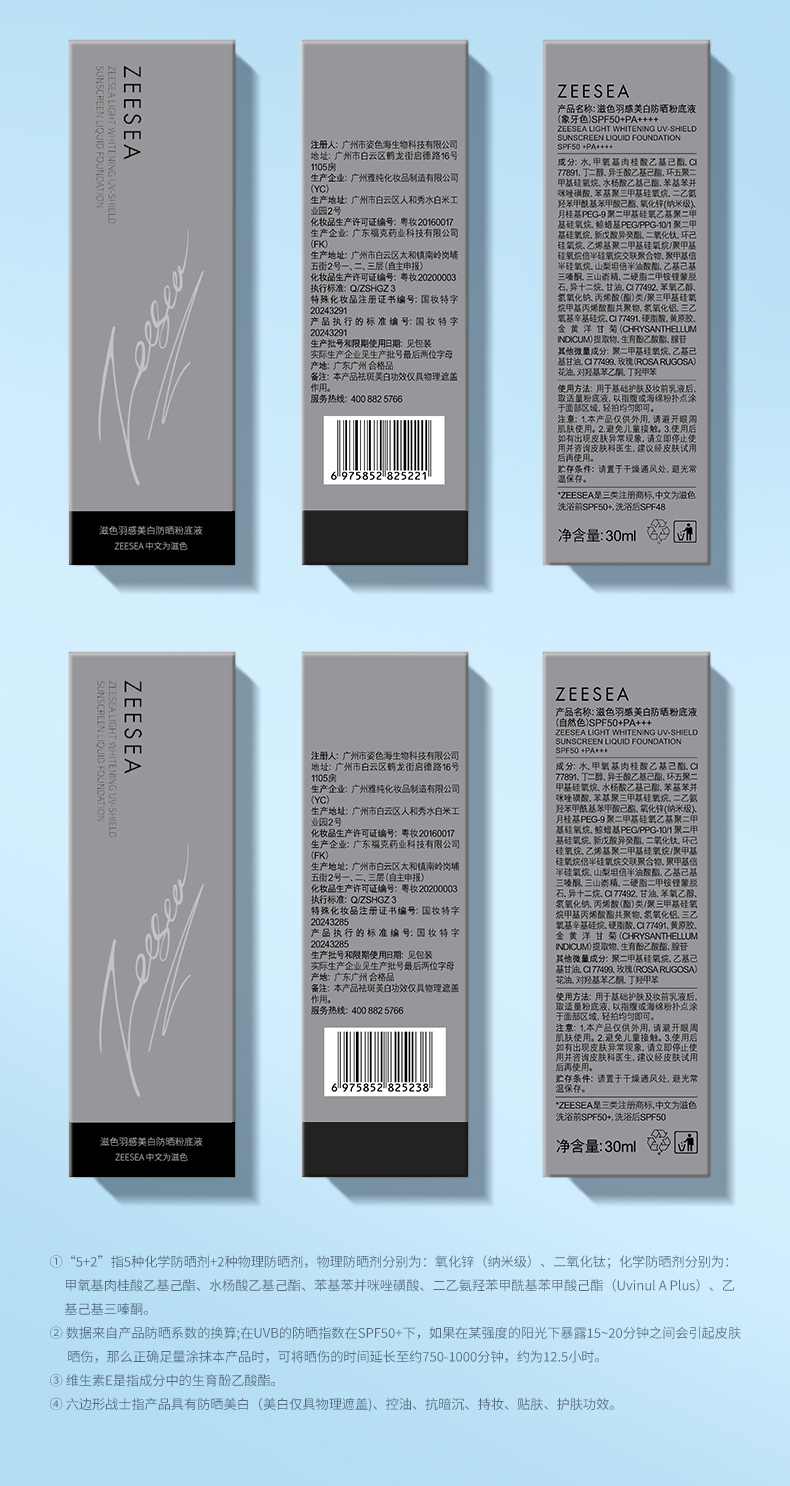 【高倍防晒】[小滋特惠]ZEESEA滋色羽感美白防晒粉底液30g