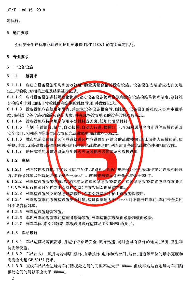 交通运输企业安全生产标准化建设基本规范 第15部分:城市轨道交通运营企业(JTT 1180.15—2018)