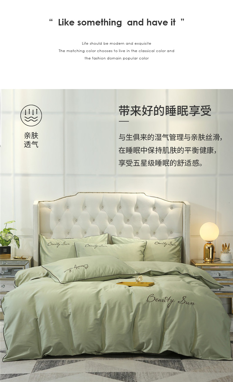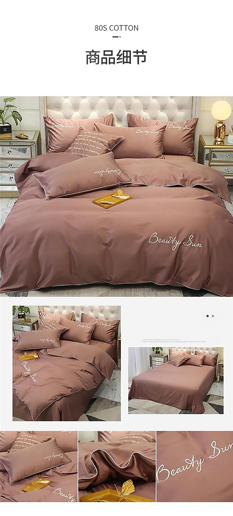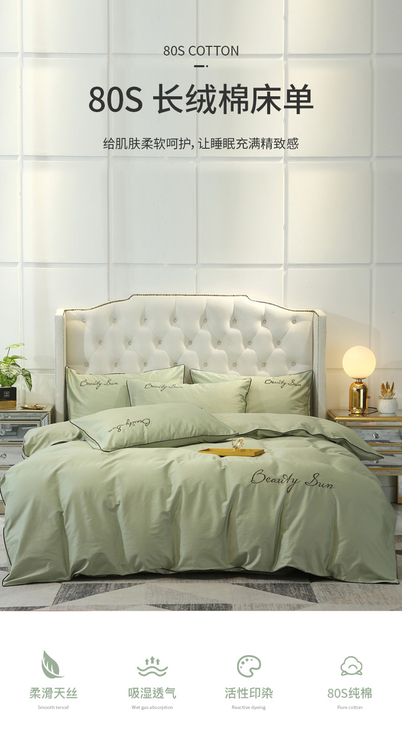 80支纯棉长绒棉刺绣四件套纯棉贡缎床上用品A27C729003