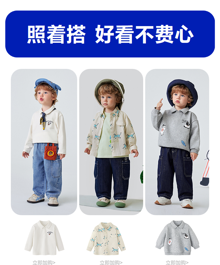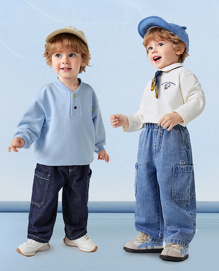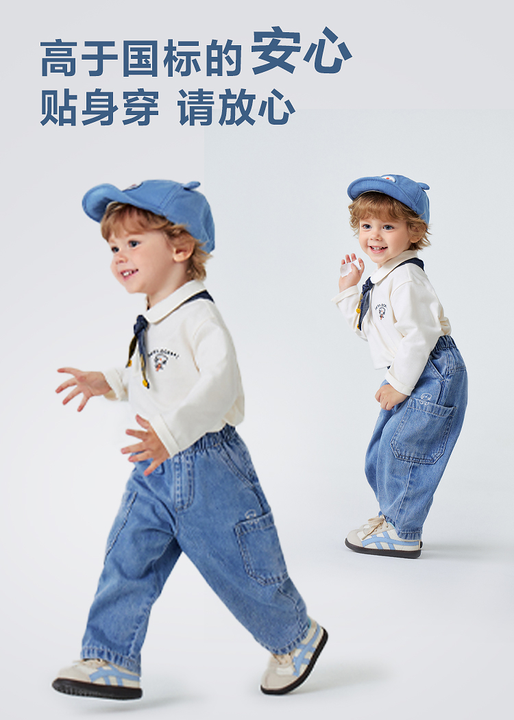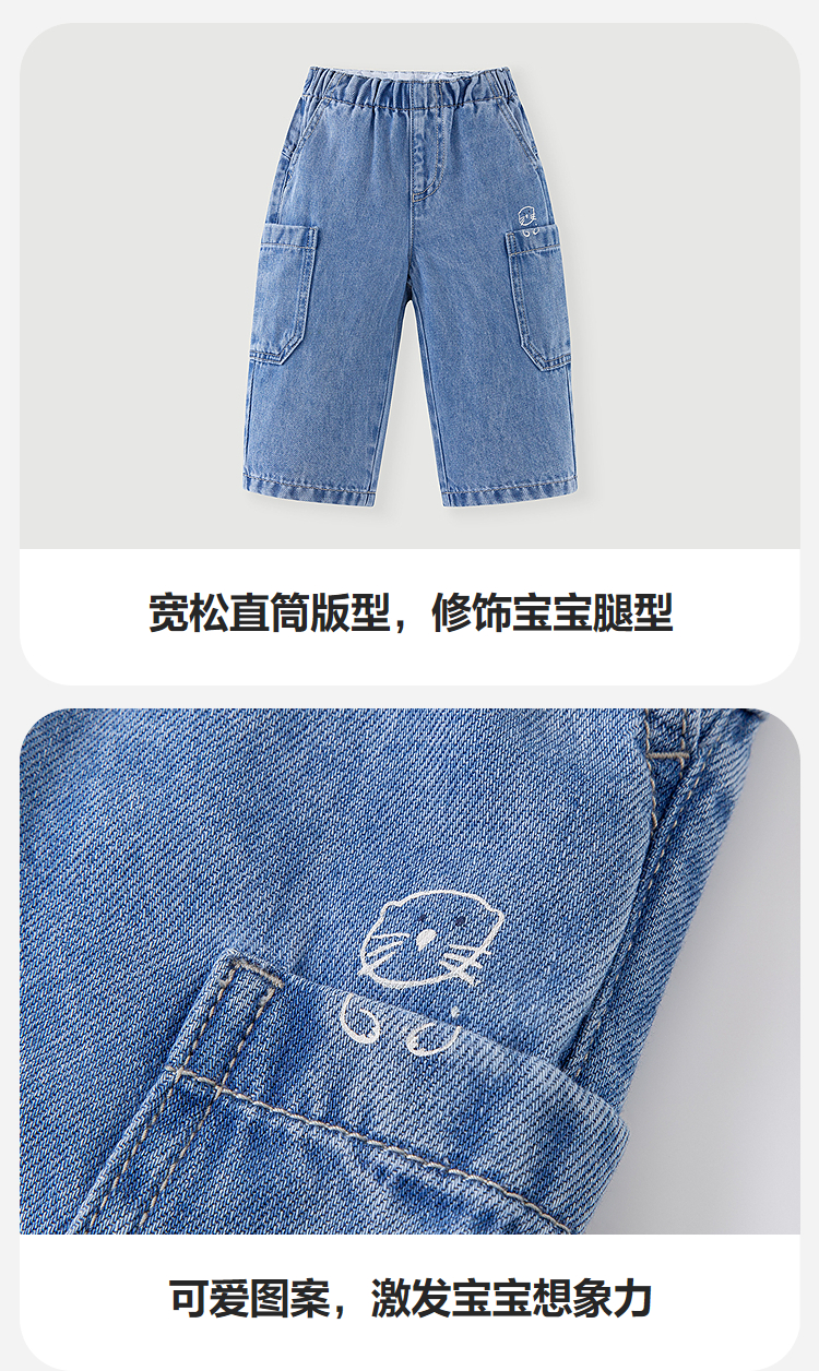 迷你巴拉男童宝宝牛仔裤植物不易褪色安心舒适直筒长裤2026春裤子