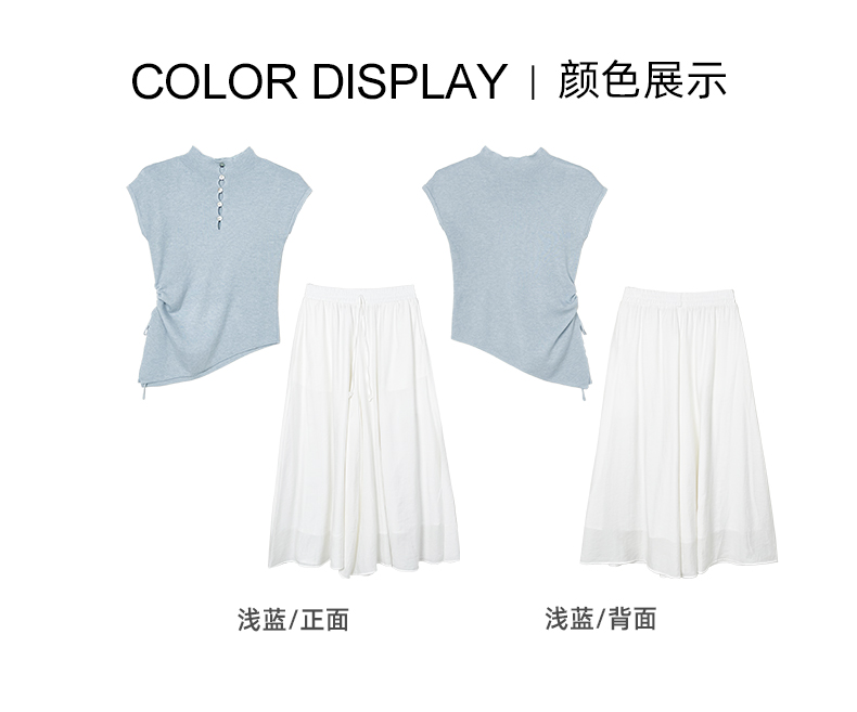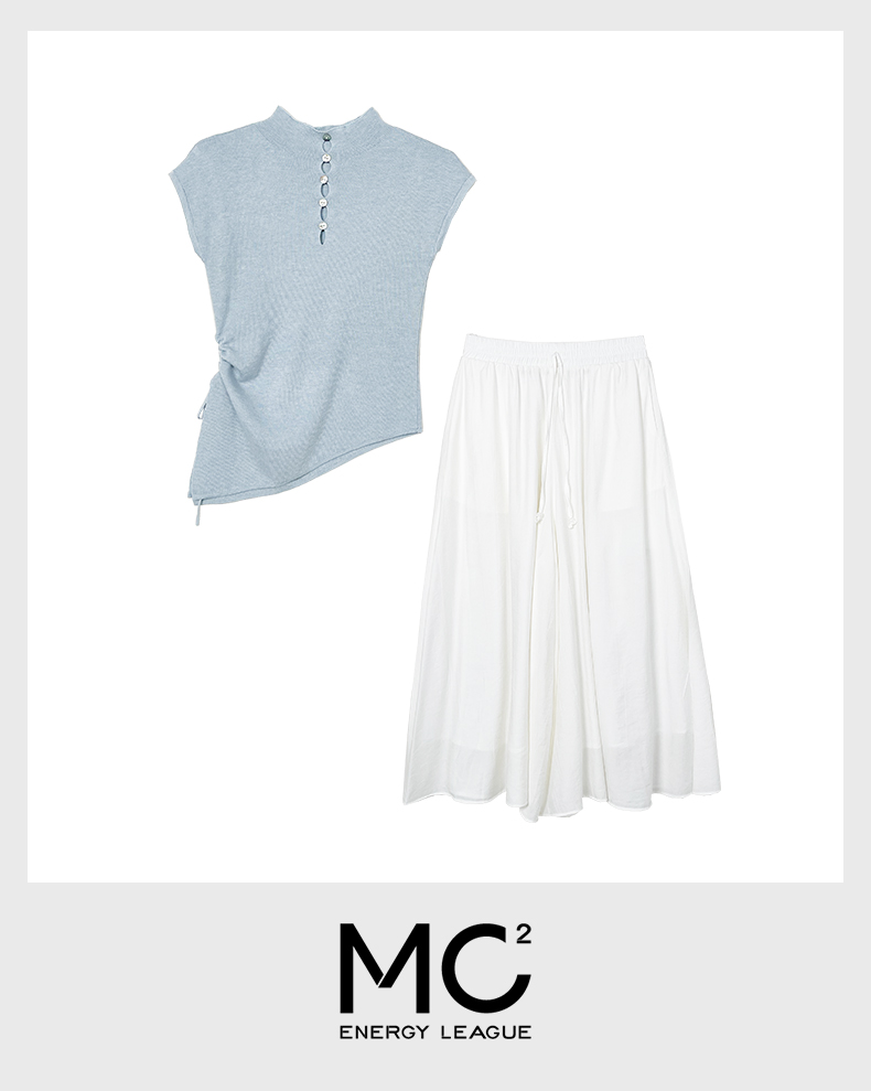 女装无袖针织上衣配裙裤两件套S5221021