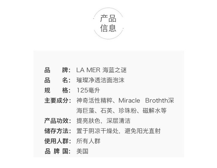 【跨境】LAMER 海蓝之谜 璀璨净透洁面泡沫125ml (效期到27年)细腻泡沫温和洁净