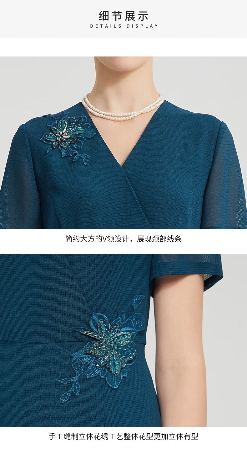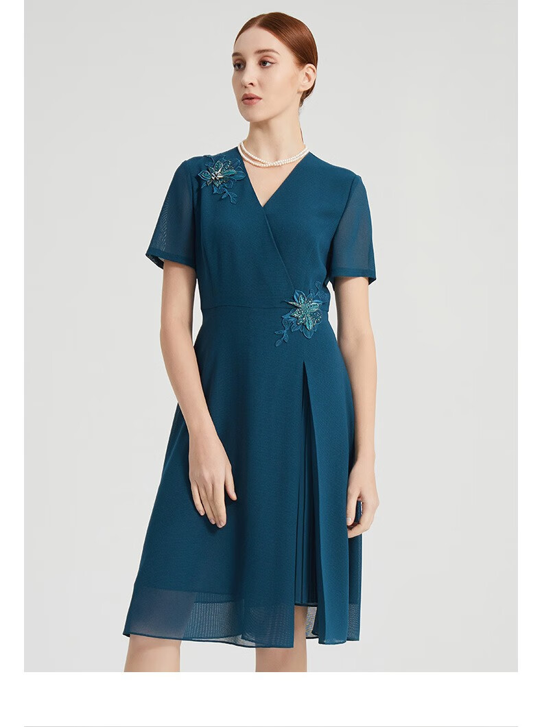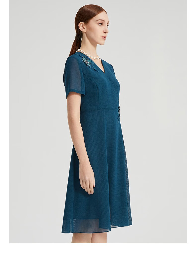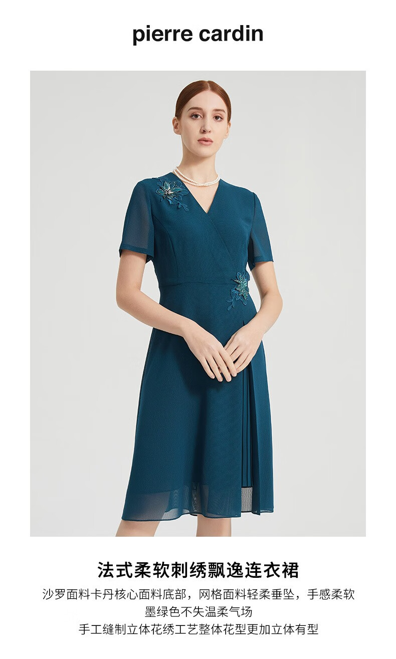 皮尔卡丹女装夏季新款通勤端庄刺绣短袖连衣裙P2215D2040G0