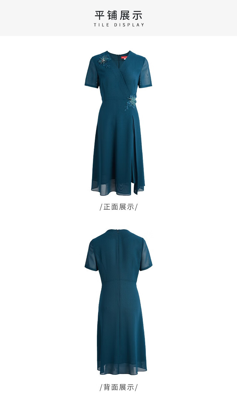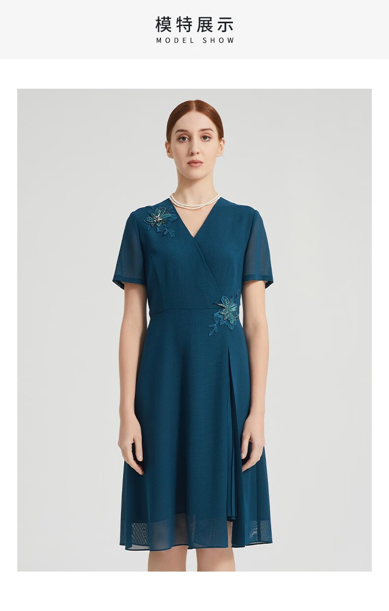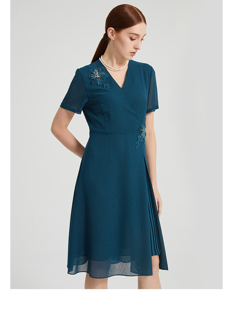 皮尔卡丹女装夏季新款通勤端庄刺绣短袖连衣裙P2215D2040G0