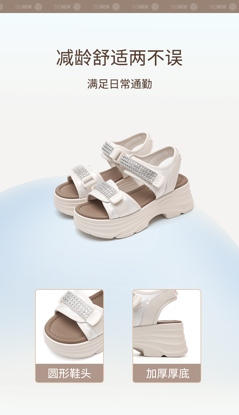 信诺妈妈鞋时尚水钻一字拖女外穿软底舒适厚底凉拖鞋2026夏季新款6L950-62